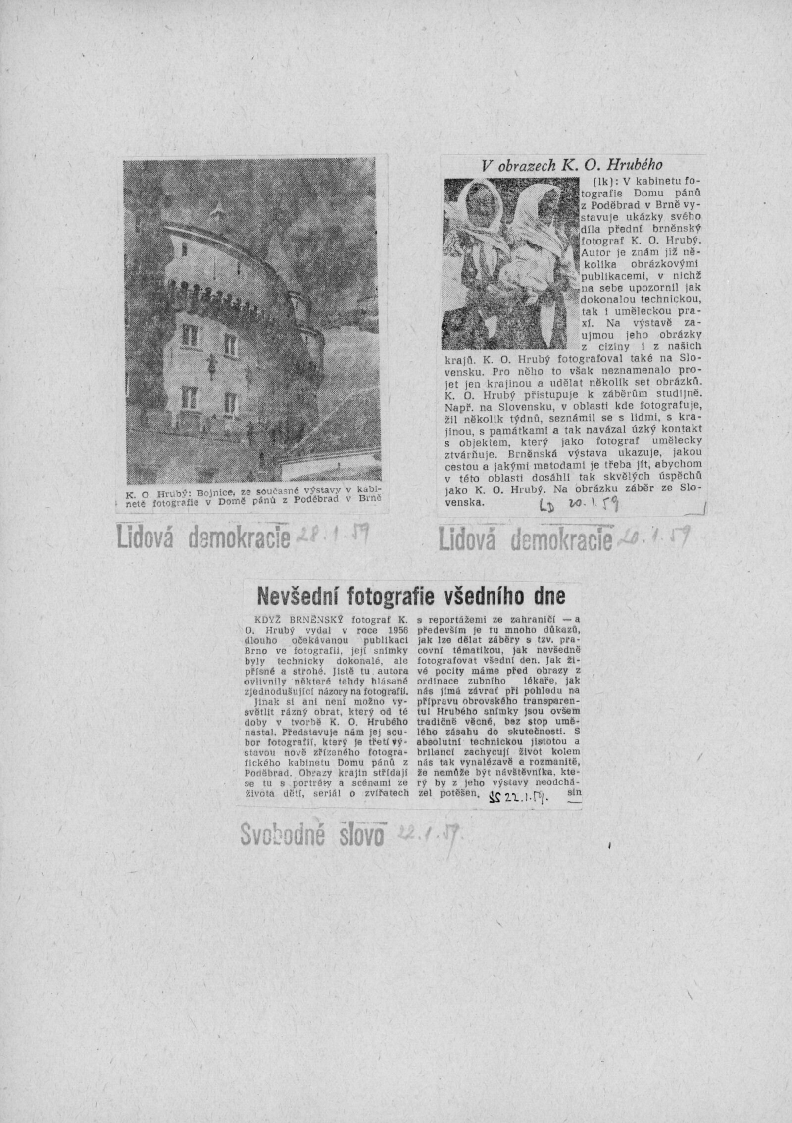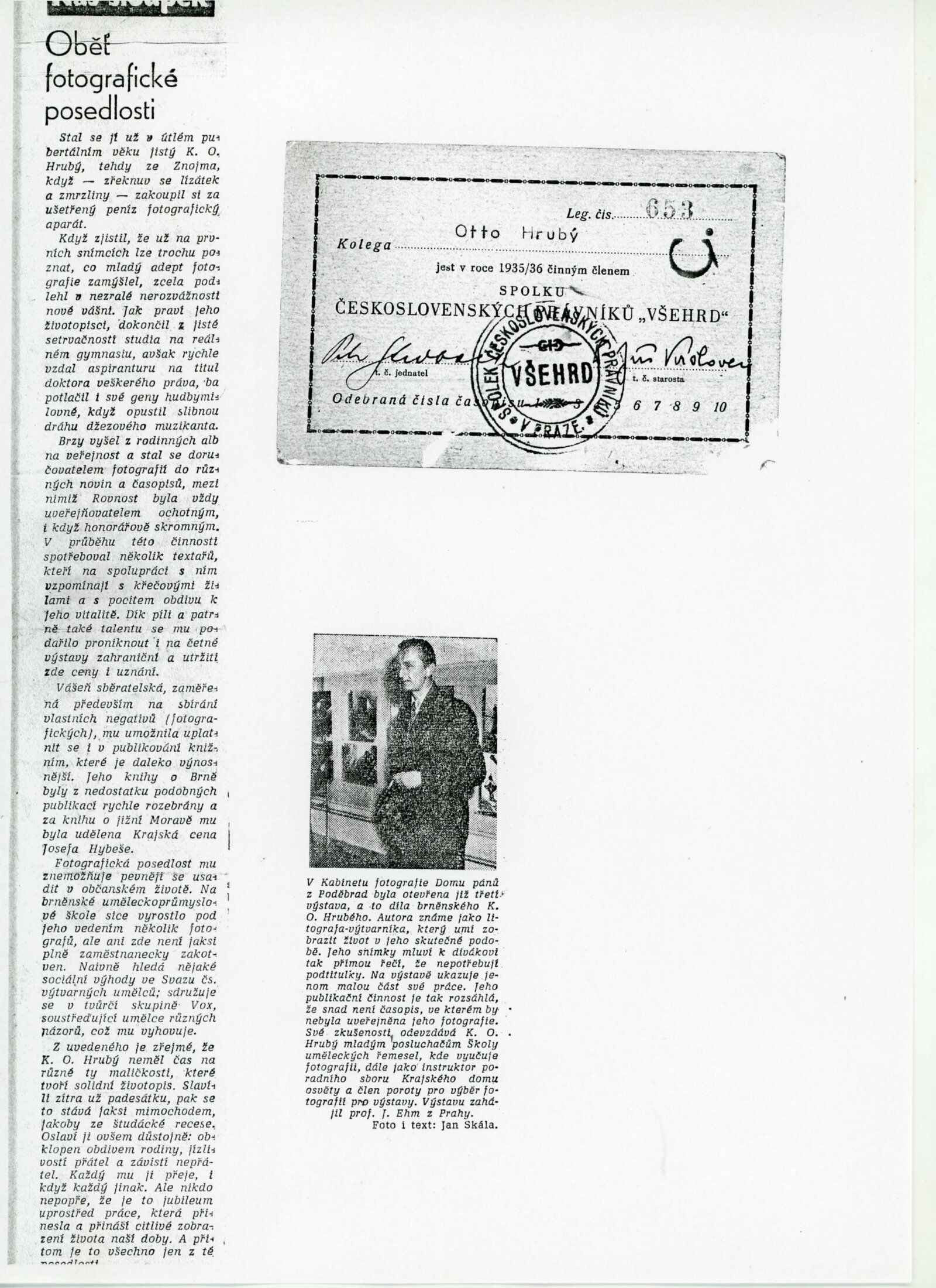 K. O. Hrubý. Fotografie: Dům umění města Brna / Dům pánů z Poděbrad, Fotografický kabinet J. Funka, 3. výstava, 8. 1. – 1. 2. 1959. – Brno: DUmB, 1959. – skládačka, 6 s., obr., životopis, výstavy, DPK 23. – MZK; MG