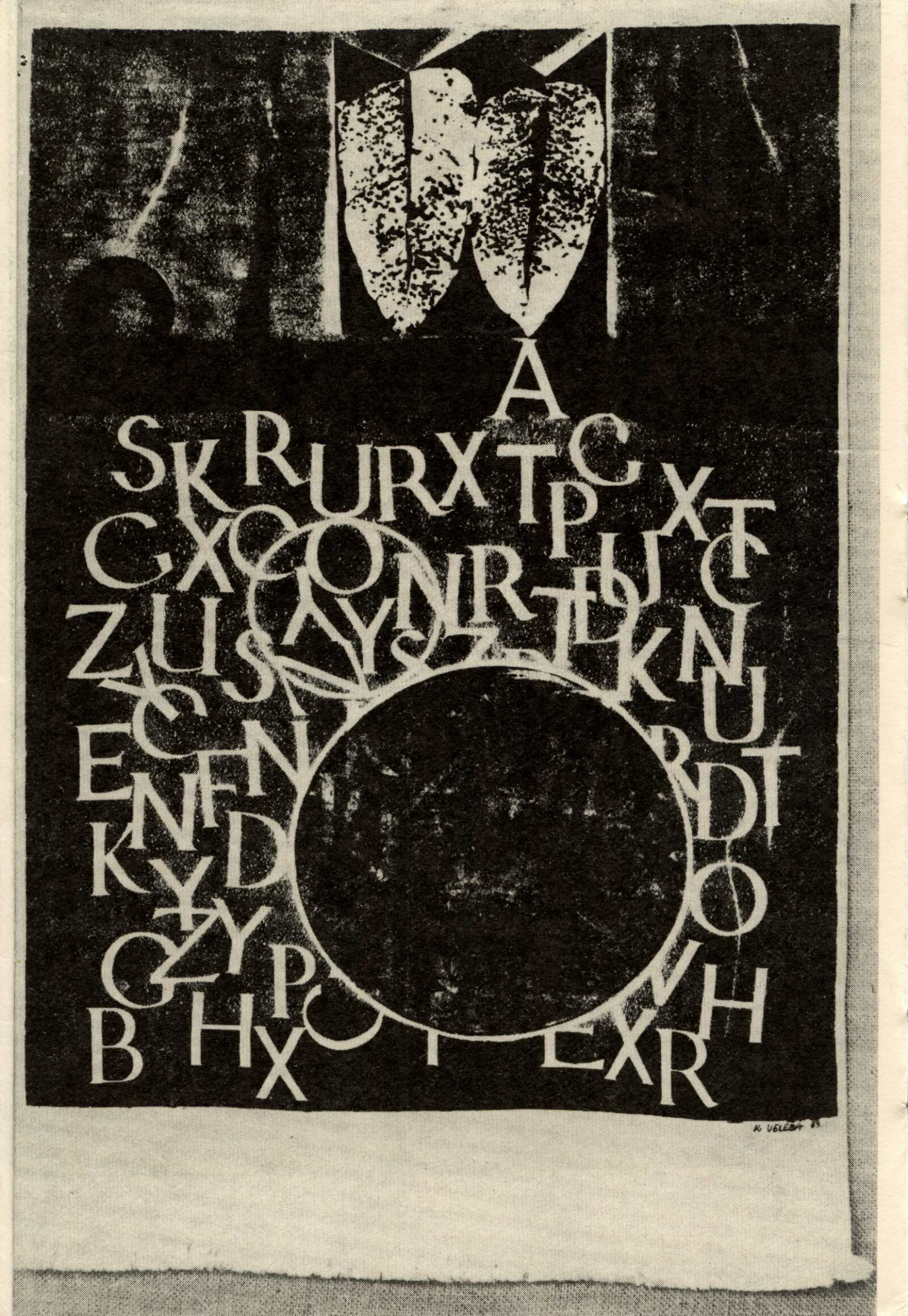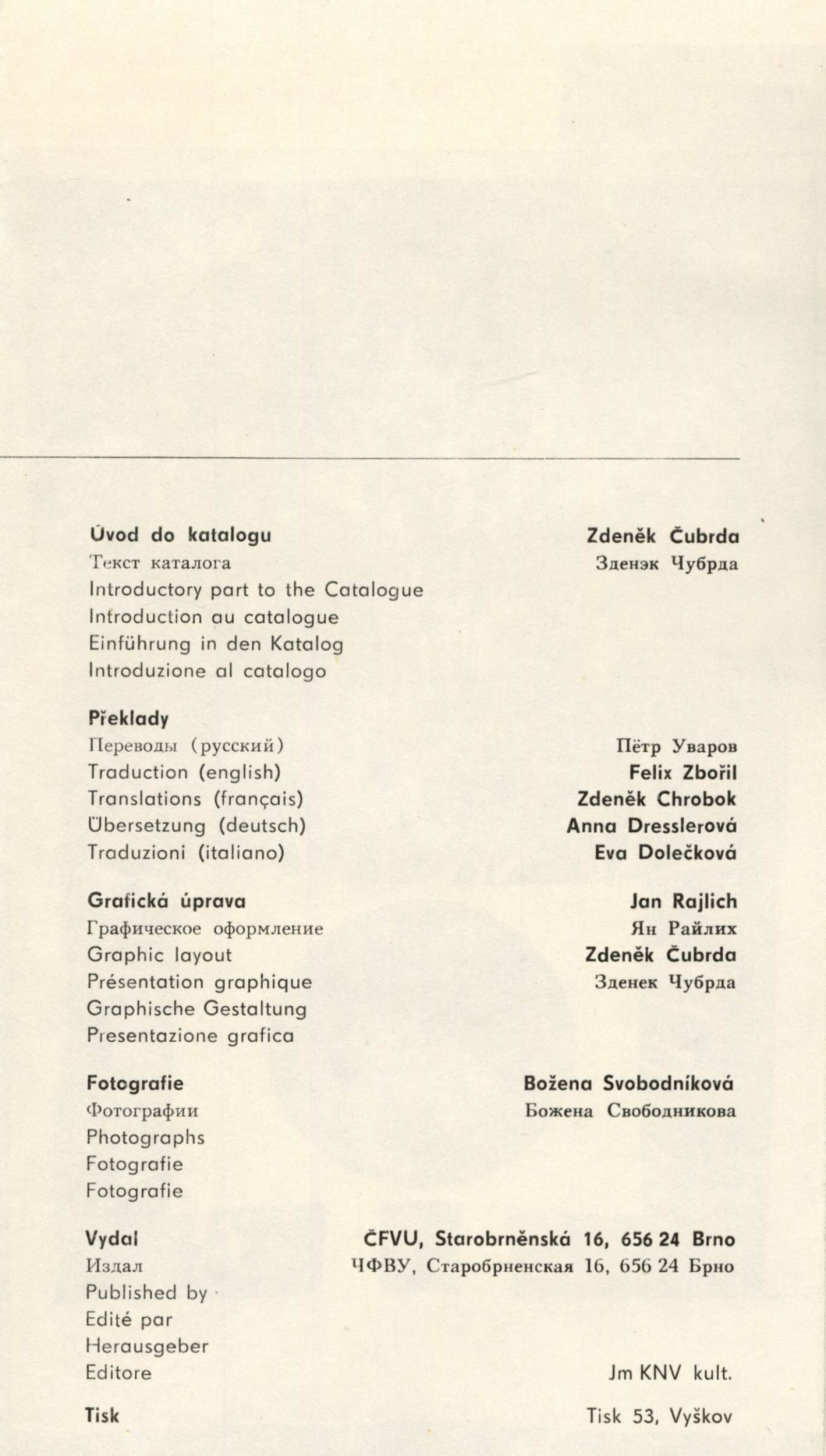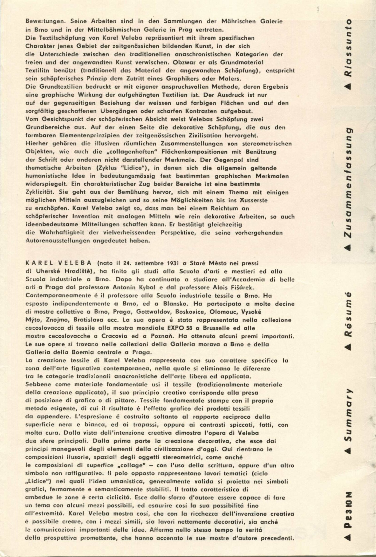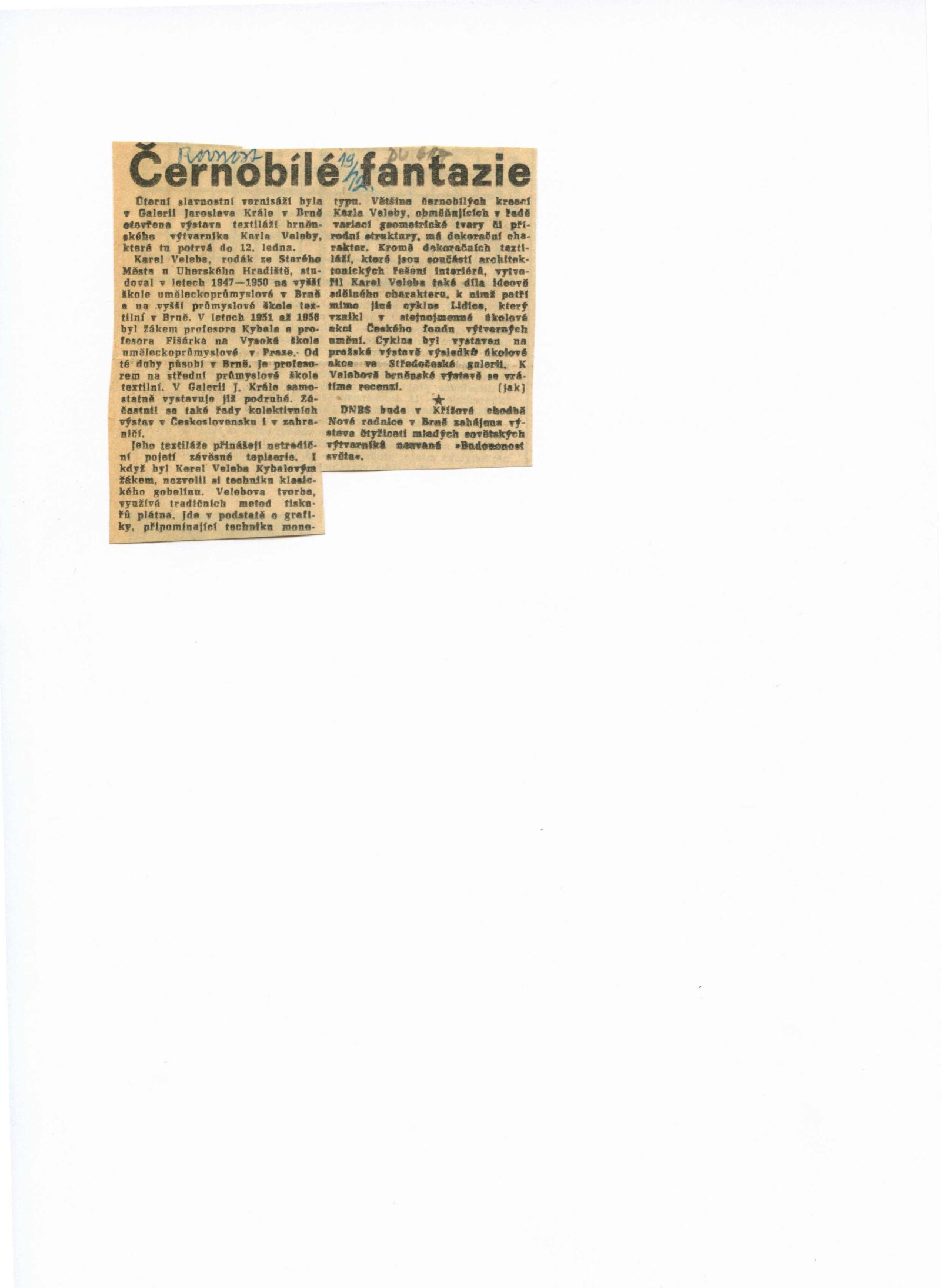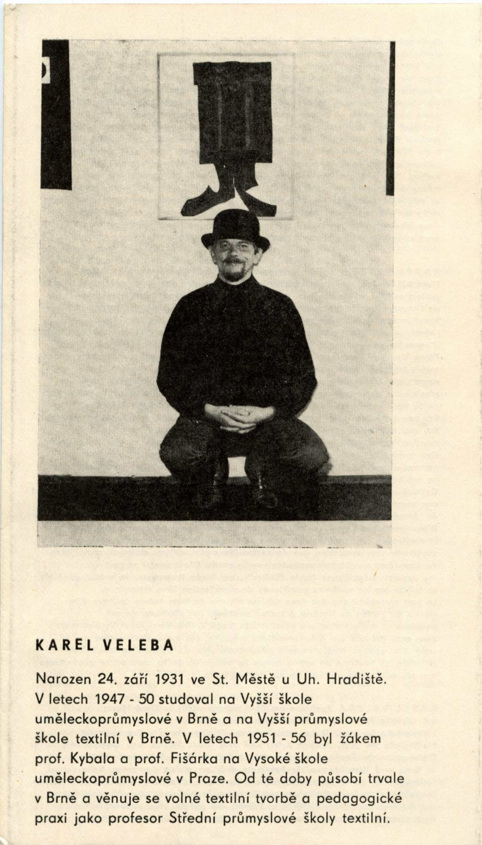 Karel Veleba. Černá a bílá: Dům umění, 63. výstava v Galerii Jaroslava Krále, 17. 12. 1974 – 12. 1. 1975 / Text: Zdeněk Čubrda. – Brno: ČFVU, 1974. – 10 s., obr., seznam vystavených prací 2 s., portrét, životní data, seznam výstav, DU 617. – MZK; MG; MMB