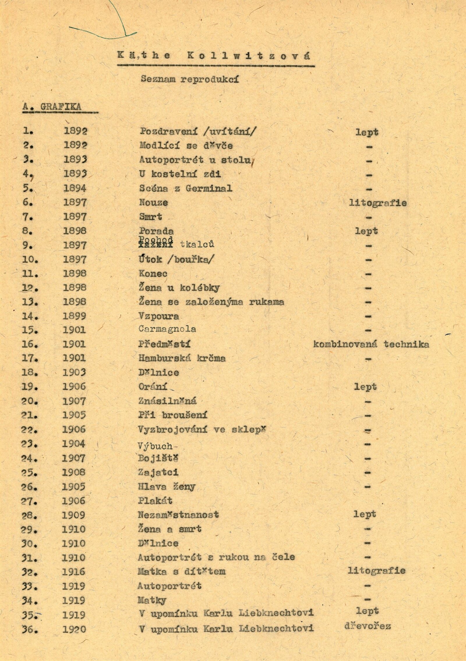 rukopis úvodního textu, seznam reprodukcí, korespondence (předání výstav, rozdělení recenzí), recenze v zahraničním tisku, katalog/prospekt autorčiny zahraniční výstavy