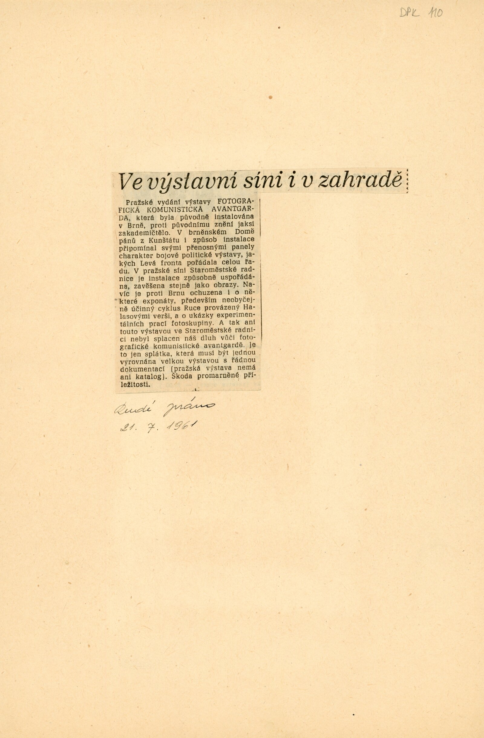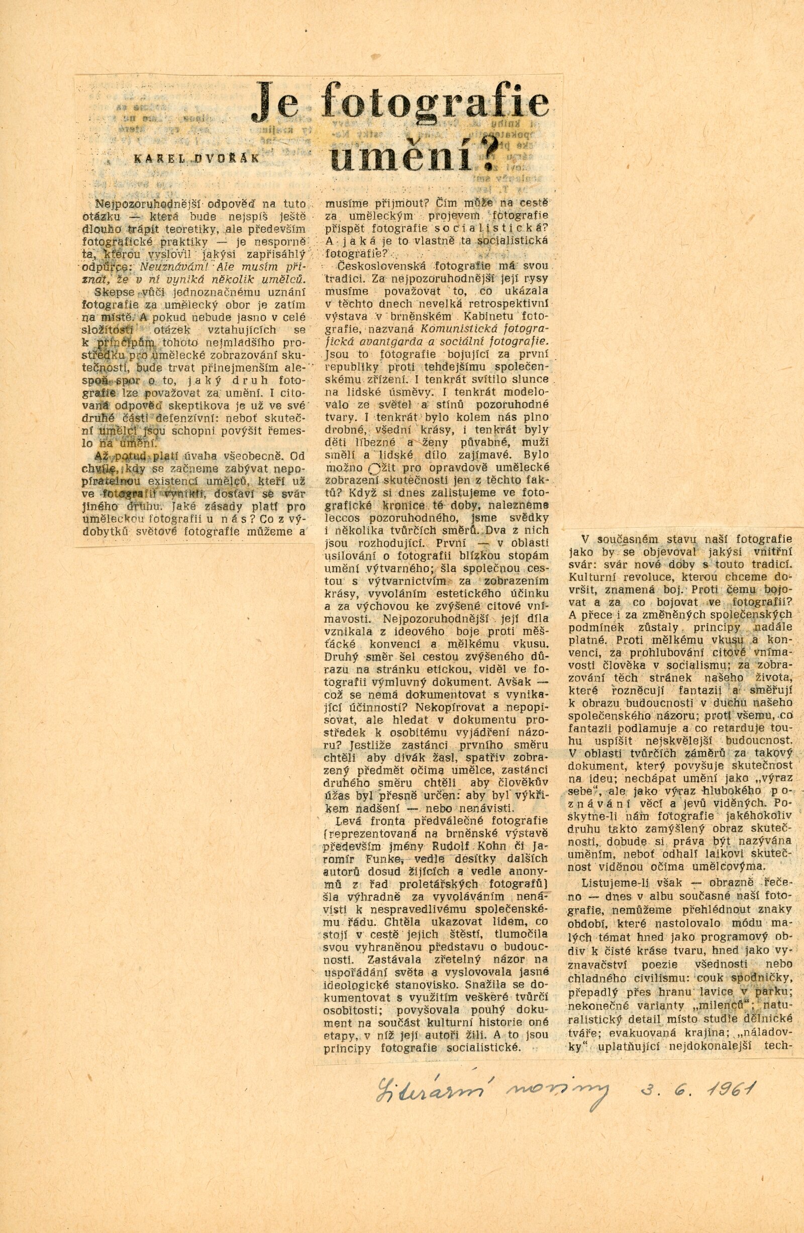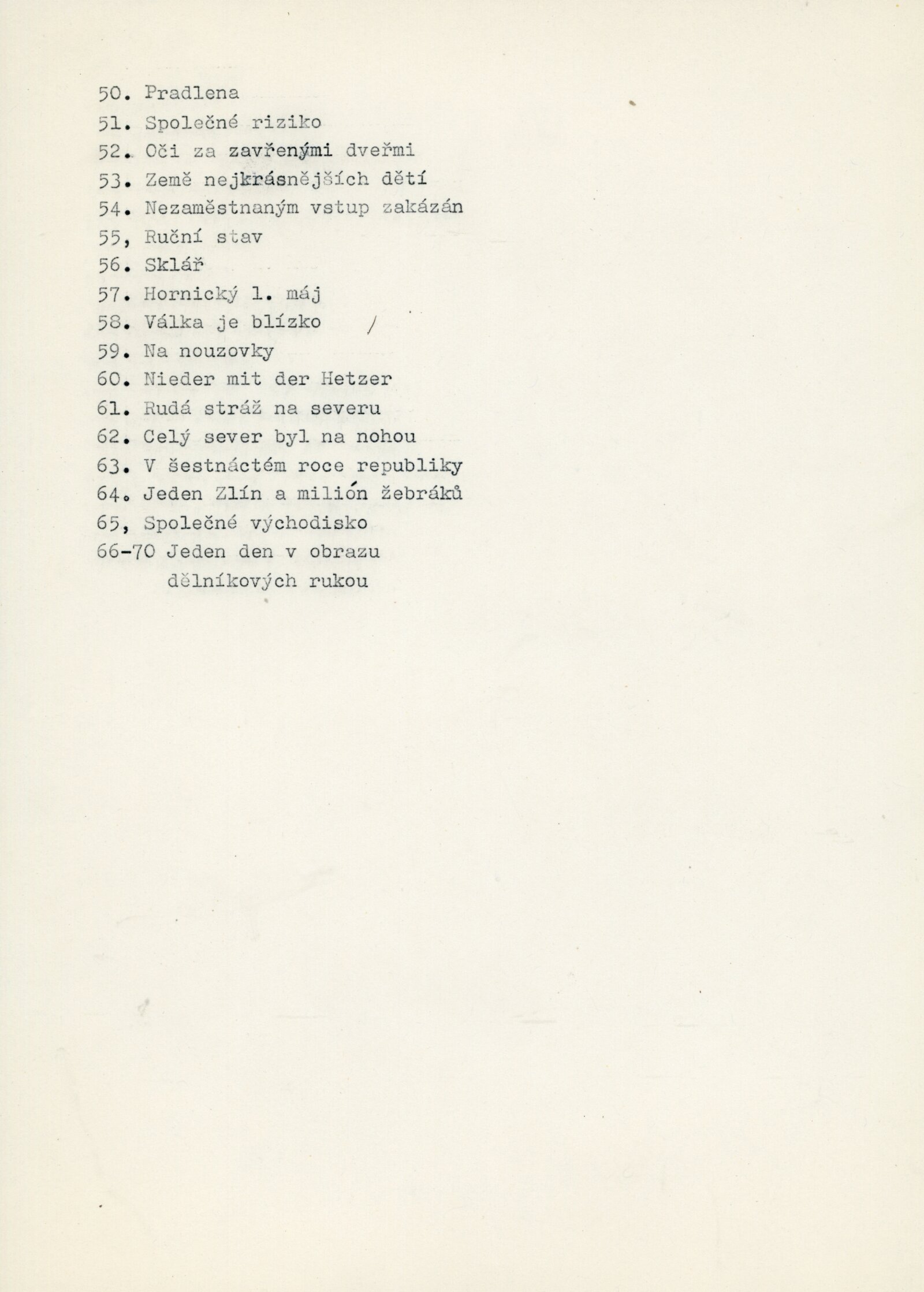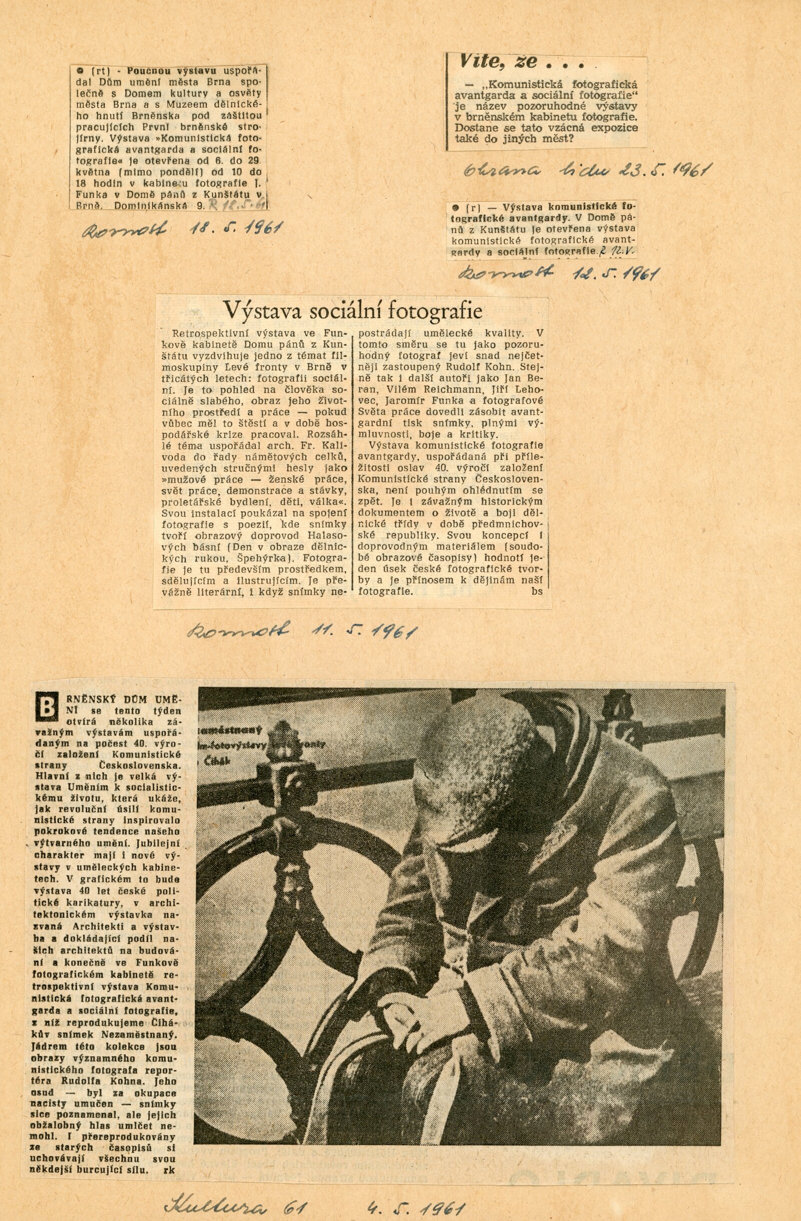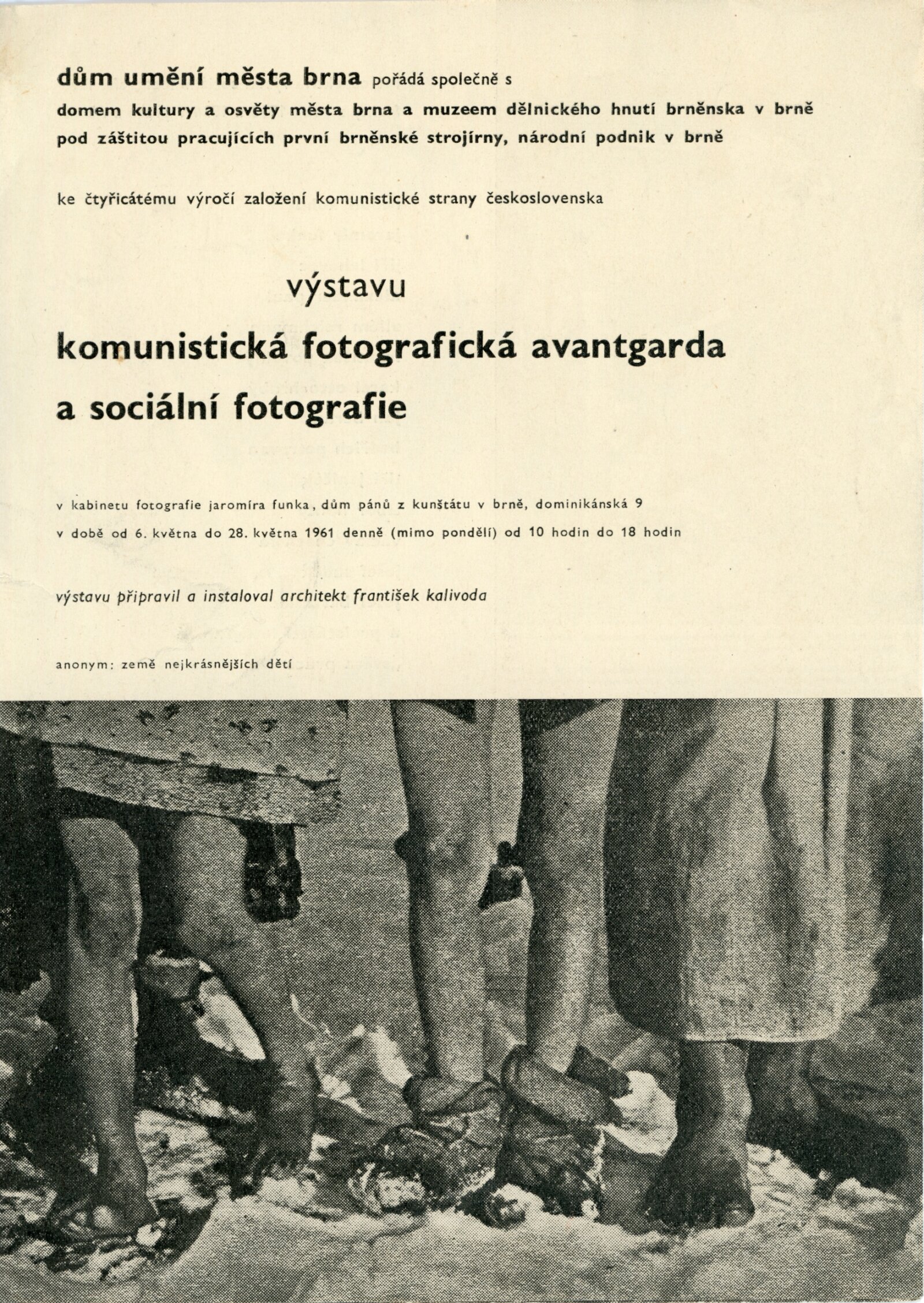 Komunistická fotografická avantgarda a sociální fotografie: Dům umění města Brna / Dům pánů z Kunštátu, 23. výstava Kabinetu fotografie Jaromíra Funka, 6. 5. – 28. 5. 1961 / Brno: DUmB, 1961. – 4 s., obr., DPK 110. – MG