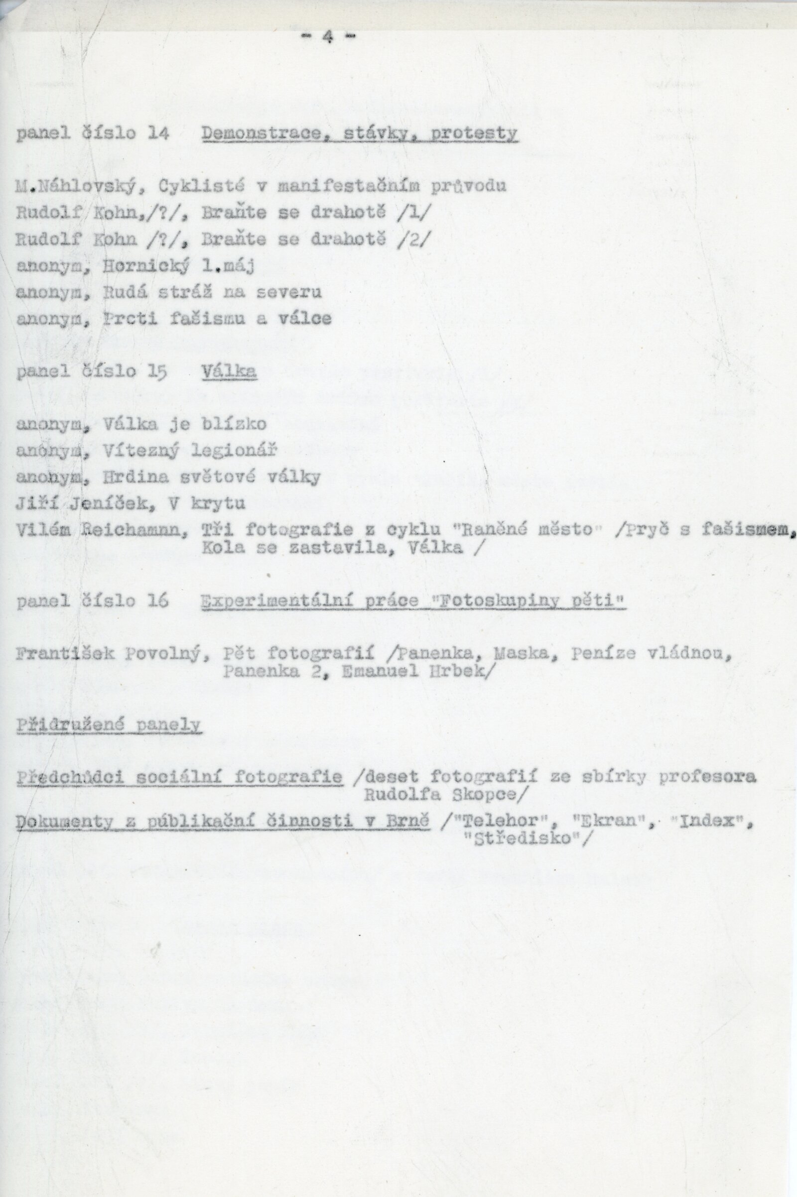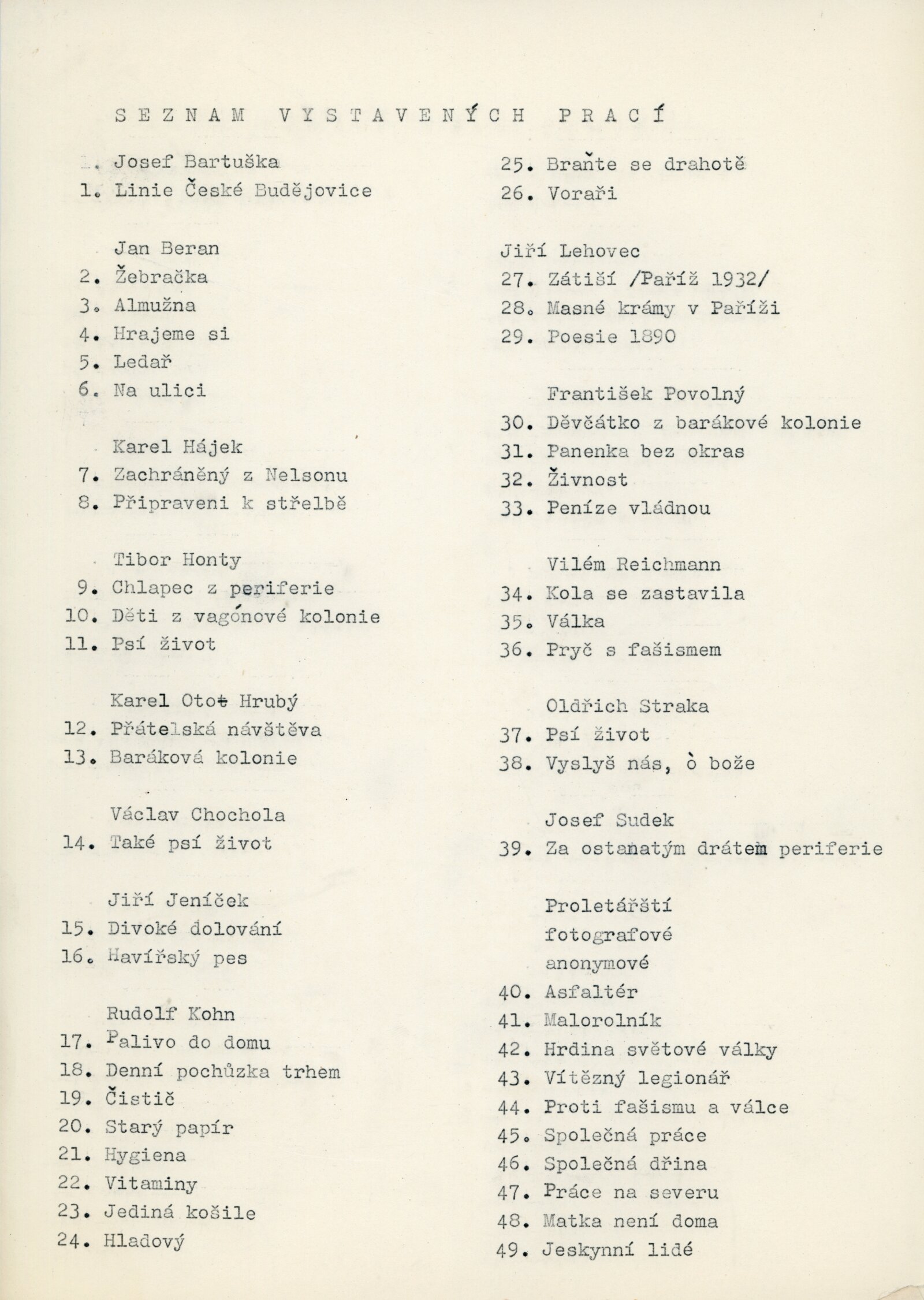 Jaromír Funke, Josef Sudek, Josef Bartuška, Jiří Lehovec, Tibor Honty, Jiří Jeníček, Jan Beran, Rudolf Kohn, Karel Hájek, O. Straka, Václav Chochola, František Čihák, František Povolný, Karel Otto Hrubý, Alexandr Paul, František Kalivoda, M. Náhlovský, Vilém Reichmann