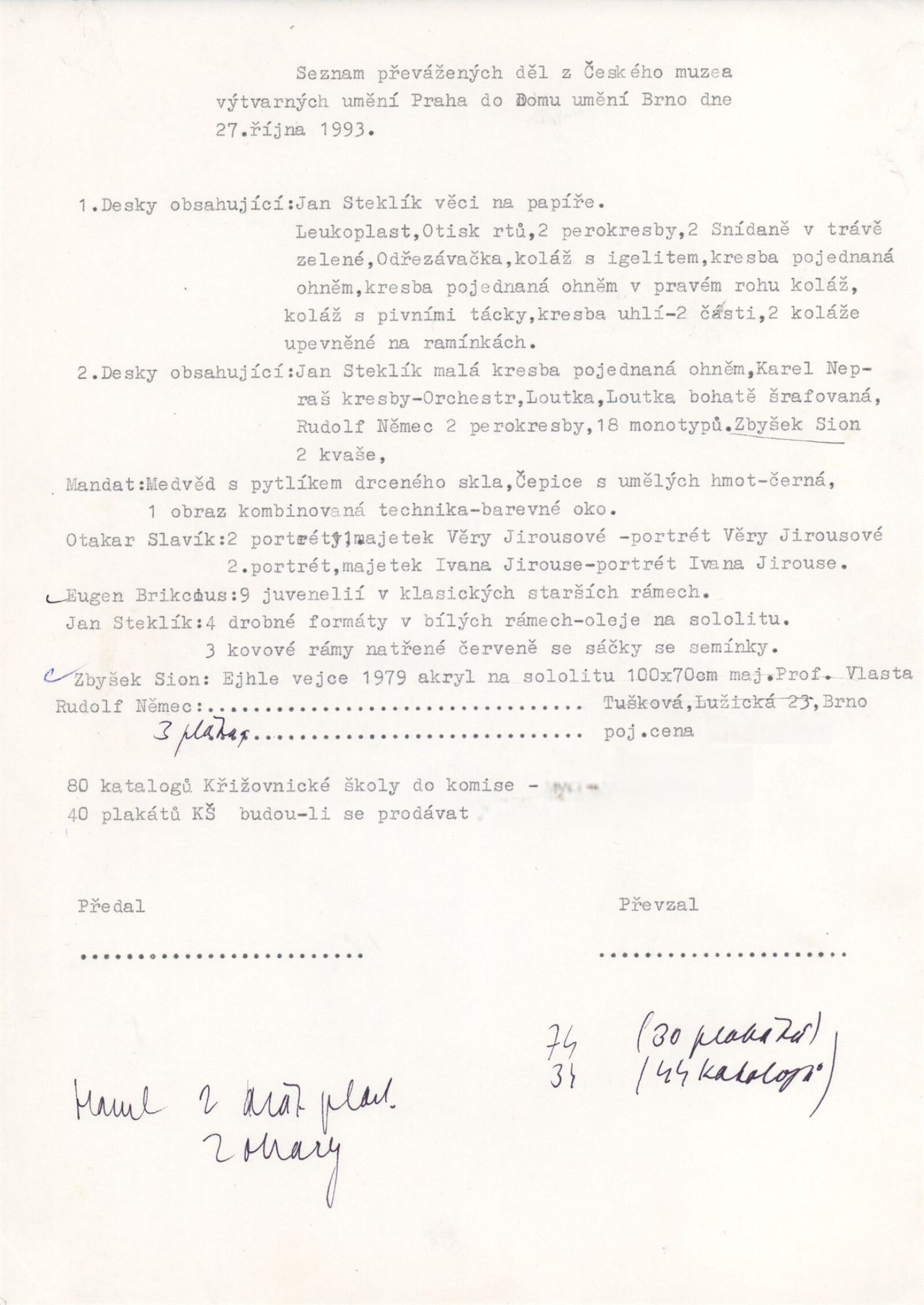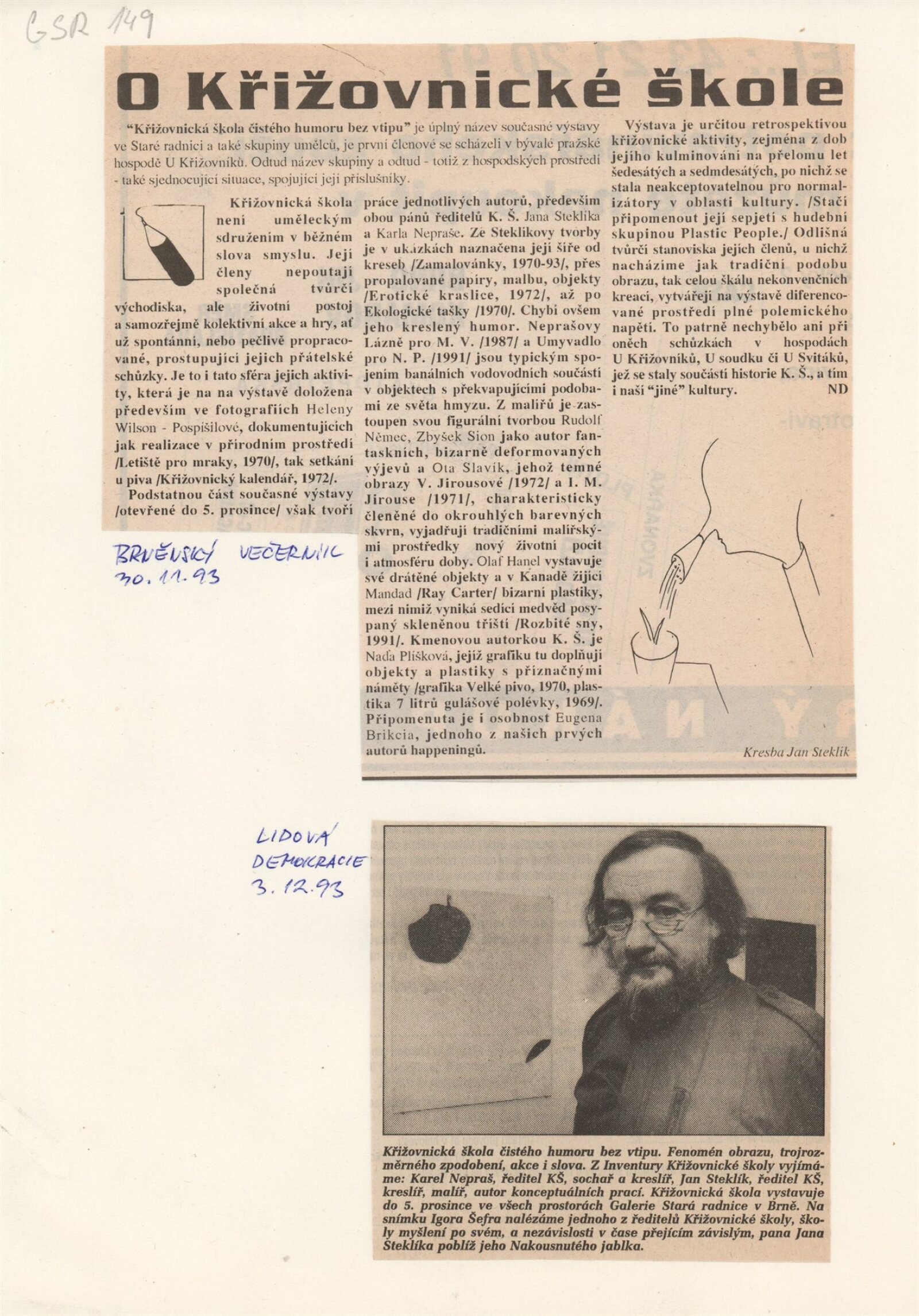 pozvánka, fotografie z vernisáže, seznam převážených děl, korespondence, nabídka výstavy (Olaf Hanel), recenze v tisku