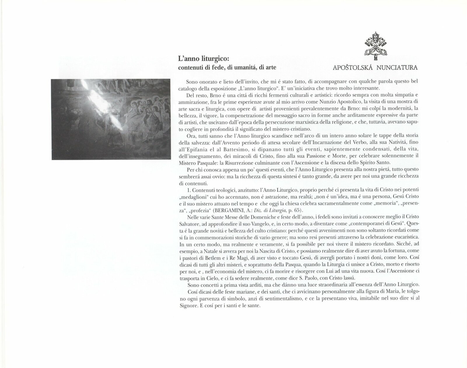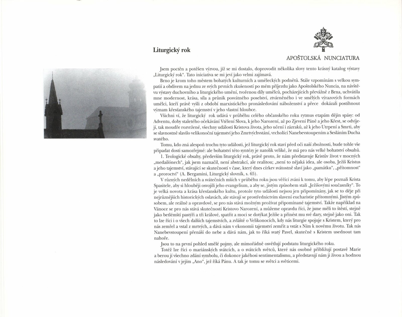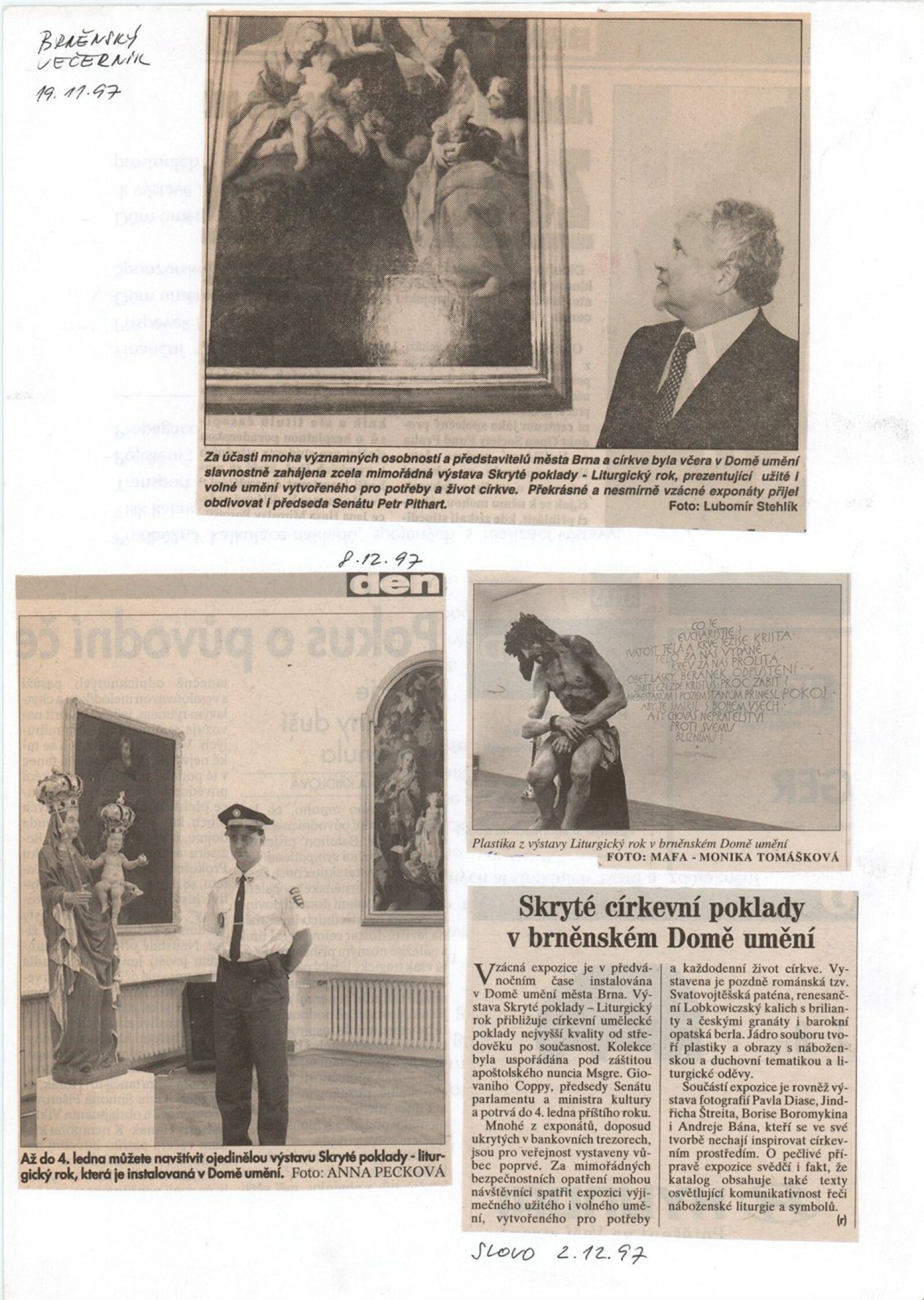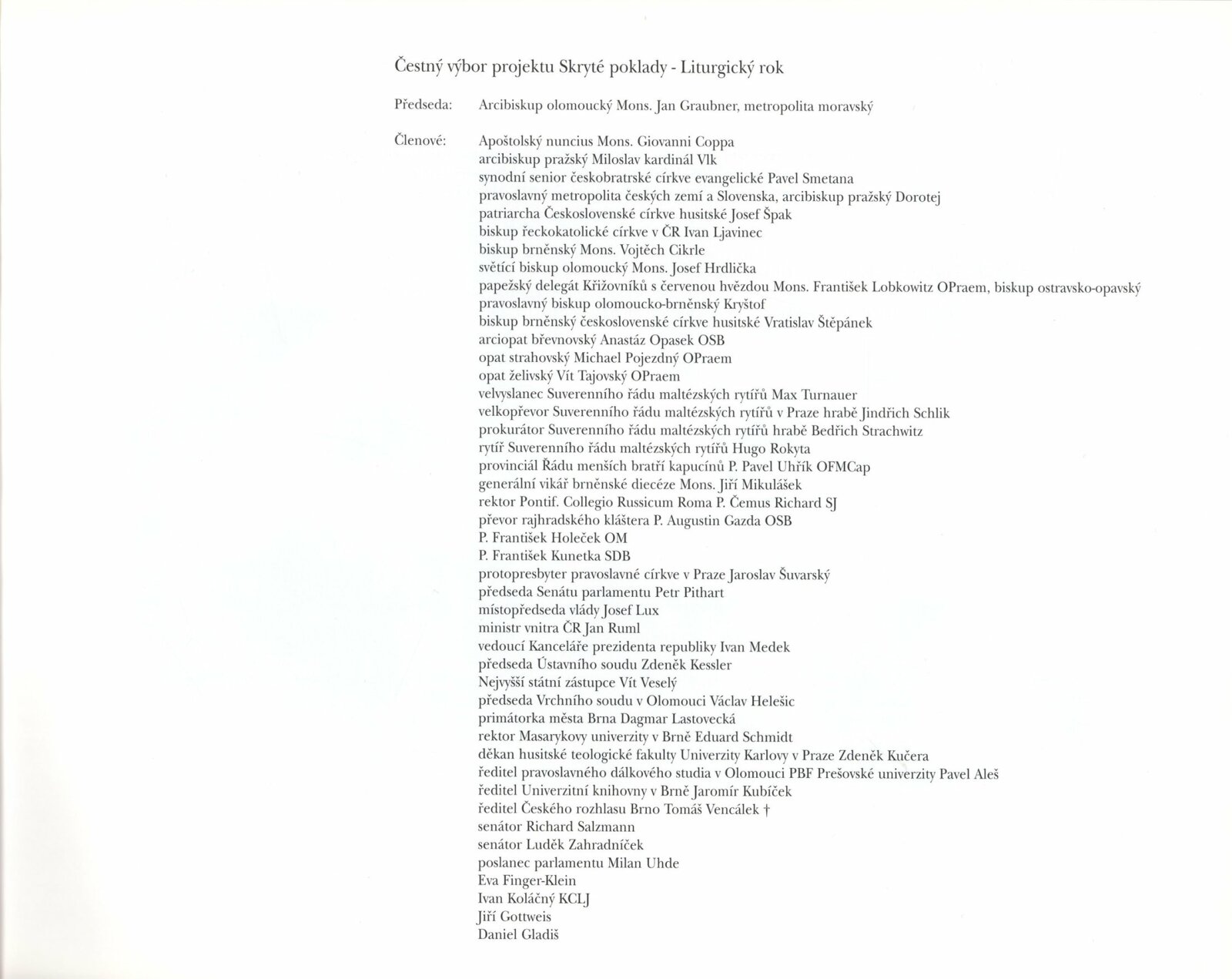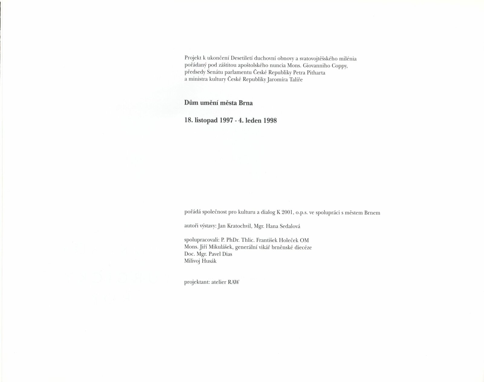 Skryté poklady. Liturgický rok: Dům umění města Brna, 18. 11. 1997 – 4. 1. 1998 / Texty: Jaromír Talíř, Giovanni Coppa, Jan Graubner, Jiří Mikulášek a další. – Brno: K, Společnost pro kulturu a dialog, 2001. – [83] s., obr., DU 1065. – MZK