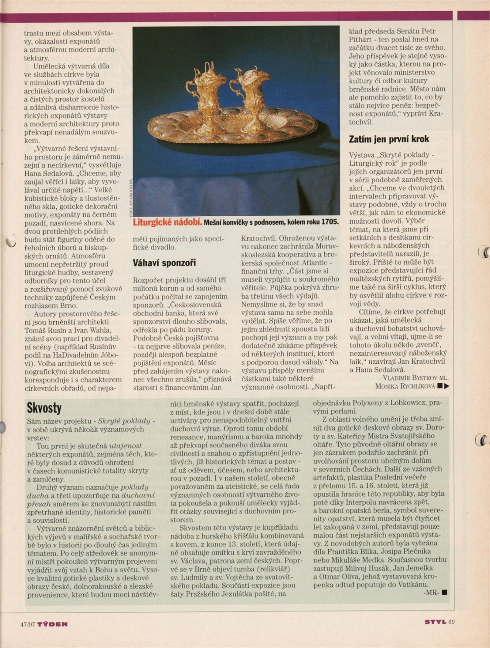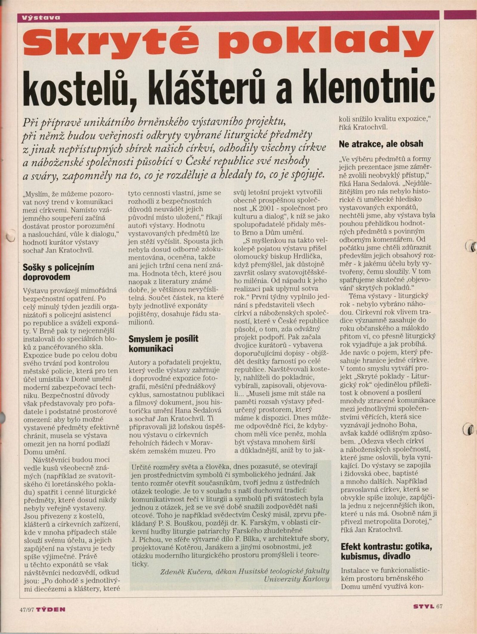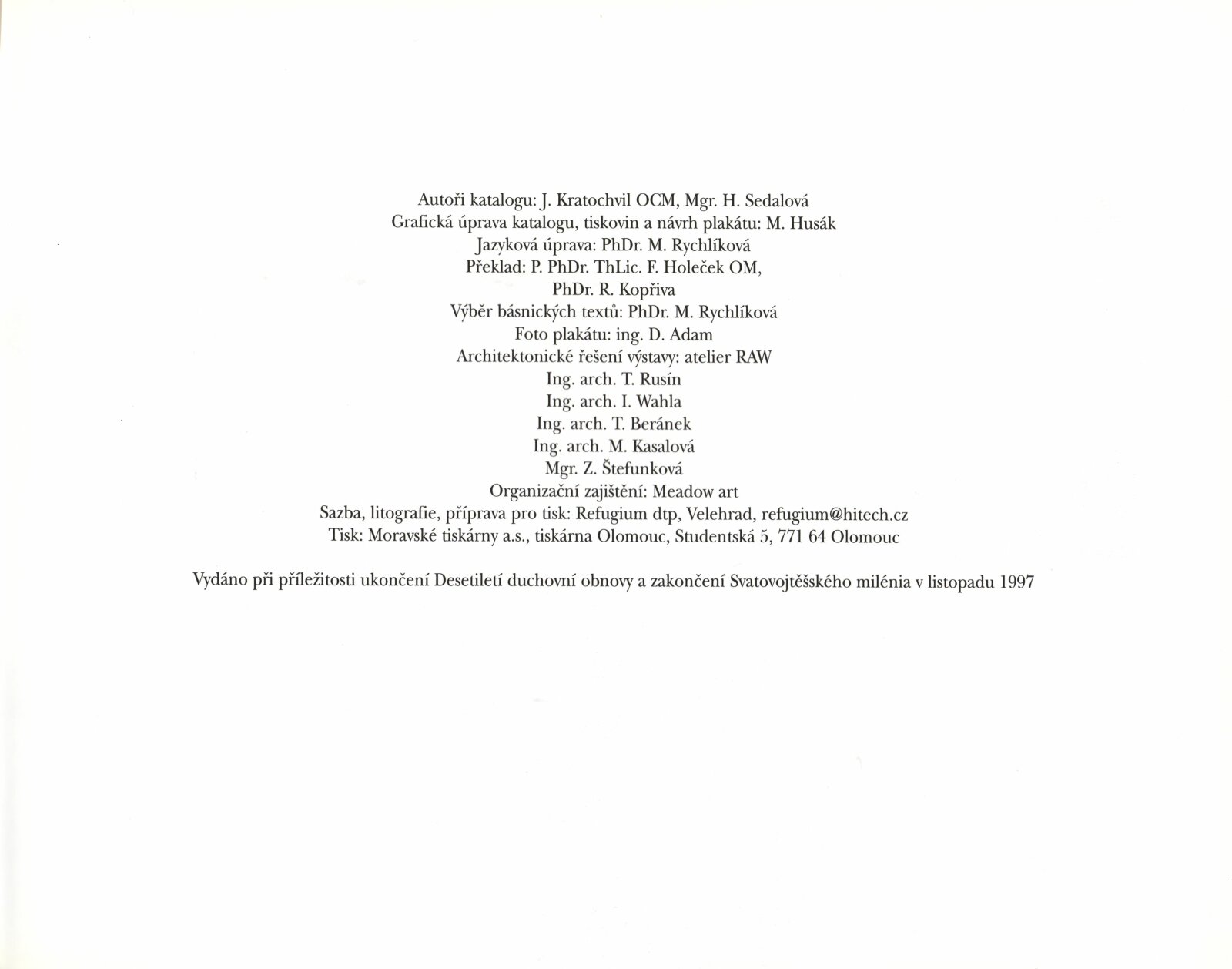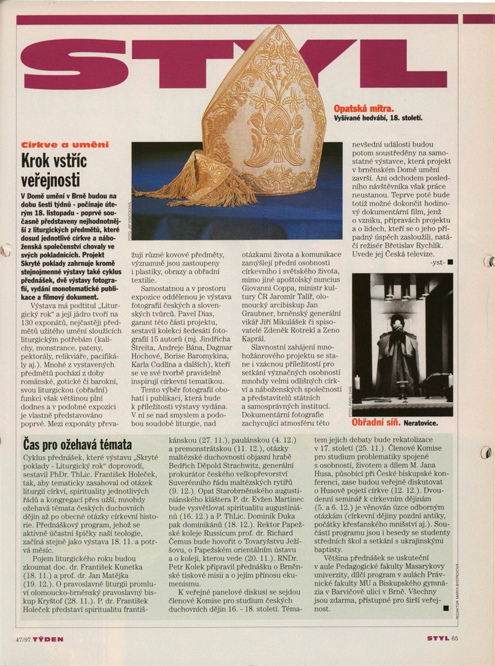 Skryté poklady. Liturgický rok: Dům umění města Brna, 18. 11. 1997 – 4. 1. 1998 / Texty: Jaromír Talíř, Giovanni Coppa, Jan Graubner, Jiří Mikulášek a další. – Brno: K, Společnost pro kulturu a dialog, 2001. – [83] s., obr., DU 1065. – MZK