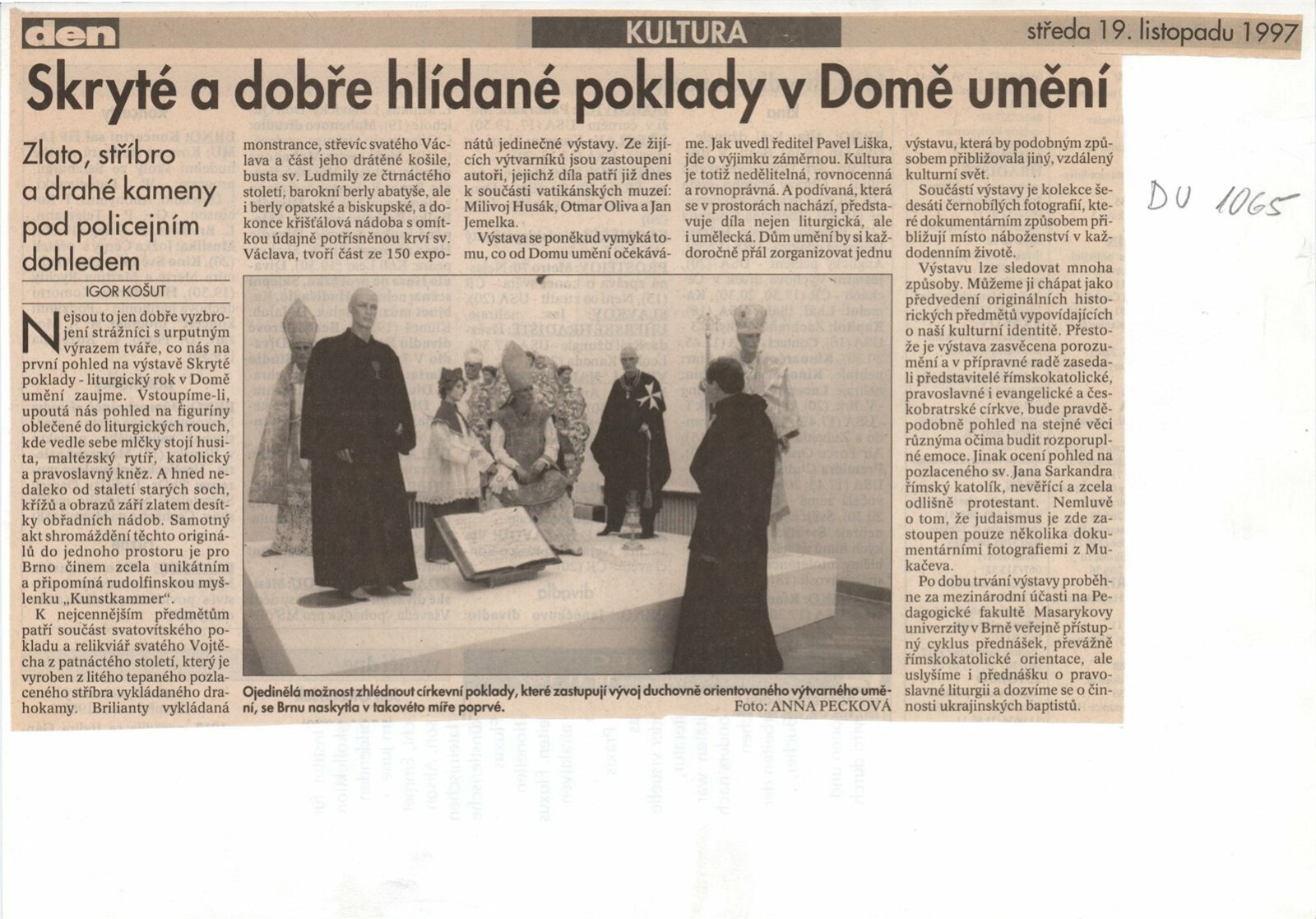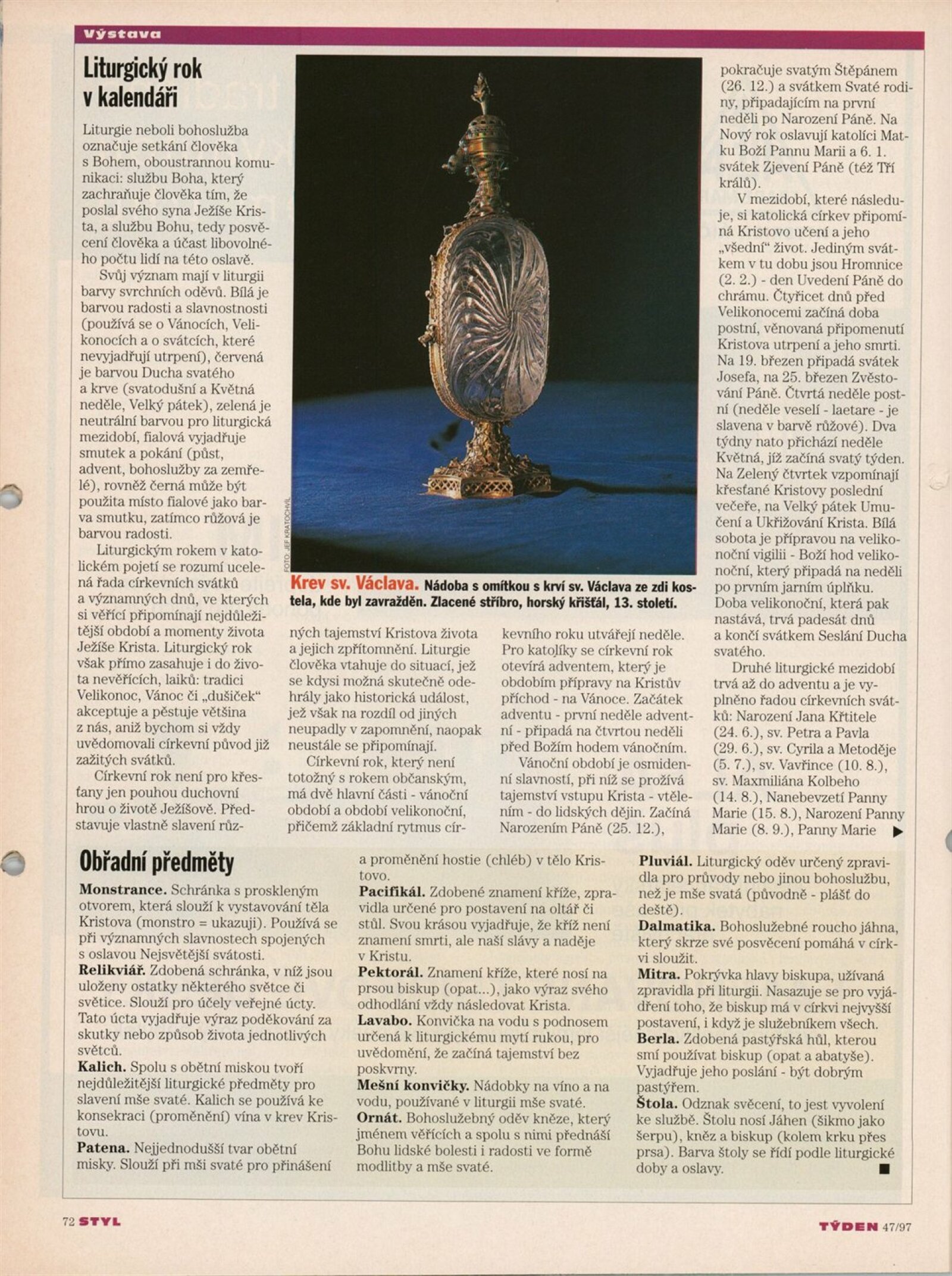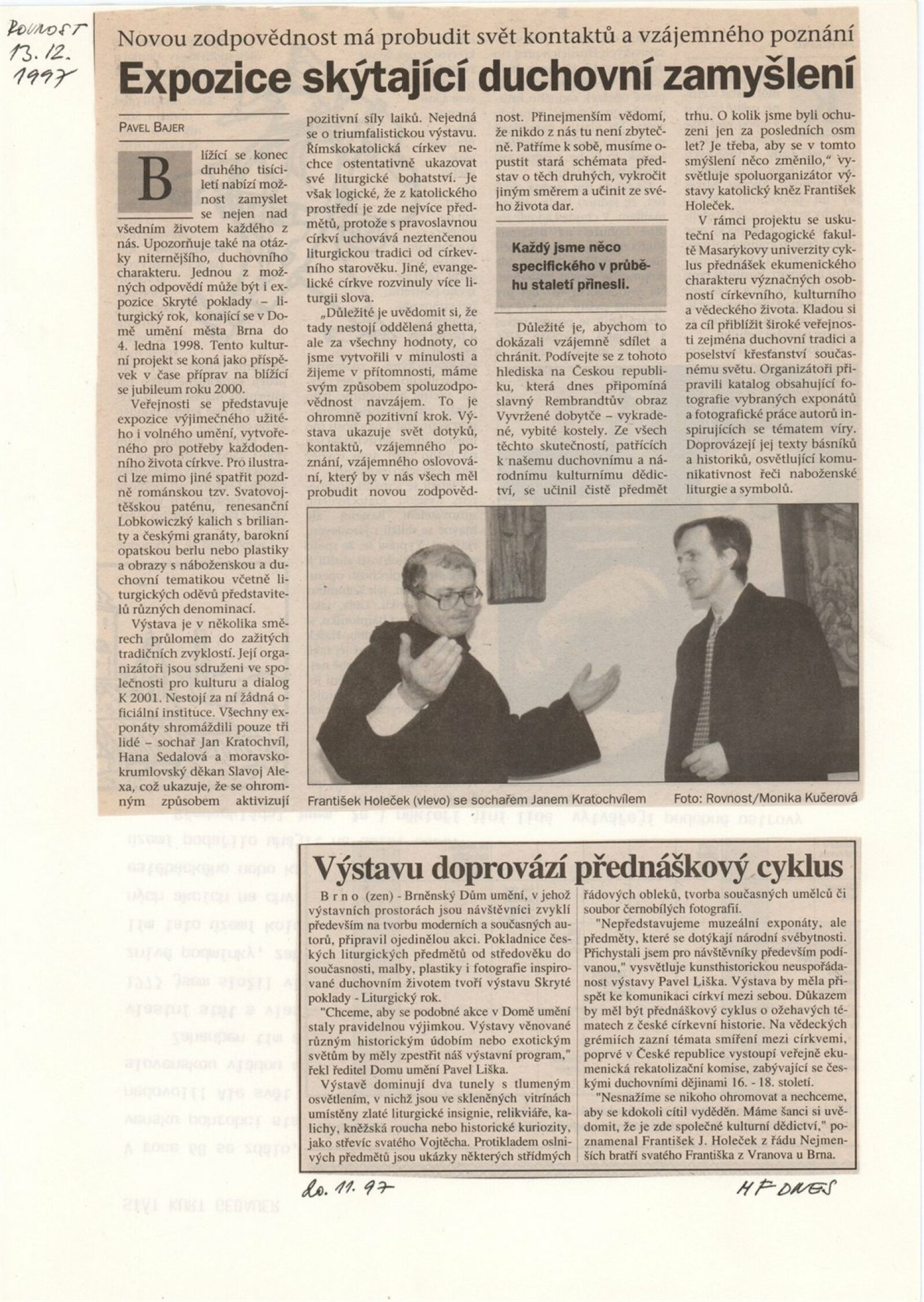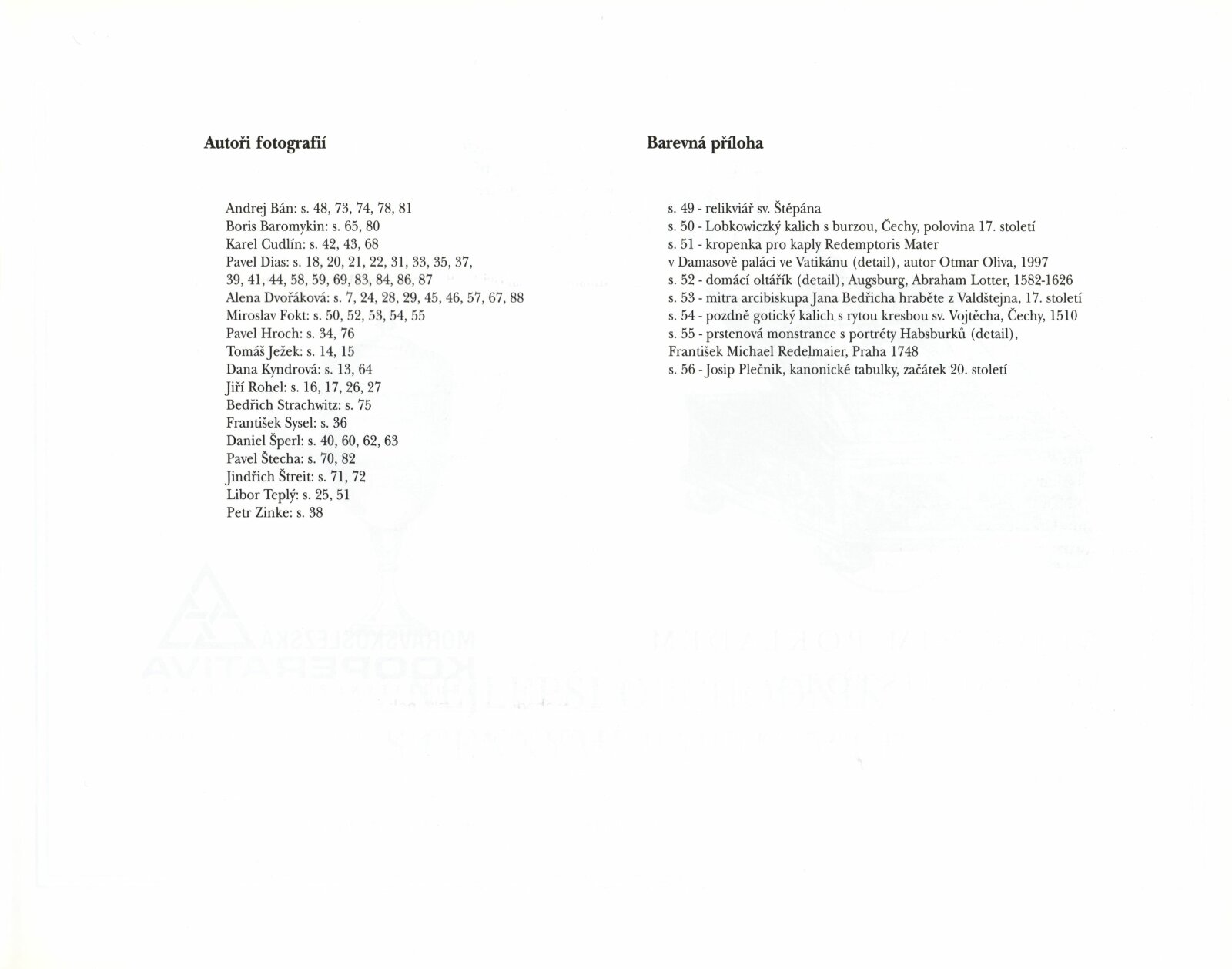 Skryté poklady. Liturgický rok: Dům umění města Brna, 18. 11. 1997 – 4. 1. 1998 / Texty: Jaromír Talíř, Giovanni Coppa, Jan Graubner, Jiří Mikulášek a další. – Brno: K, Společnost pro kulturu a dialog, 2001. – [83] s., obr., DU 1065. – MZK