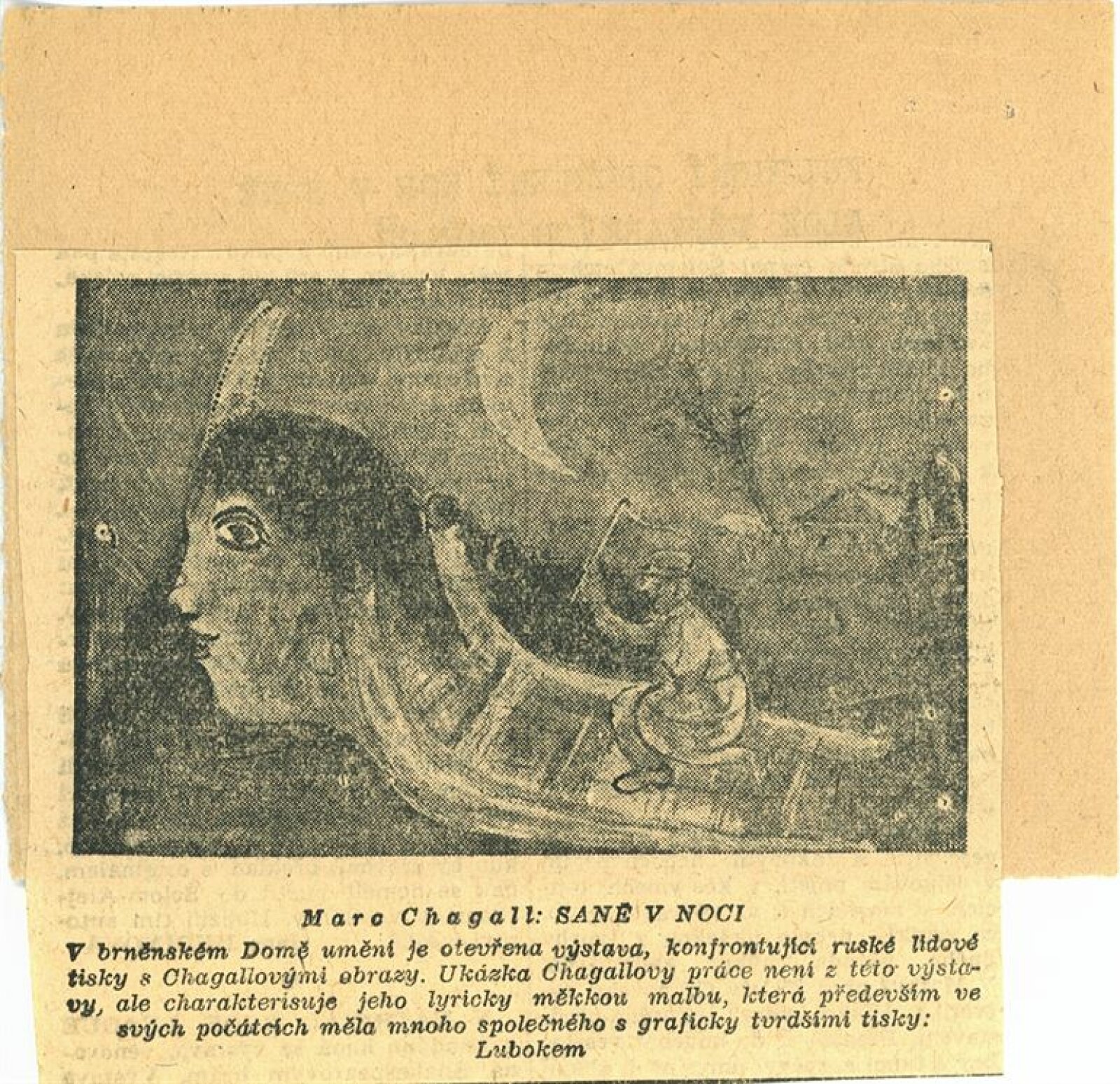 Katalog výstav Domu umění, pořádaných 18. 2. – 7. 3. 1948 / Obsahuje výstavy: Jan Trampota, Karel Svolinský, Ruské lidové tisky z XIX. století, Marc Chagall. – Brno: SVU Aleš, 1948. – 8 s., životopisná data vystavujících, DU 64–67. – AMB Lubok. 61. výstava: Dům umění, 18. 2. – 7. 3. 1948 / Texty: N. Melniková-Papoušková, J. V. – Brno: Dům umění, 1948. – 14 s., obr., DU 64–65. – MG; MMB