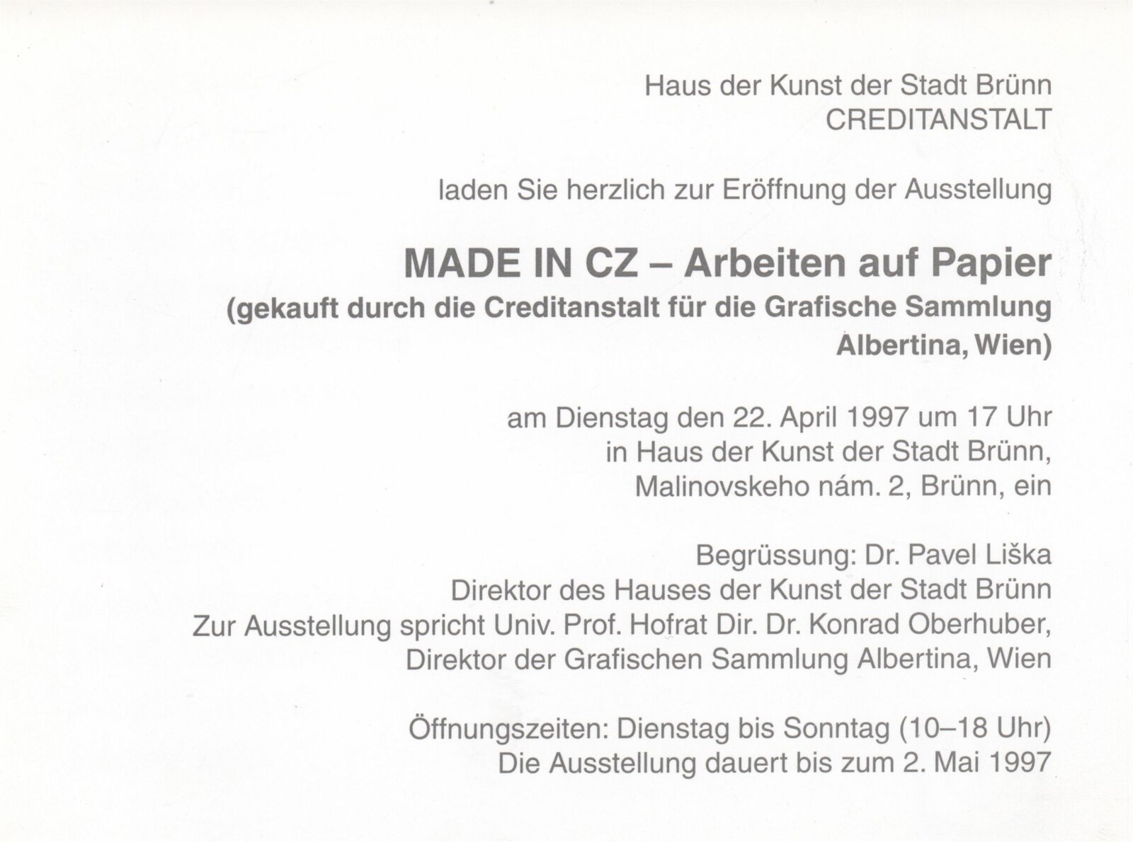 pozvánka, podklady pro pozvánku, text k výstavě, fotografie vernisáže, korespondnce o realizaci výstavy, provozní korespondence, recenze v tisku, poznámky