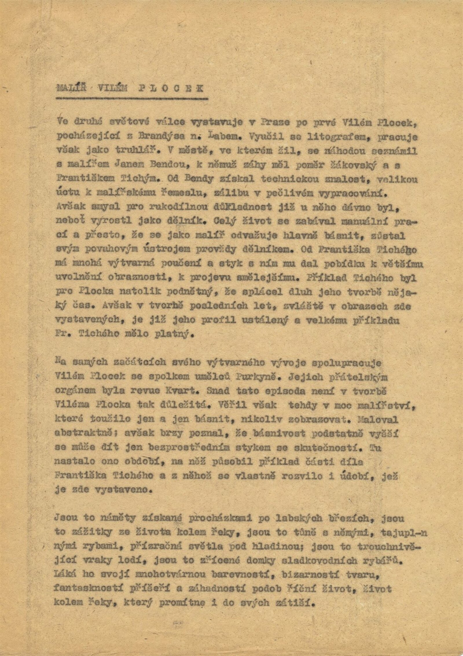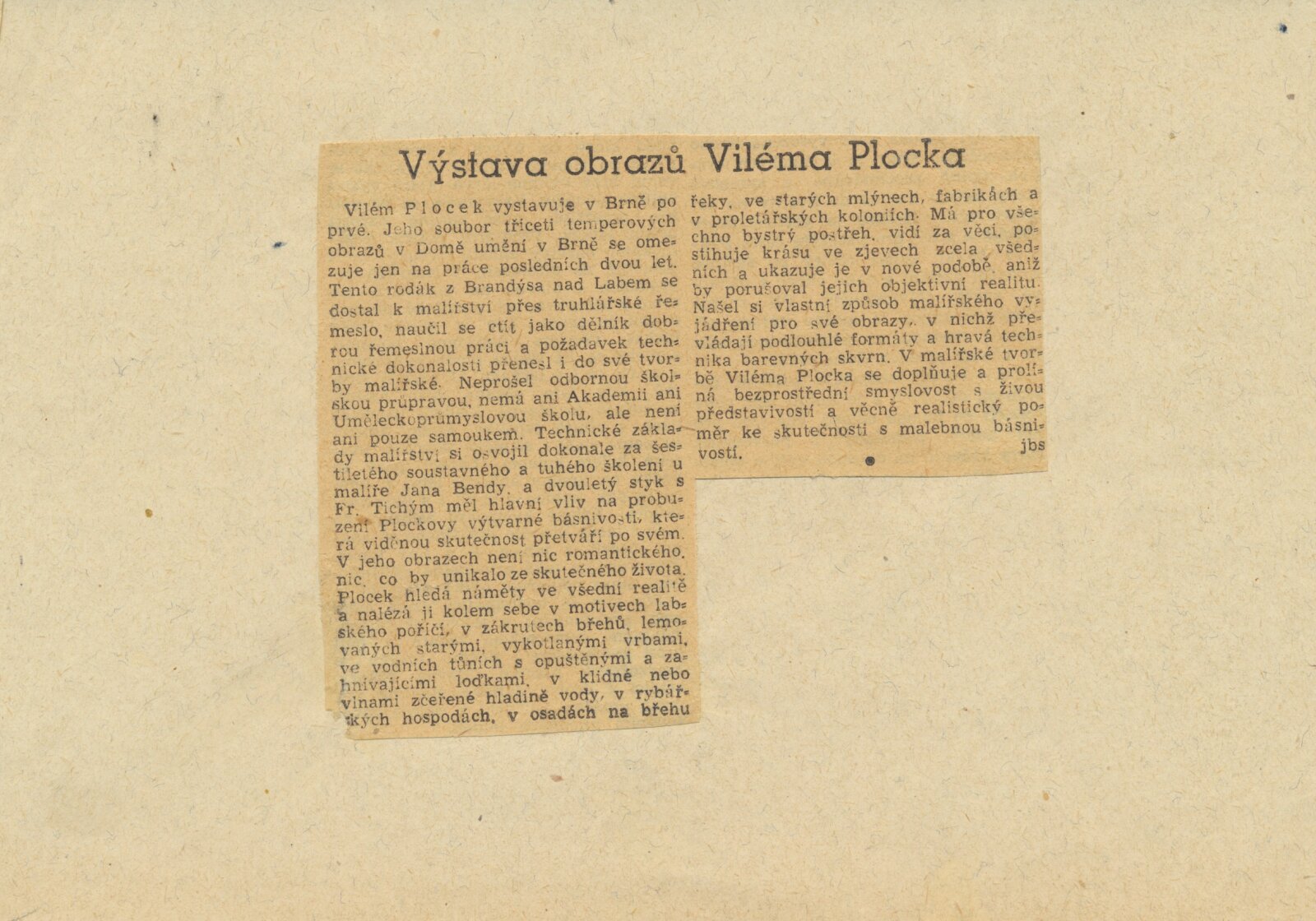 strojopis výstavního listu DU 100, podklady k výstavě, seznam prací, korespondence (dopisy Viléma Plocka o realizaci výstavy), recenze v tisku