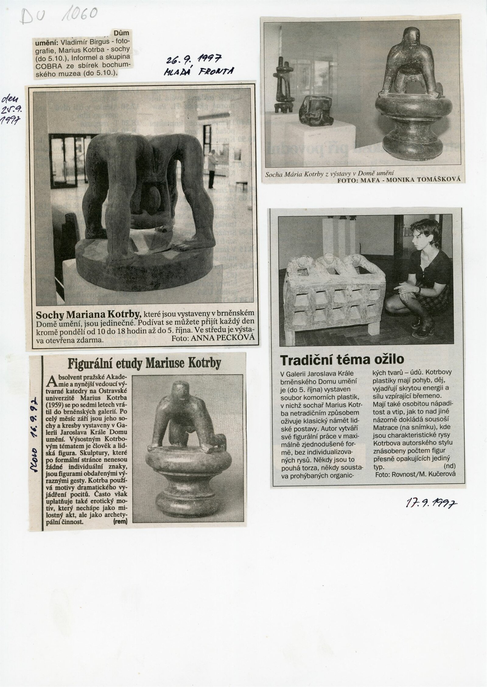 Márius Kotrba. Sochy: Dům umění města Brna, Galerie Jaroslava Krále, 9. 9. – 5. 10. 1997 / Text: Jan Balabán. – B. m. n. – 4 s., životní data, výstavy, symposia, DU 1060