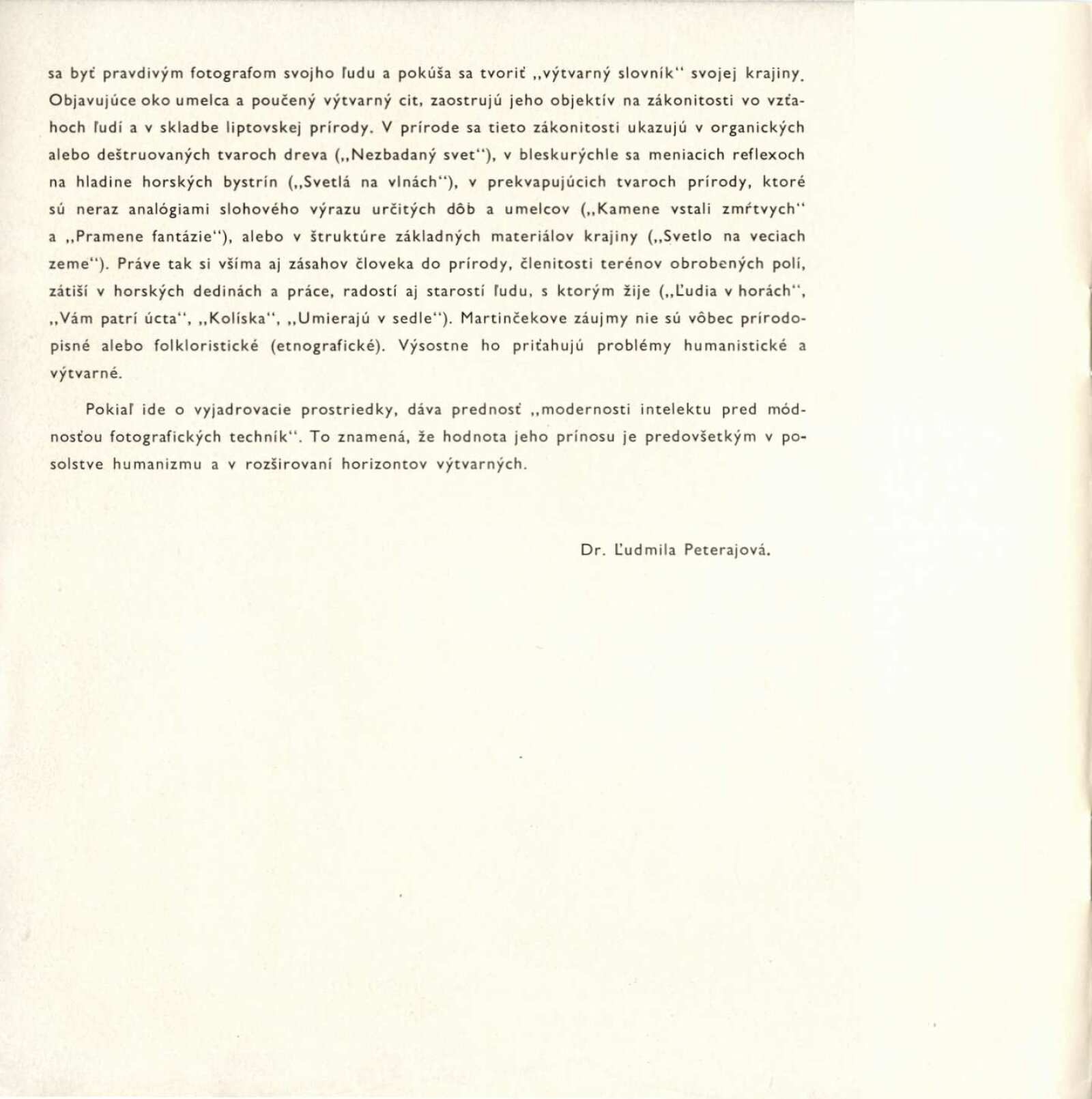 Martin Martinček. Fotografie: Dům umění města Brna / Dům pánů z Kunštátu, 20. 4. – 25. 5. 1969 / Text: Ľudmila Peterajová. – Brno: DUmB, 1969. – 8 s., obr., DPK 412. – MZK; MG