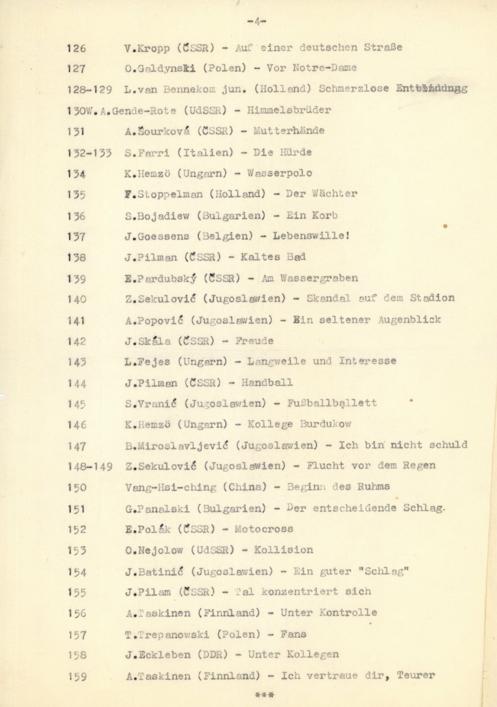 M. Murasow, M. P. Ananin, P. Karásek, E. Zinner, PIC, S. Preobrashenskij, A. Bahenský, E. Weglowski, J. Uklejewski, P. J. Griffiths, G. Finlayson, S. Saves, E. Pardubský, K. Jarochowski, M. von Haven, Karel Hájek, M. E. Schulze, E. Friedmann, F. Hellinck, J. Pilman, H. C. Bresson, Vilém Kropp, P. Friedmann, G. Sartarelli, R. Pais, F. H. Aal, J. Kopeć, B. J. van Meerendonck, T. Dubinskij, A. Šourková, V. Diaz, Yang Ping-wen, Kan Mun Chup, E. Selhaus, K. Uchida, J. J. Murawin, E. A. Gageiro, J. Papp, W. Soboljew, L. Petrovicz, T. Trepanowski, E. Umnow, H. Heinonen, R. Hene, K. Kulitschenko, C. de Boer, M. Vučičević, H. Grzéda, H. Vroege, A. Paszkowiak, G. Kiezling, S. Zsuzsa, S. Iwaki, V. Wawrzynkiewicz, D. Gueye, D. Rago, Ulli Sko, A. Rulmoni, L. Petrovics, Y. Watabe, A. Usljan, O. Galdynski, M. Zeeland, J. Makal, T. Farkas, F. Setaccioli, J. Nosek, S. Bojár, O. Oais, Tang Chuen-tsu, Nguyen Duy Kien, Sun Chung-ching, G. Vetter, S. Vranić, M. Riboud, F. Stoppelman, J. Zima, D. Stock, M. Redkin, L. van Bennekom jin. Stomathu, T. Mitome, A. Gende-Rote, S. Farri, K. Hemzö, S. Bojadiew, J. Goessens, J. Pilman, E. Pardubský, Z. Sekulović A. Popović, J. Skála, L. Fejes, B. Miroslavljević, Vang-Hsi-ching, G. Panalski, E. Polák, O. Nejolow, J. Batinić, A. Taskinen, J. Eckleben