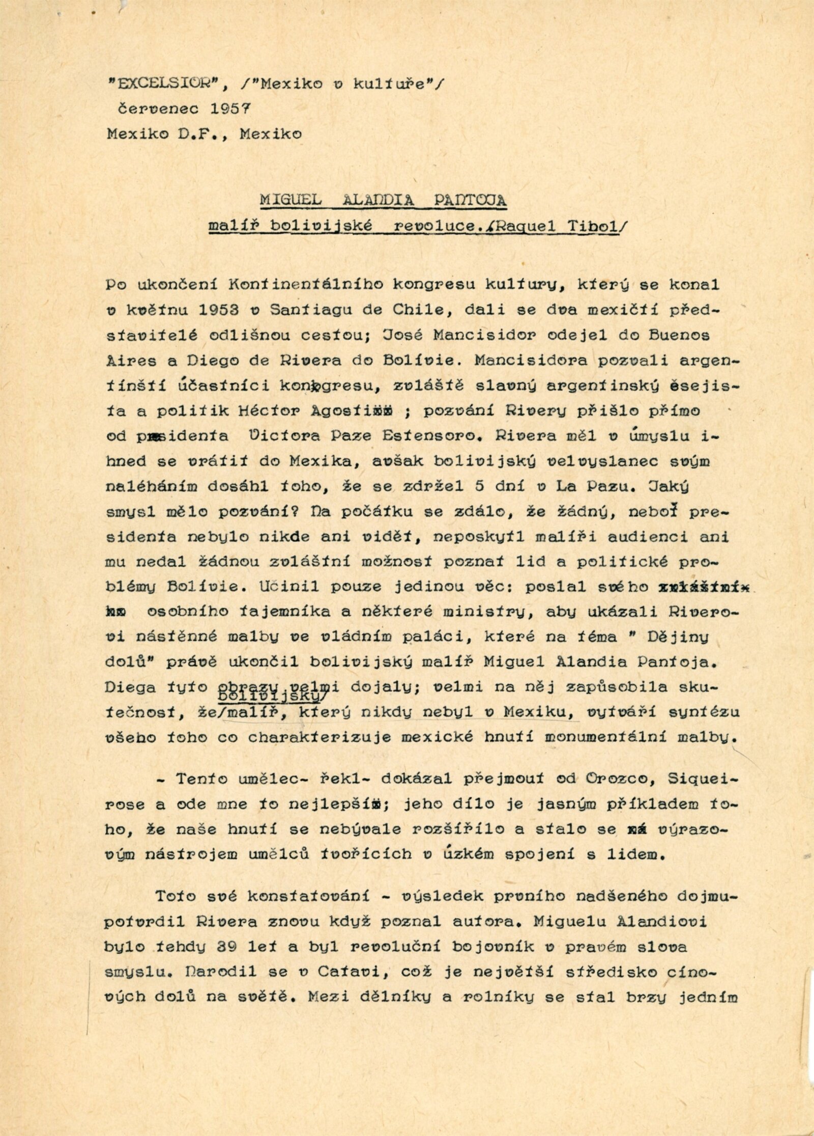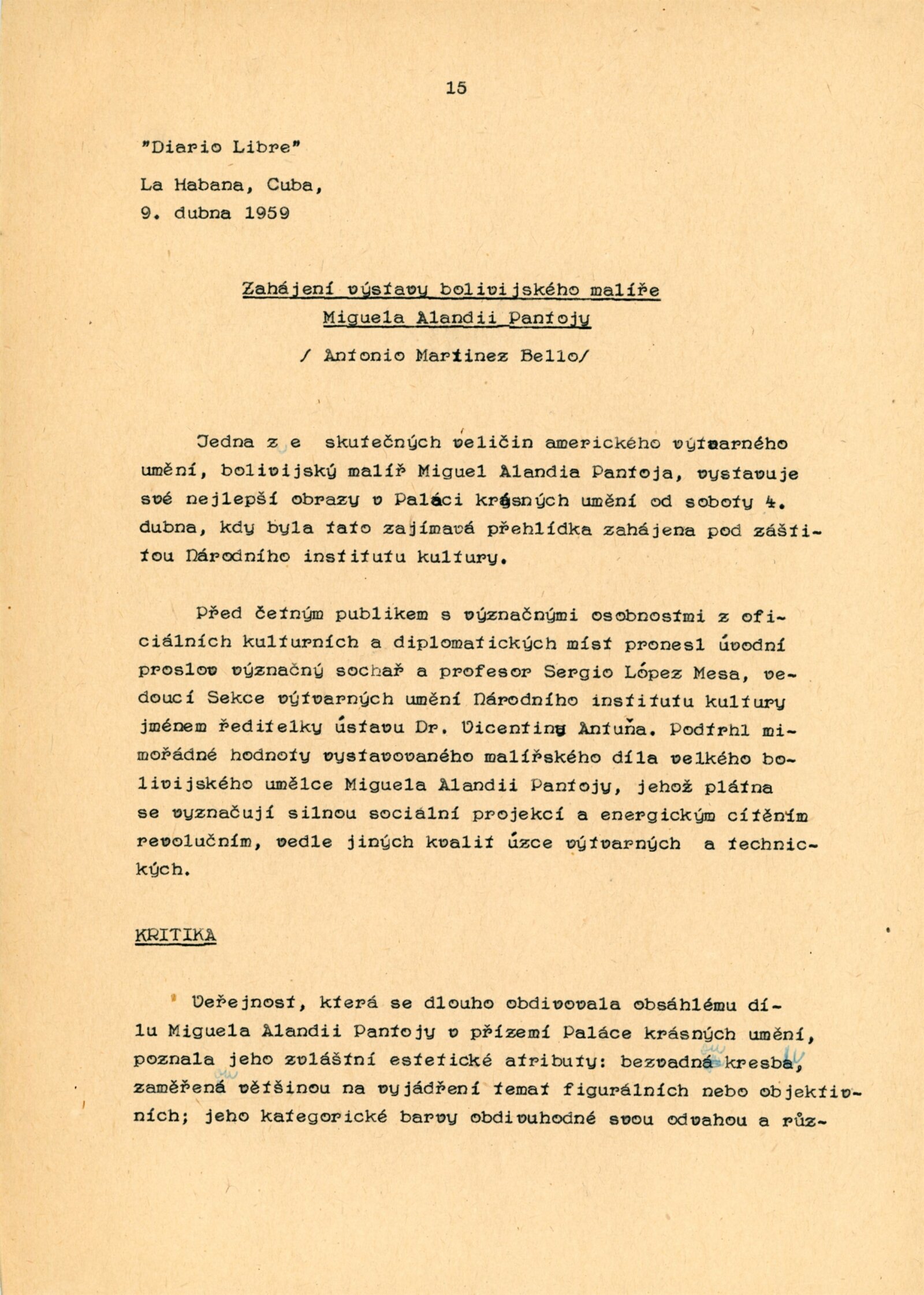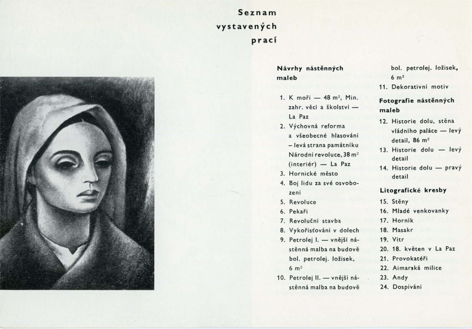 Miguel Alandia Pantoja. Výběr z díla bolivijského umělce: Dům umění města Brna, hala, Galerie Jaroslava Krále, 27. 5. – 28. 6. 1964 / Text: Jaroslav Kačer. – Brno: DUmB, 1964. – 10 s., obr., DU 431. – MZK; MG