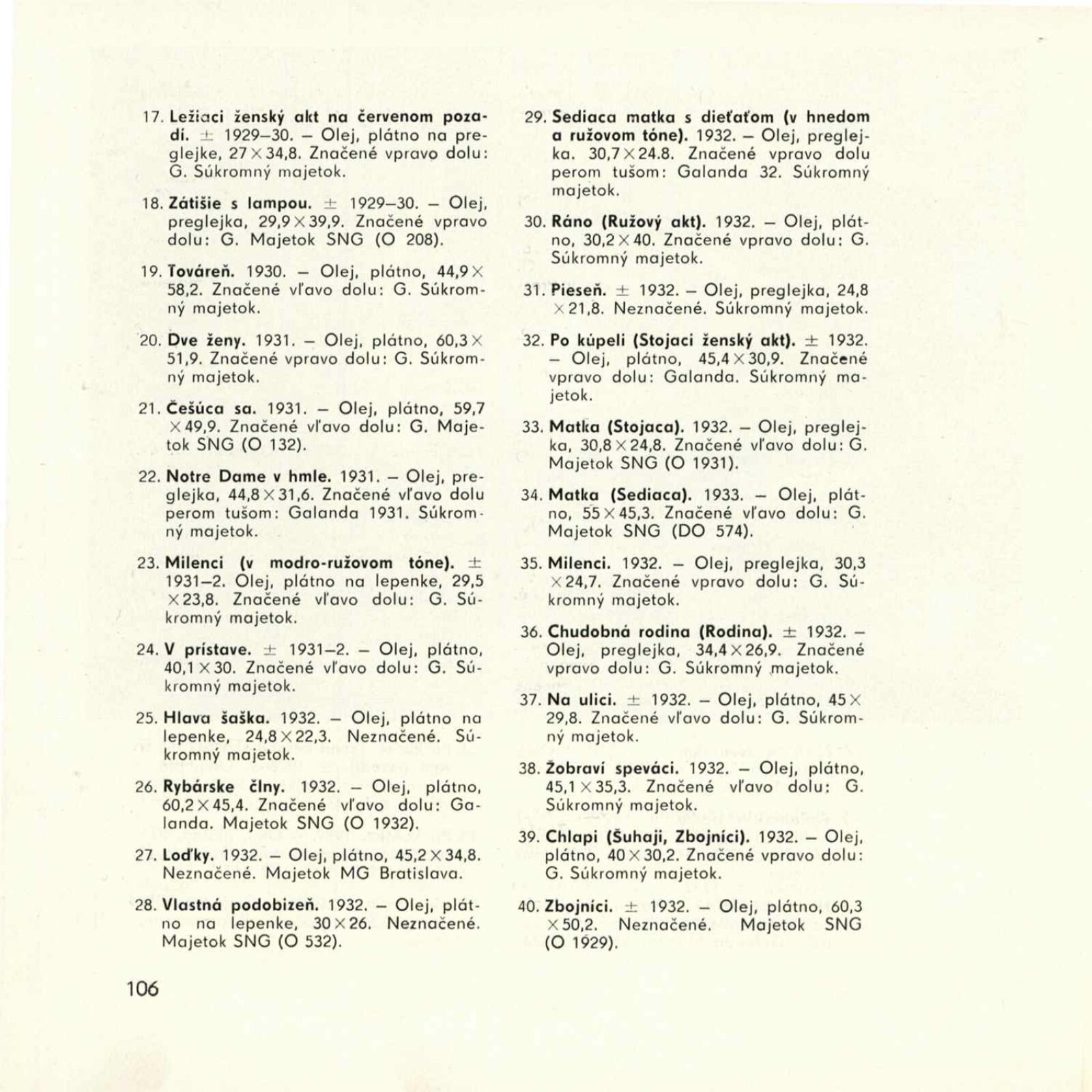 pozvánka, katalog, strojopis básní (L. Novomeský), seznam pojistných exponátů, fotografie děl, korespondence (SNG, Karol Vaculík, Peterajová, DU), reverzy, recenze v tisku