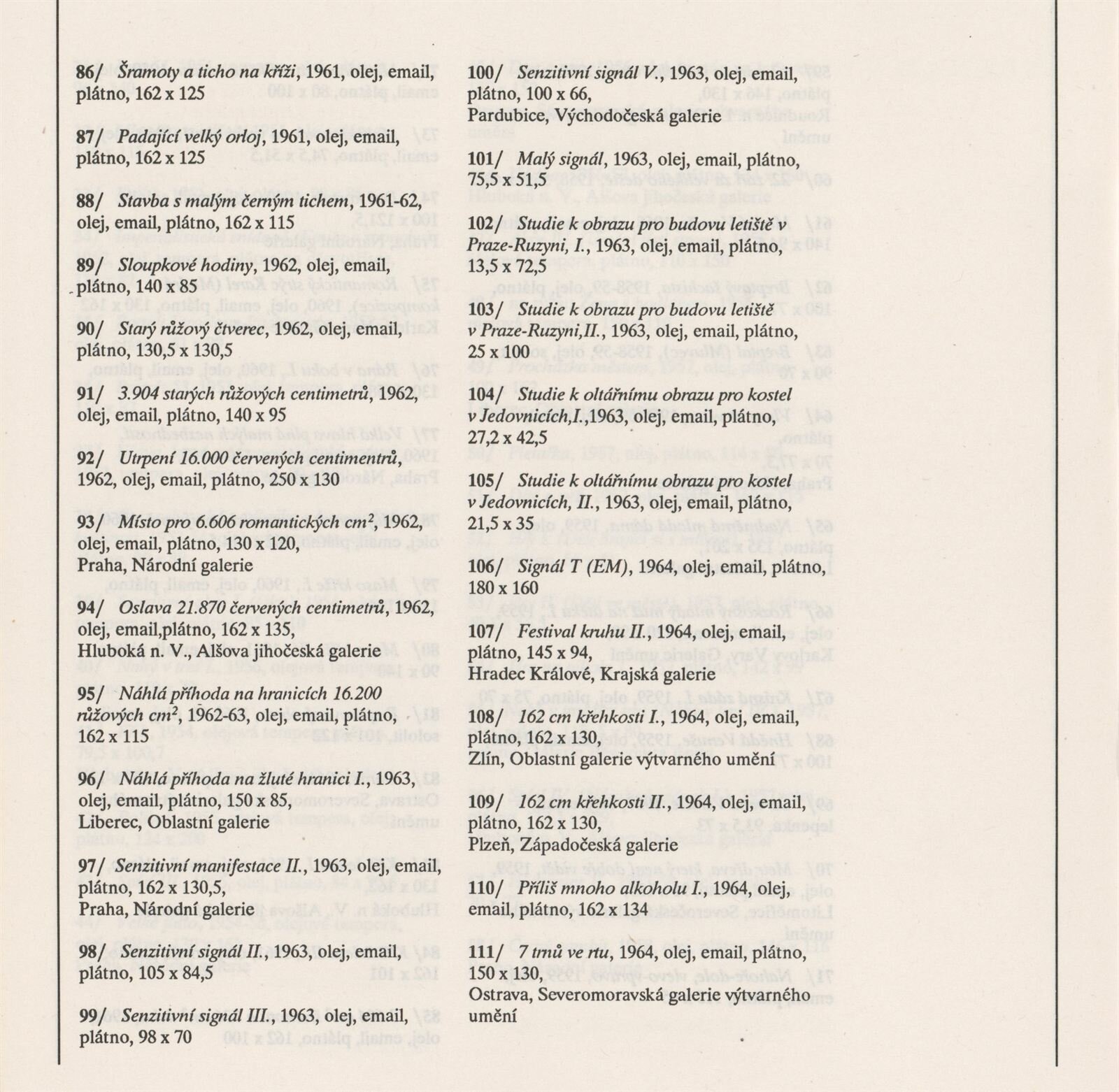 pozvánka, katalog, podklady pro katalog, návrh instalace výstavy, fotografie děl, seznam vystavených děl, pojistný seznam, provozní korespondence, potvrzení o převzetí, institucionální korespondence ohledně zápůjček, korespondence s majiteli, smlouva o výpůjčce, dohoda o uspořádání výstavy, hospodářská smlouva, recenze v tisku, digitalizovaný videozáznam výstavy z archivu Aleše Záboje (24.4.1990, 1:20, S-VHS), digitalizovaný videozáznam z výstavy (VHS)