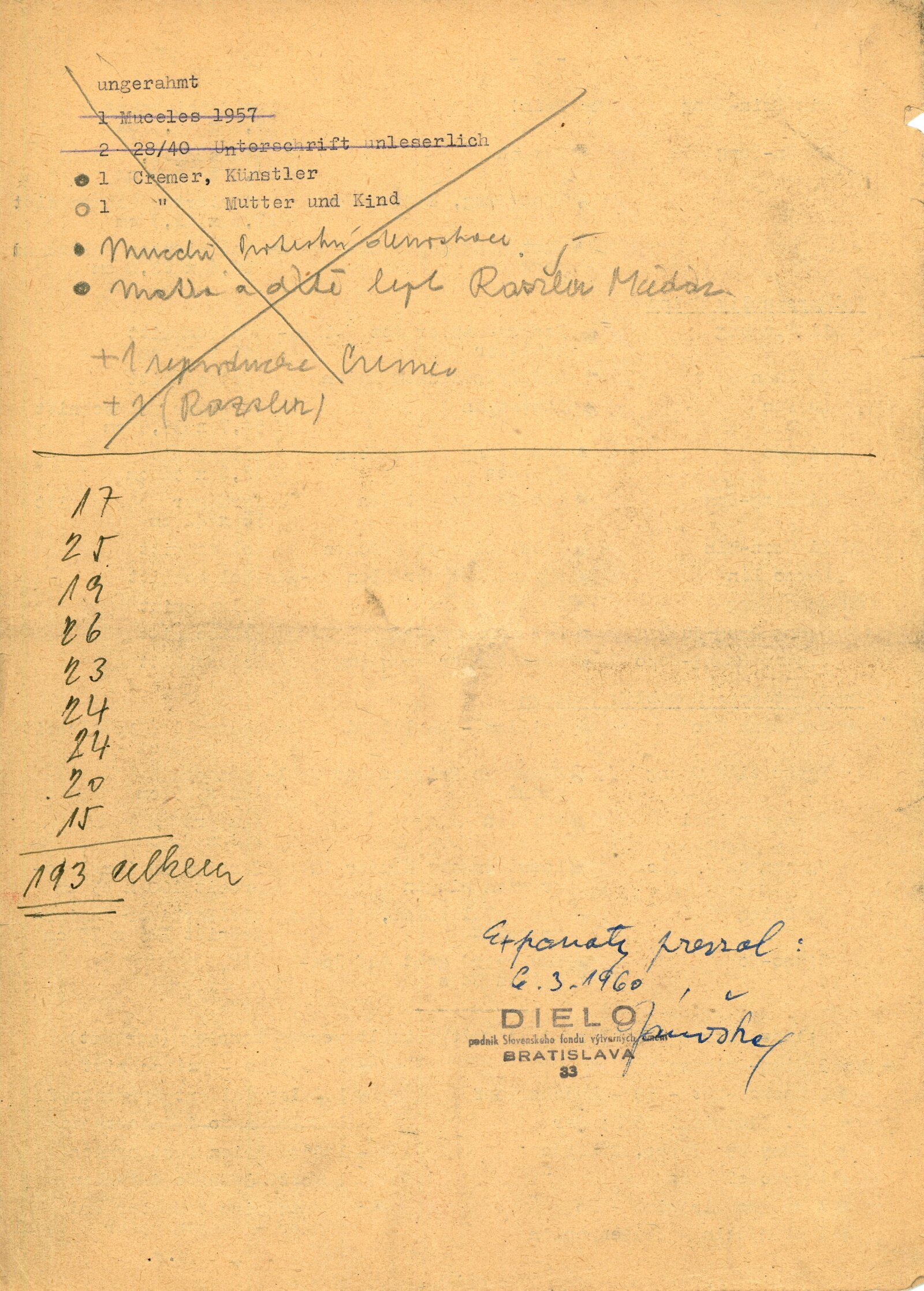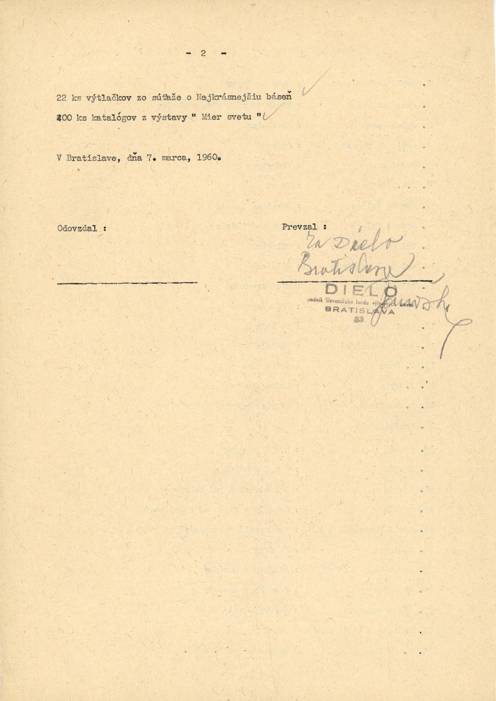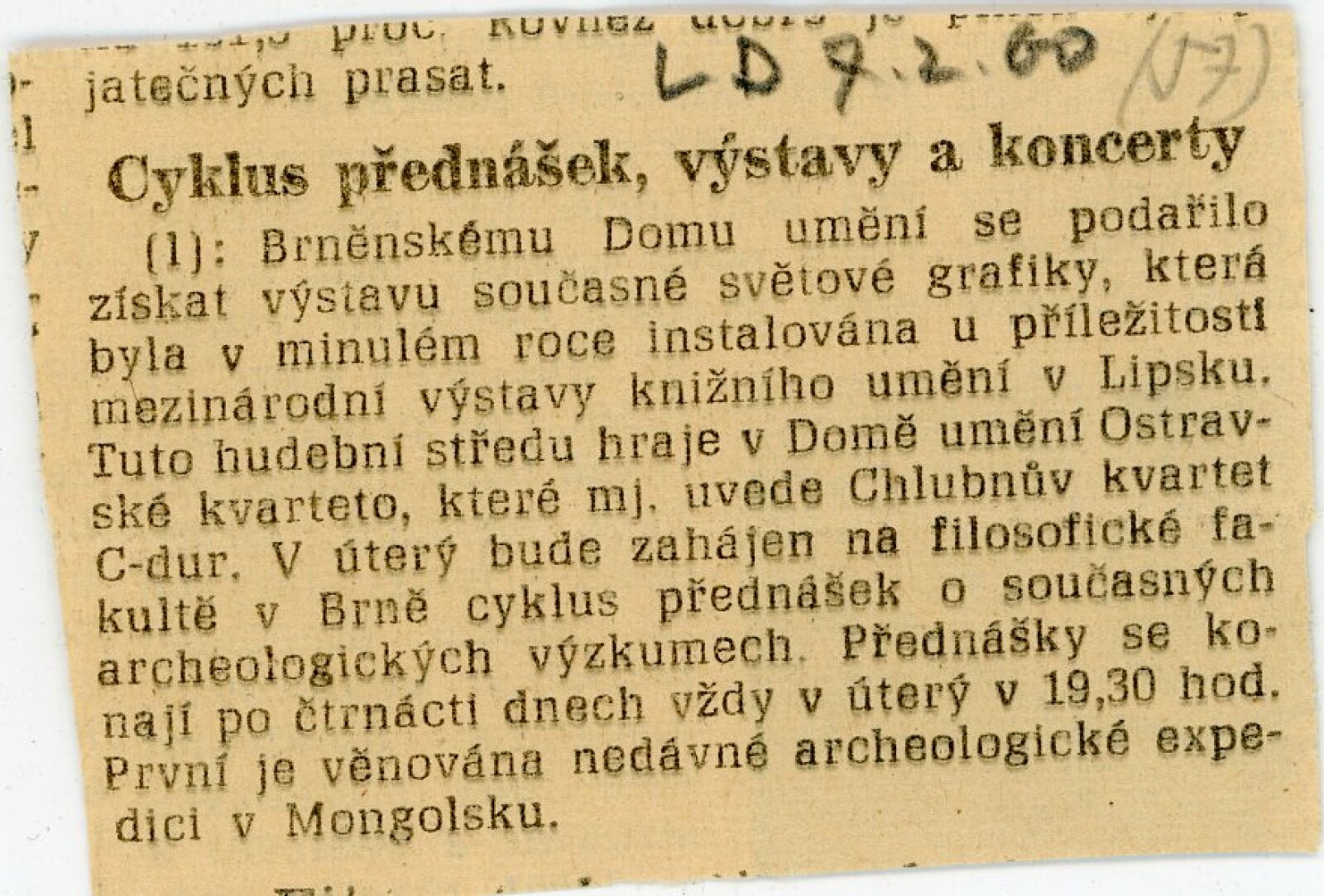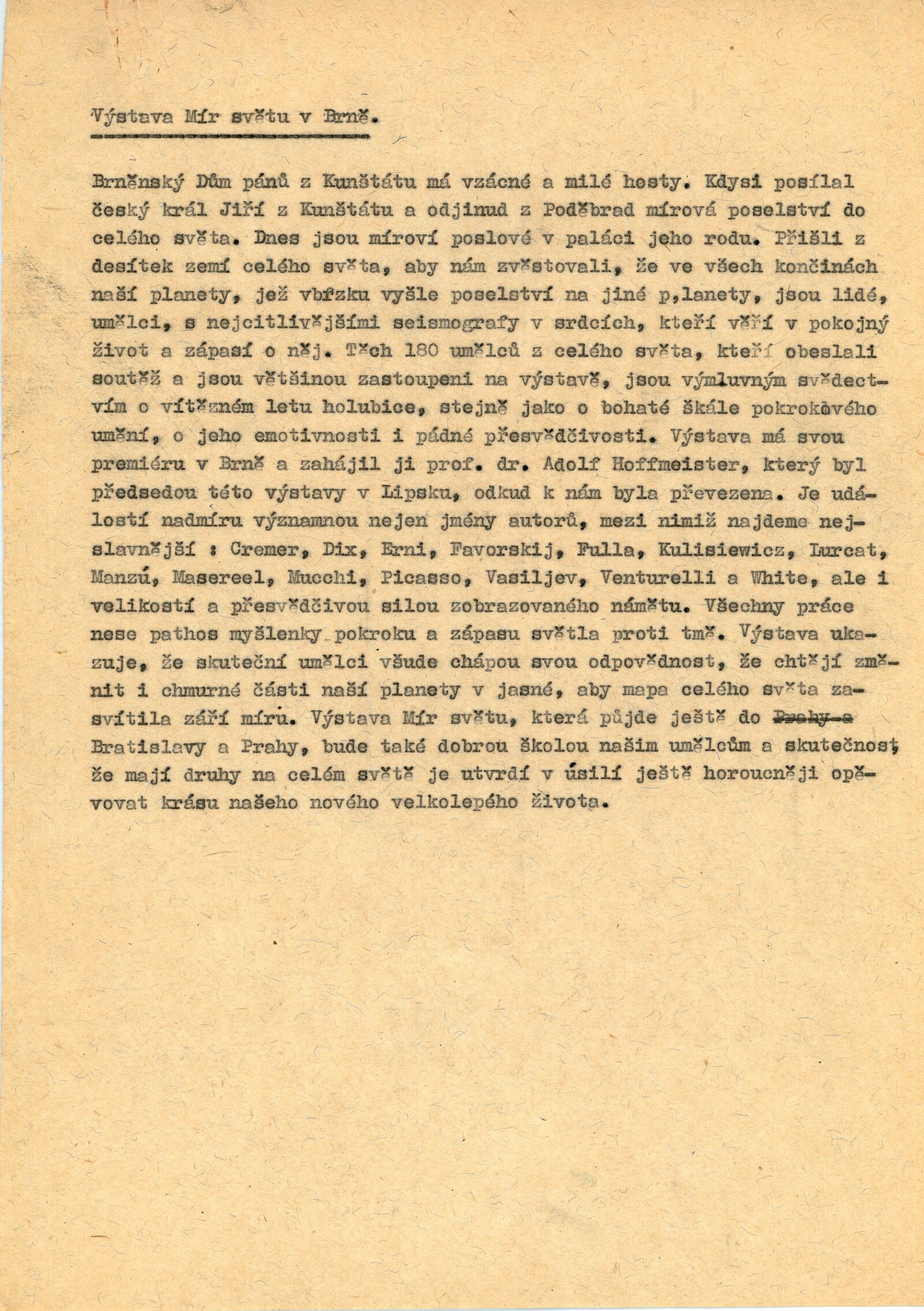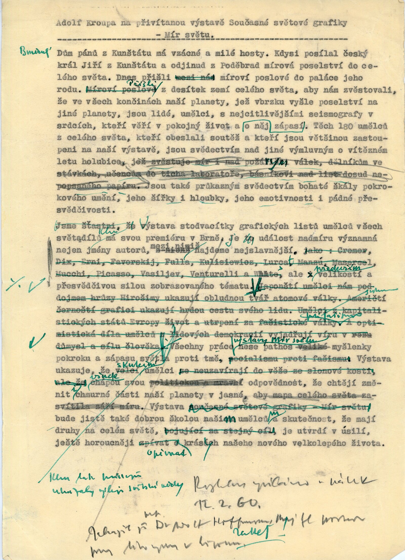 Mír světu. Současná světová grafika: Dům umění města Brna / Dům pánů z Kunštátu, 14. 2. – 6. 3. 1960 / Brno: DUmB, 1960. – složený list, obr., DPK 57. – MZK; MG; MMB