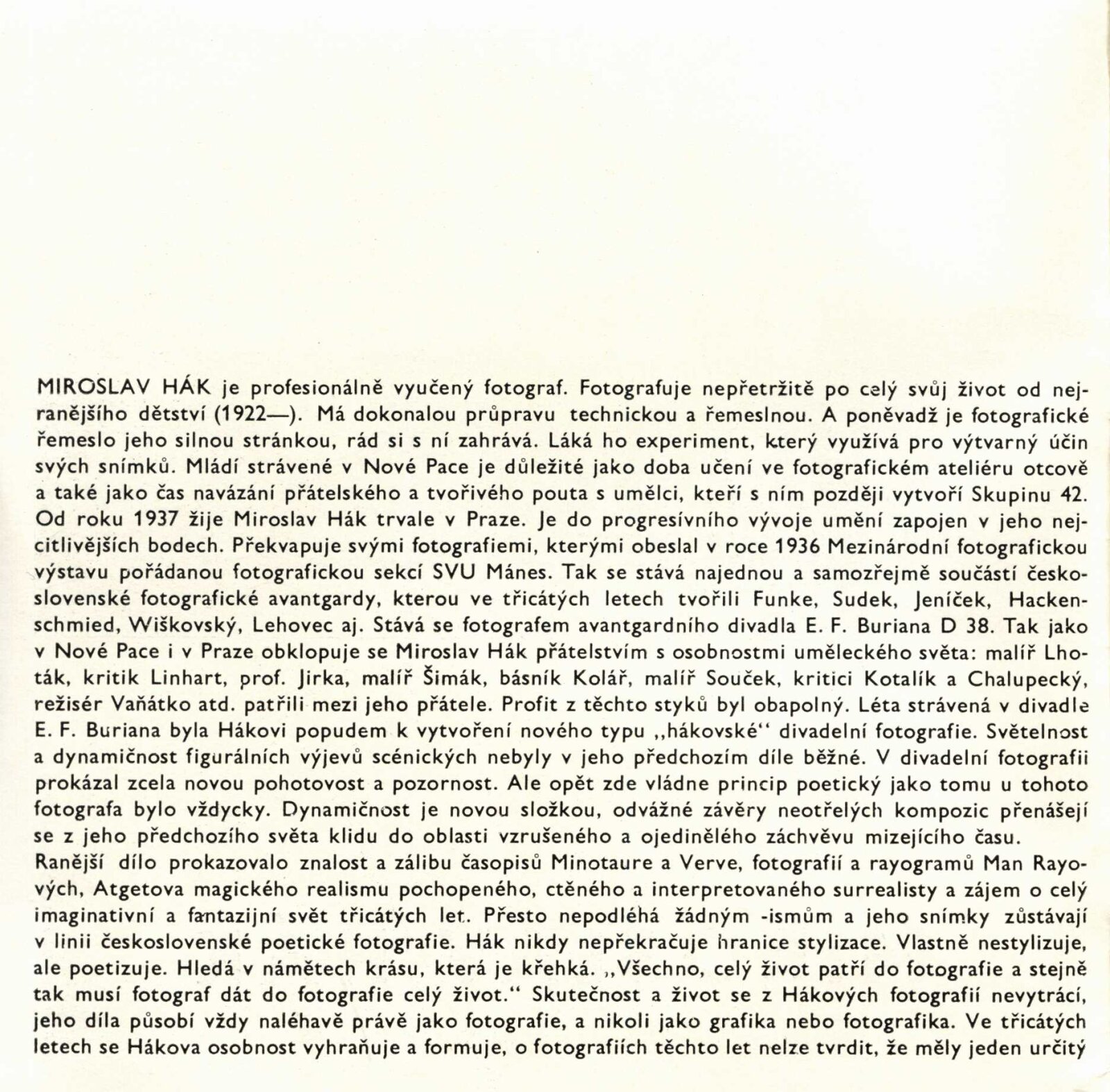 Miroslav Hák: Dům umění města Brna / Dům pánů z Kunštátu, 104. výstava Kabinetu fotografie Jaromíra Funka, 27. 2. – 5. 4.1970 / Text: Anna Fárová. – Brno: DUmB, 1970. – 8 s., obr., životní data, DPK 433. – MZK; MG
