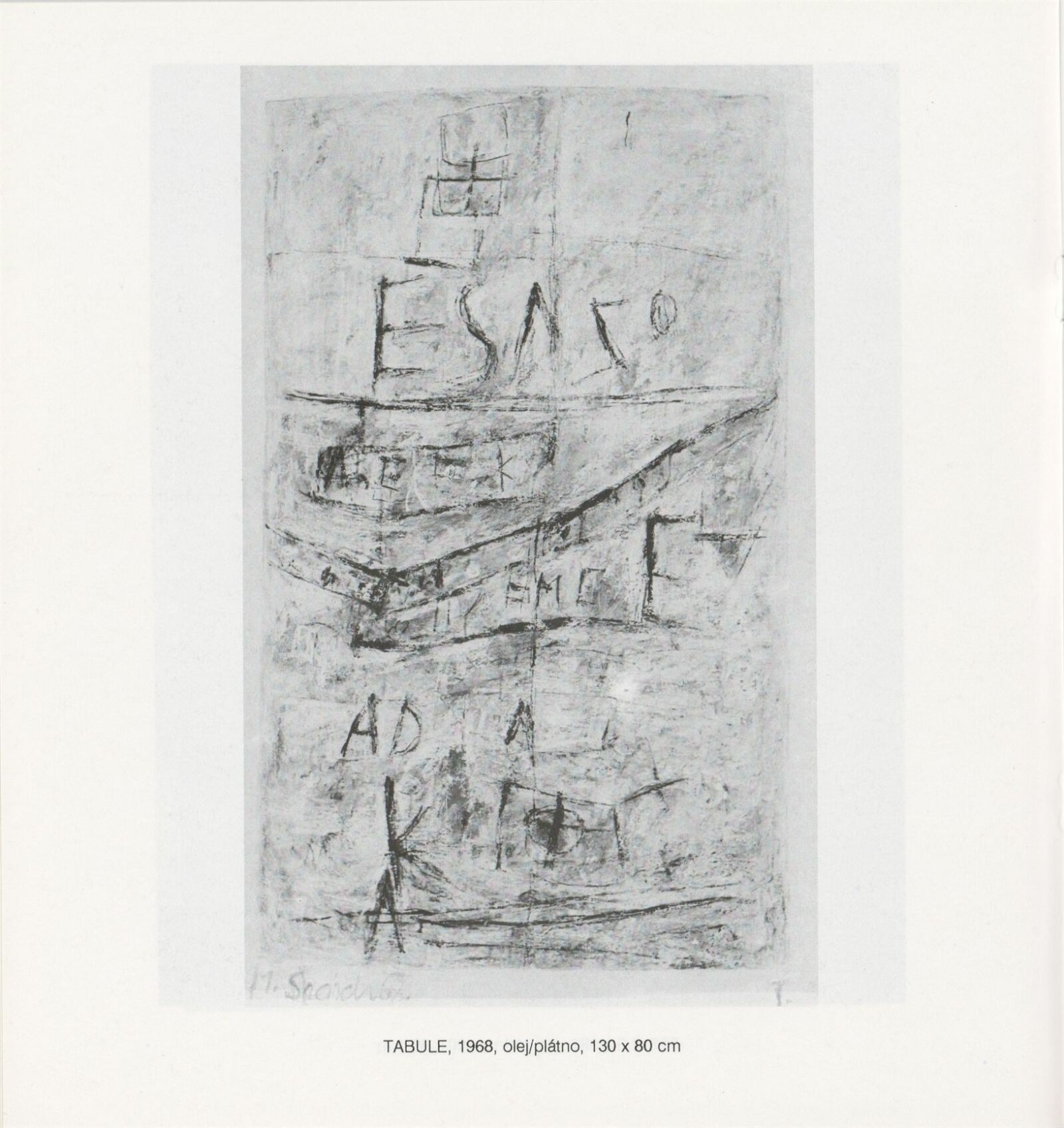 katalog, strojopis a podklady pro pozvánku a katalog, seznam vystavených děl, pojistný seznam, rospiz umístění děl ve výstavních prostorách, provozní korespondence, recenze v tisku, katalog (M. Š., Obrazy a Olbram Zoubek, Sochy, 1989, Praha)