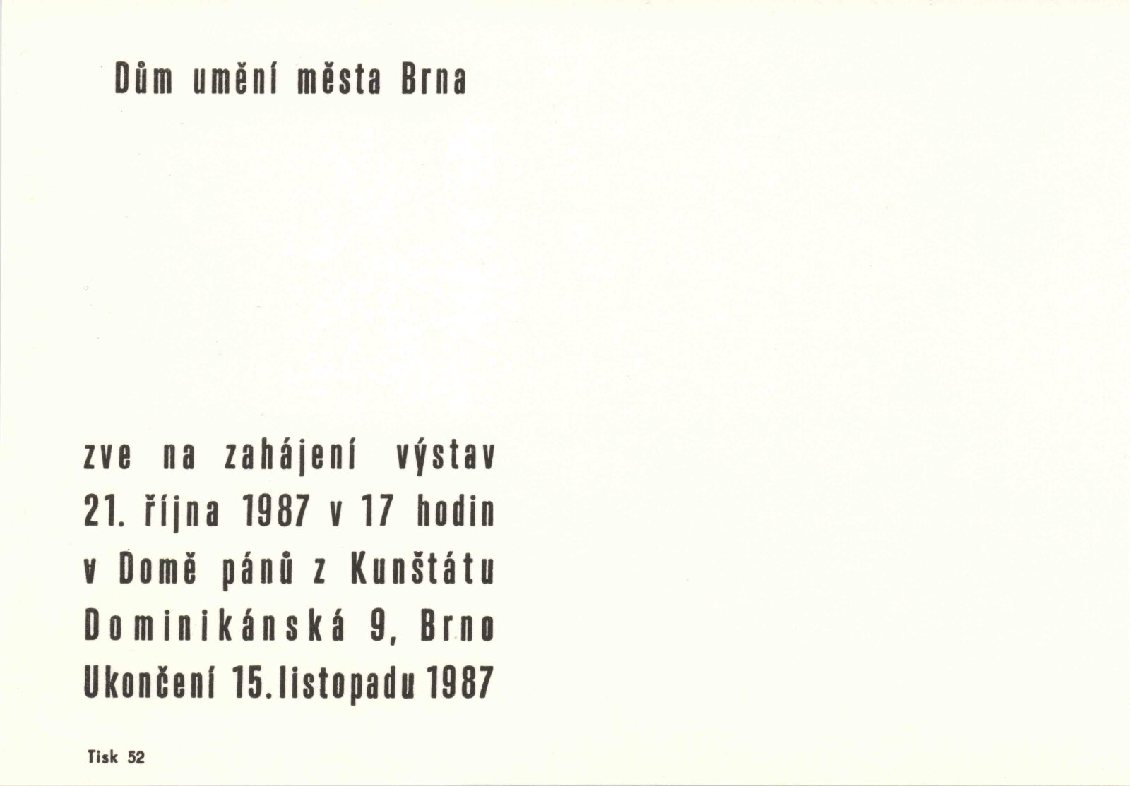 pozvánka, katalog, strojopis, fotografie výstavy, provozní korespondence, žádost a potvrzení o konání výstavy
