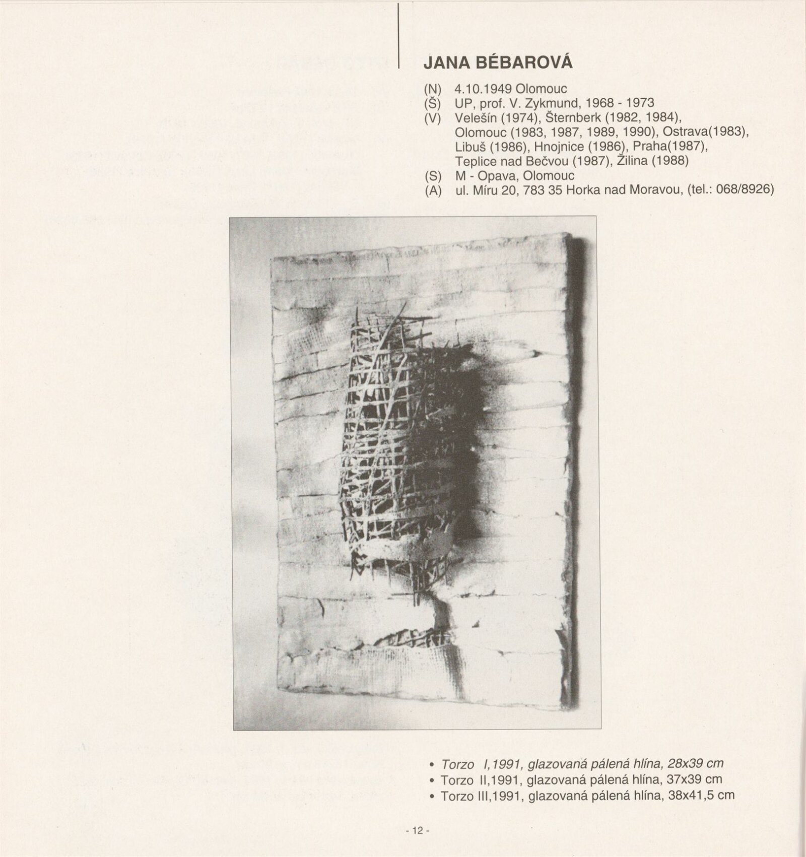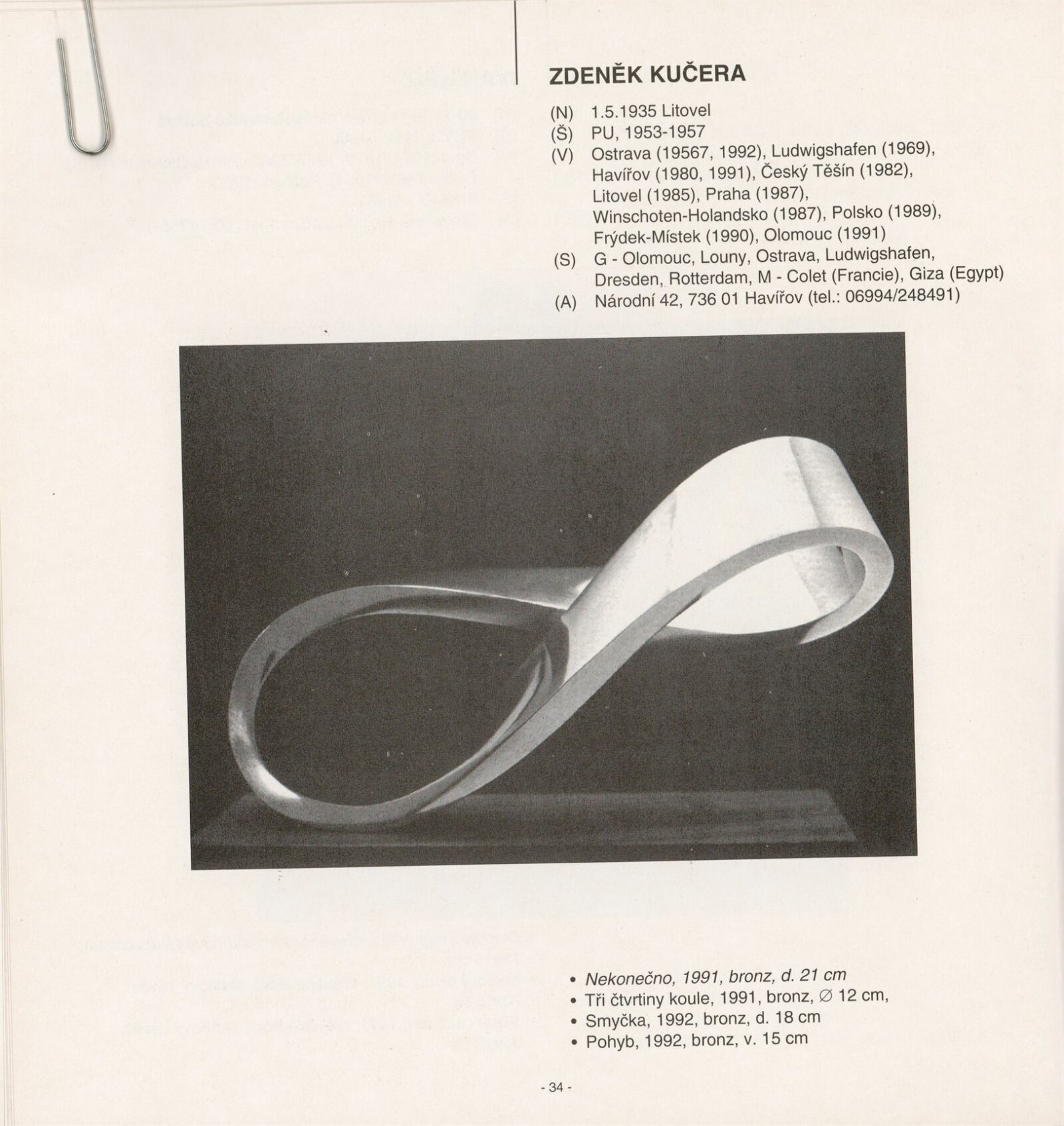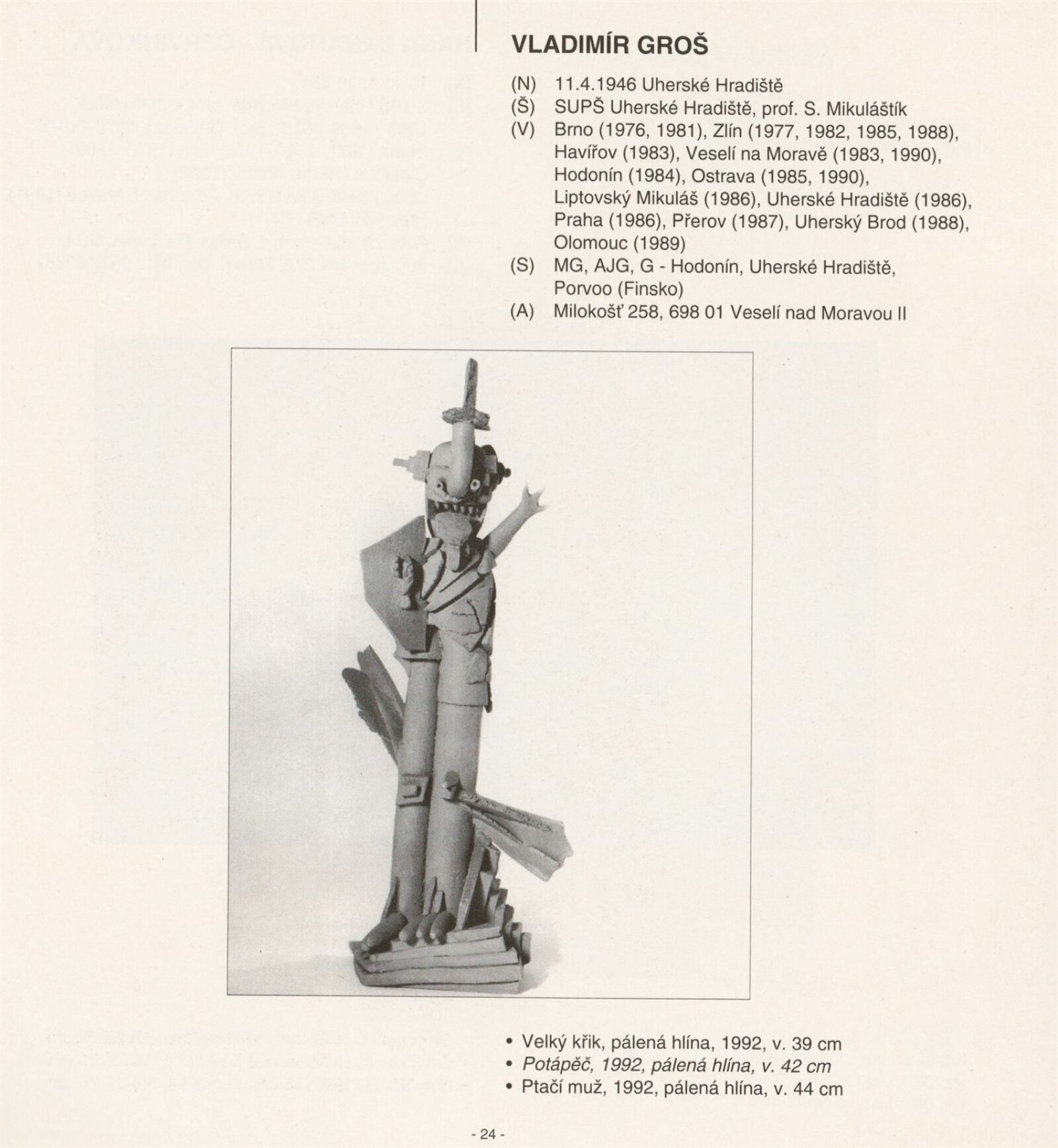 Možnosti drobné plastiky. Z moravské tvorby 1988–1992: Dům umění města Brna, 2. 7. – 30. 8. 1992 / Text: Jiřina Hockeová. – Brno: DUmB, 1992. – 59 s., obr., životní data vystavujících, DU 928. – MG