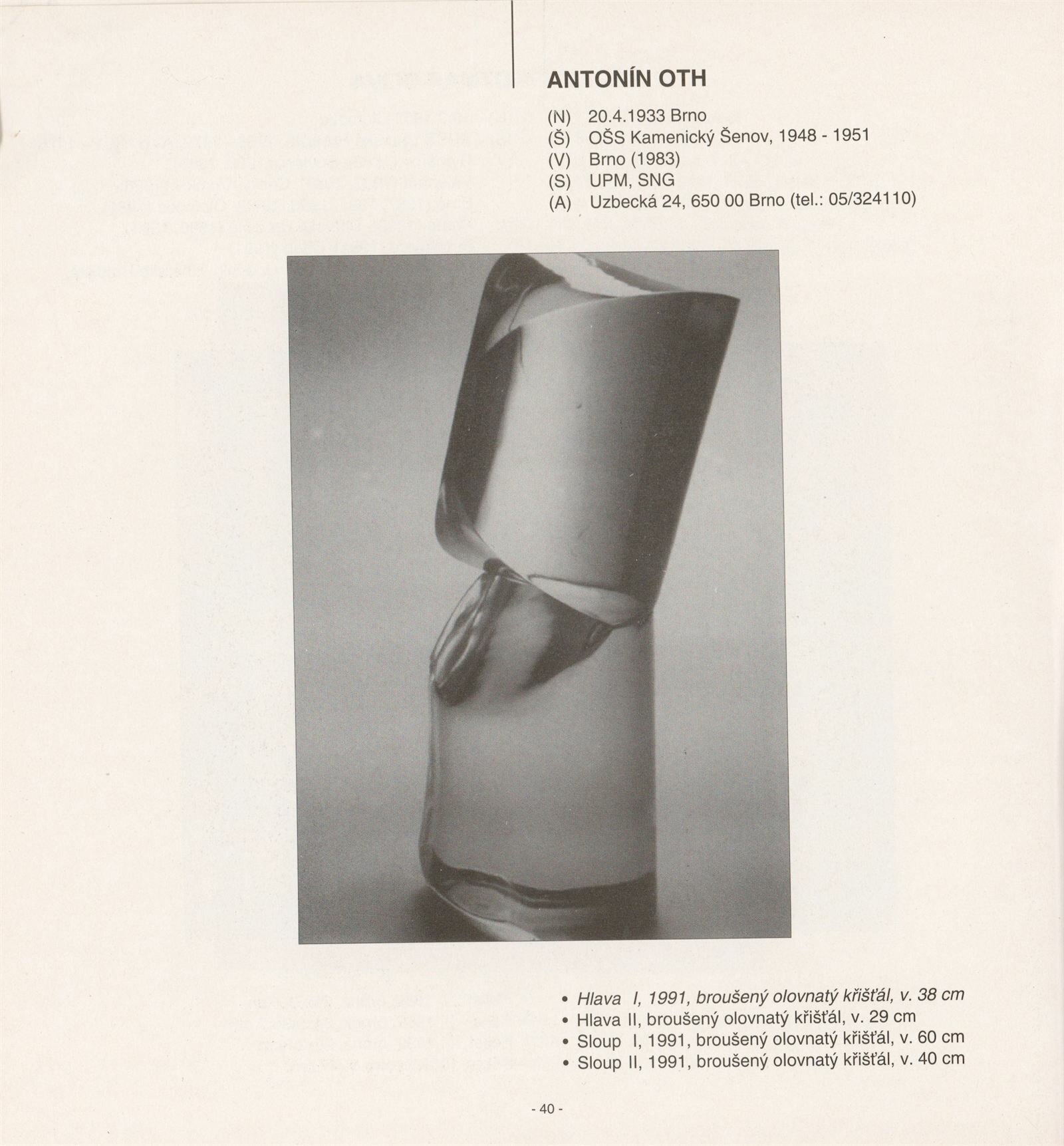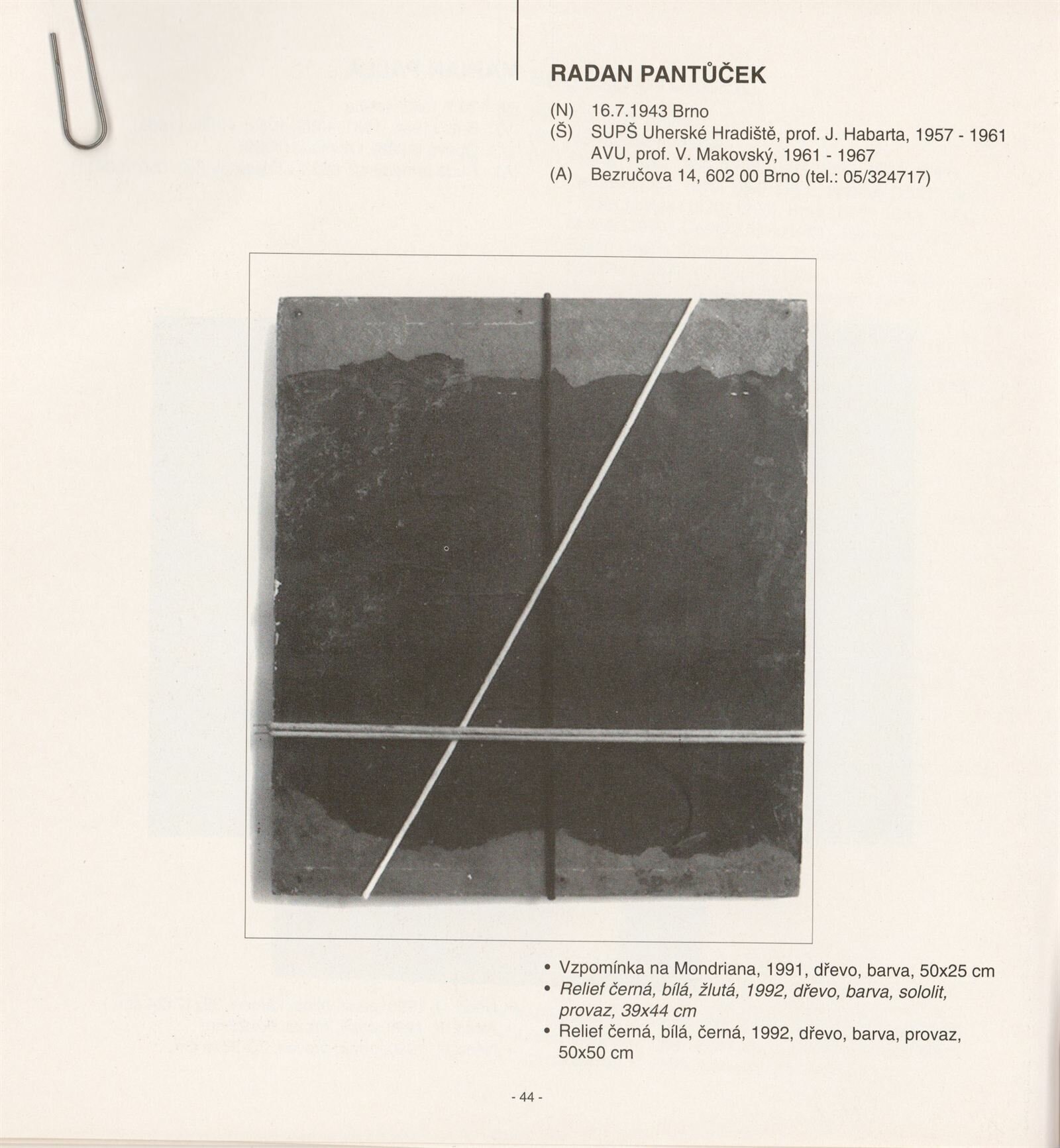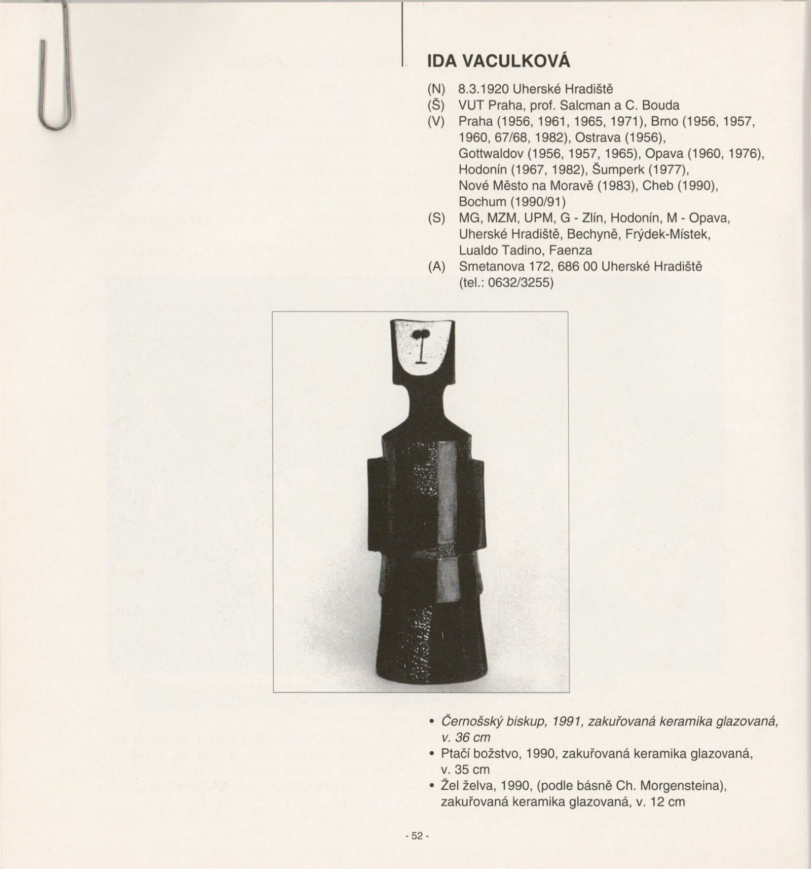 Možnosti drobné plastiky. Z moravské tvorby 1988–1992: Dům umění města Brna, 2. 7. – 30. 8. 1992 / Text: Jiřina Hockeová. – Brno: DUmB, 1992. – 59 s., obr., životní data vystavujících, DU 928. – MG