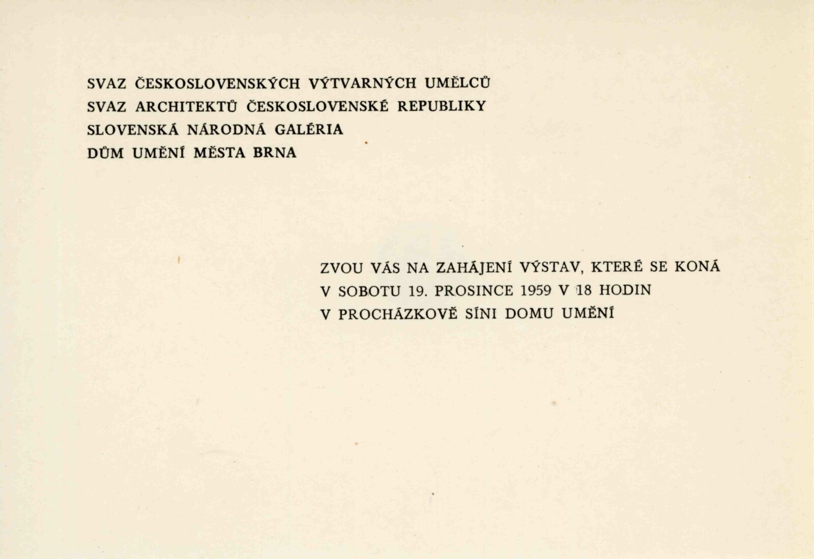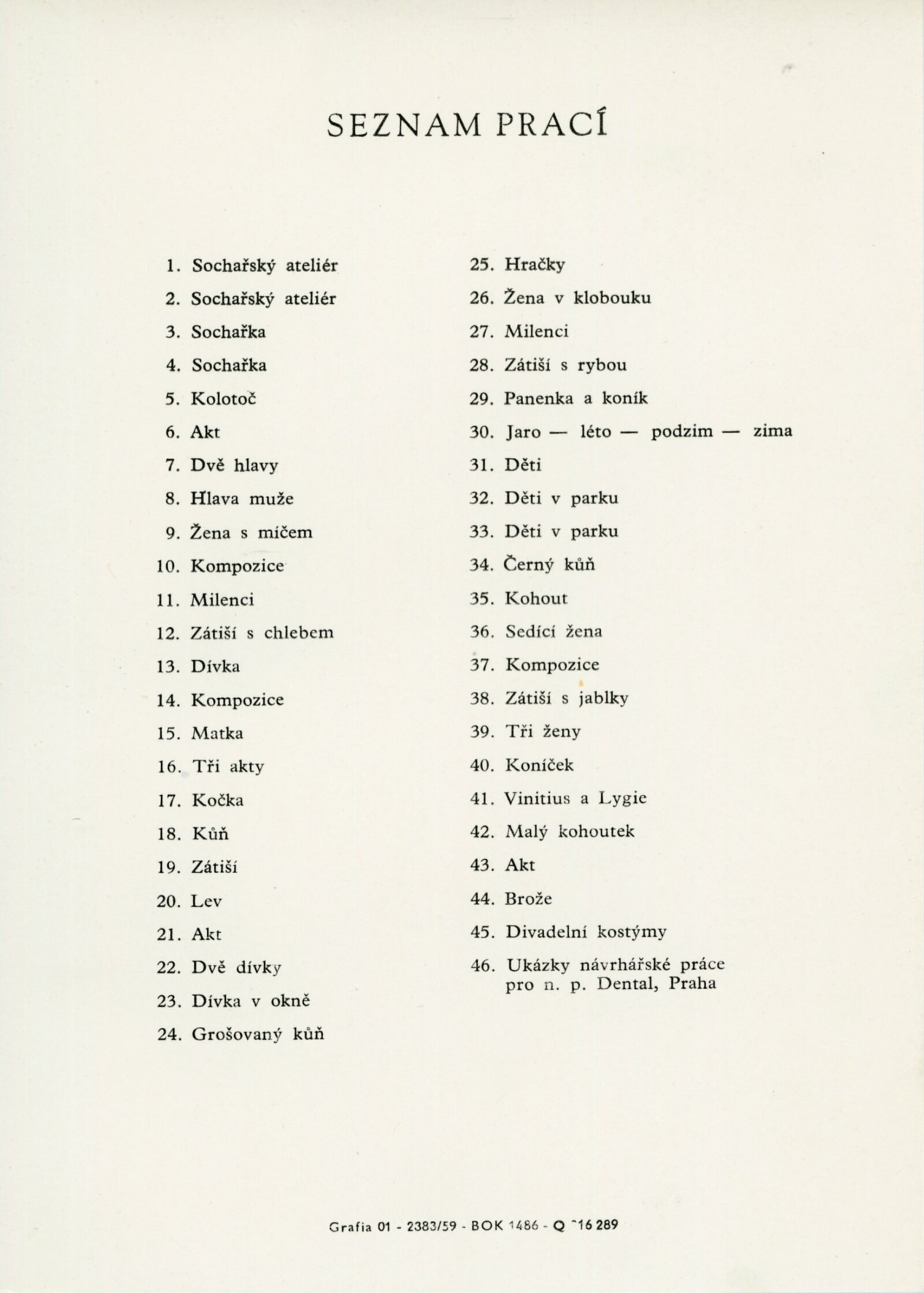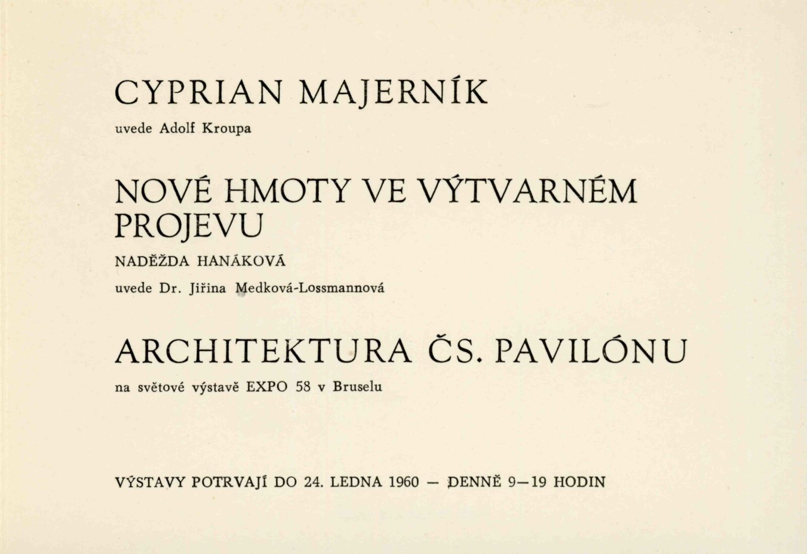 pozvánka, katalog, strojopis textu katalogu, seznam prací, žádost o výstavu, recenze v tisku, text ve Světu v obrazech (ll, 1960)