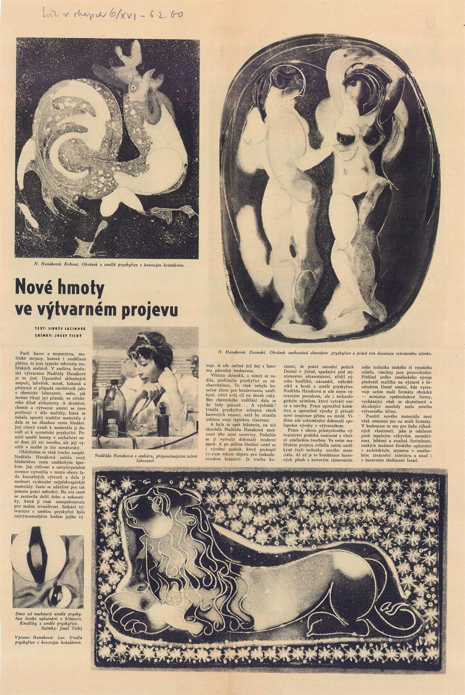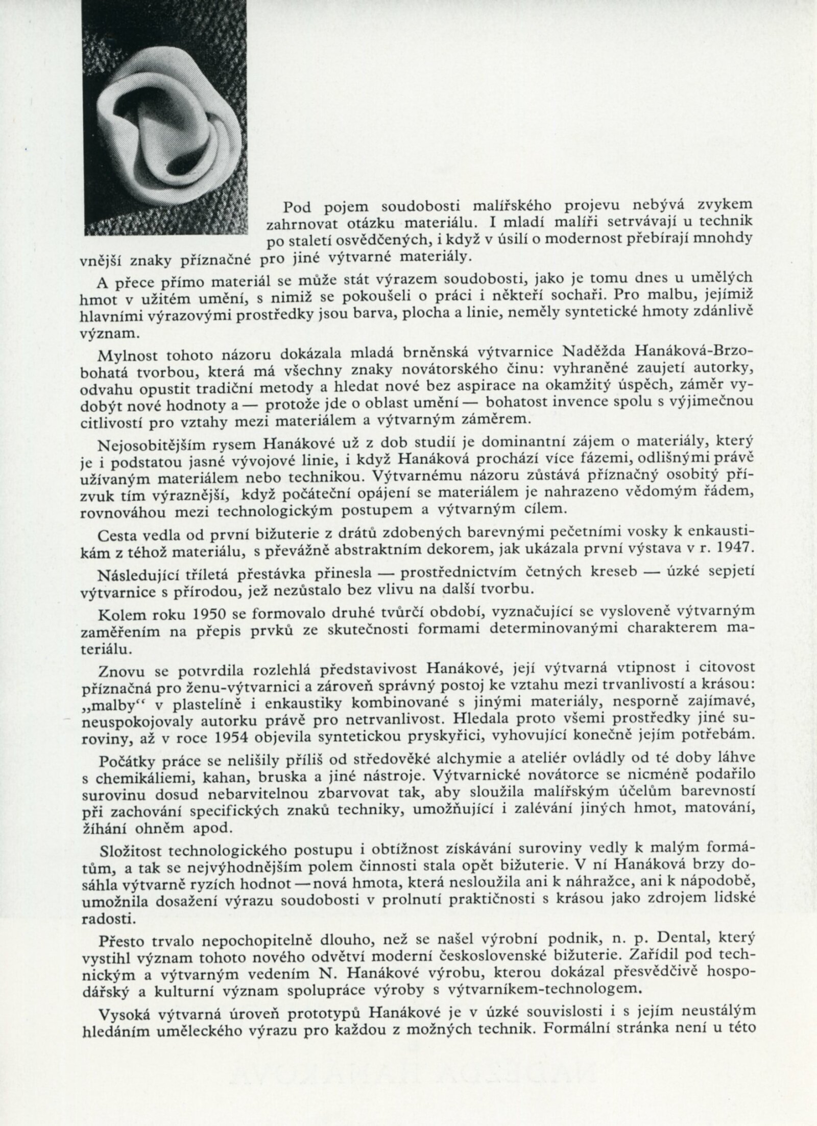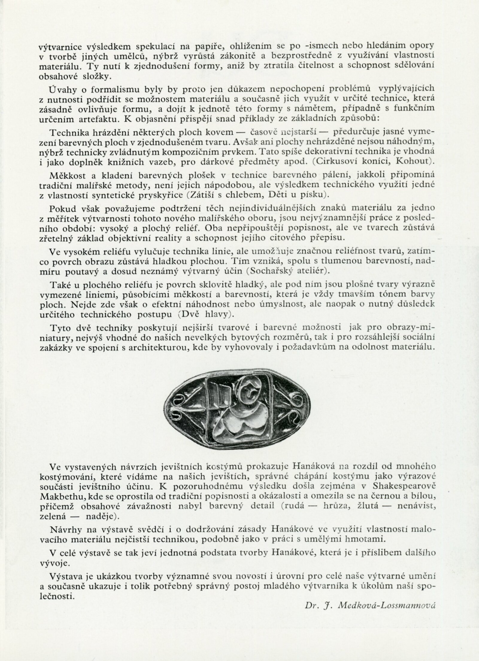 Naděžda Hanáková. Nové hmoty ve výtvarném projevu: Dům umění, Malá galerie, 19. 12. 1959 – 24. 1. 1960 / Text: Jiřina Medková-Lossmannová. – Brno: DUmB, 1959. – 4 s., obr., seznam prací 1 s., DU 357. – MZK; MG; MMB