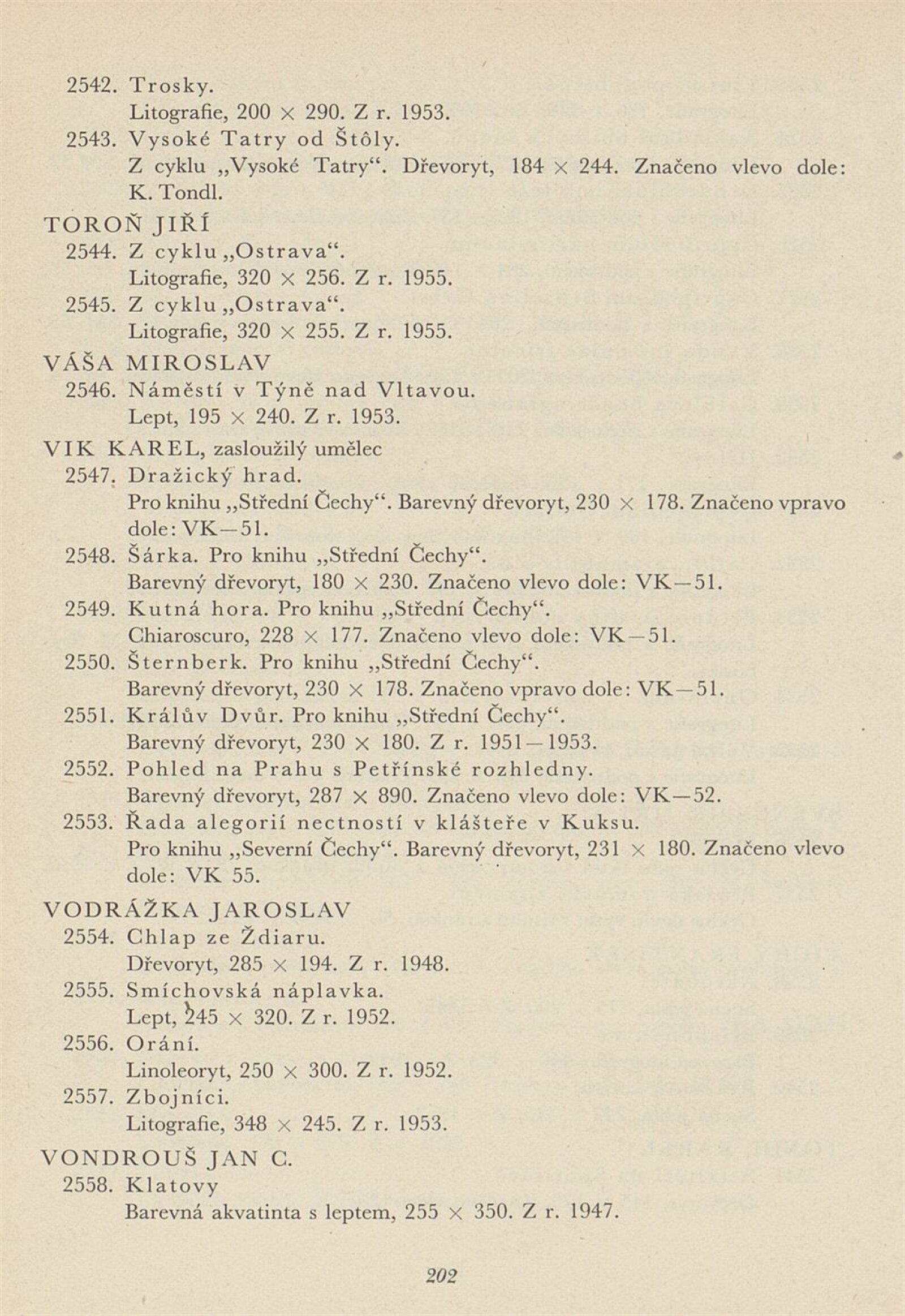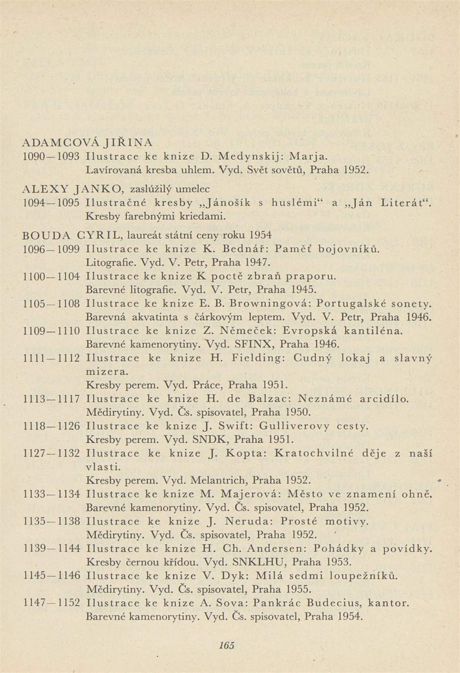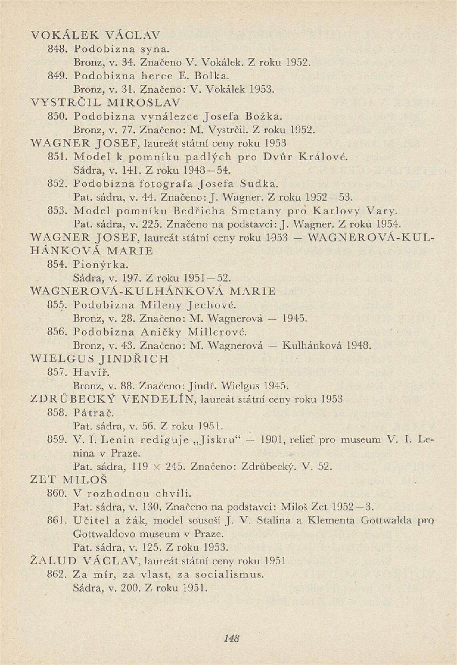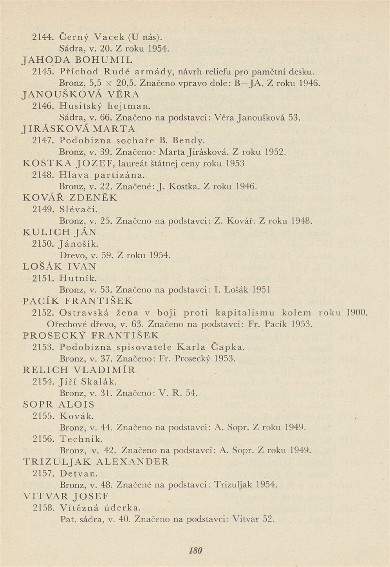 Naše současné malířství: Dům umění, 11. 3. – 8. 4. 1956 / Součást expozice pražské výstavy. 10 let Československé lidově demokratické republiky ve výtvarném umění: Sbírka moderního umění Národní galerie, Jízdárna pražského hradu, Slovanský ostrov, Grafická sbírka Národní galerie a Mánes, prosinec 1955 – únor 1956 / Texty: Václav Formánek, Jiří Kotalík, Jan Tomeš, Vladimír Diviš, Karol Vaculík. – Praha: ÚSČSVU, 1955. – 25 s., 85 s. obr. příl., DU 243. – MZK
