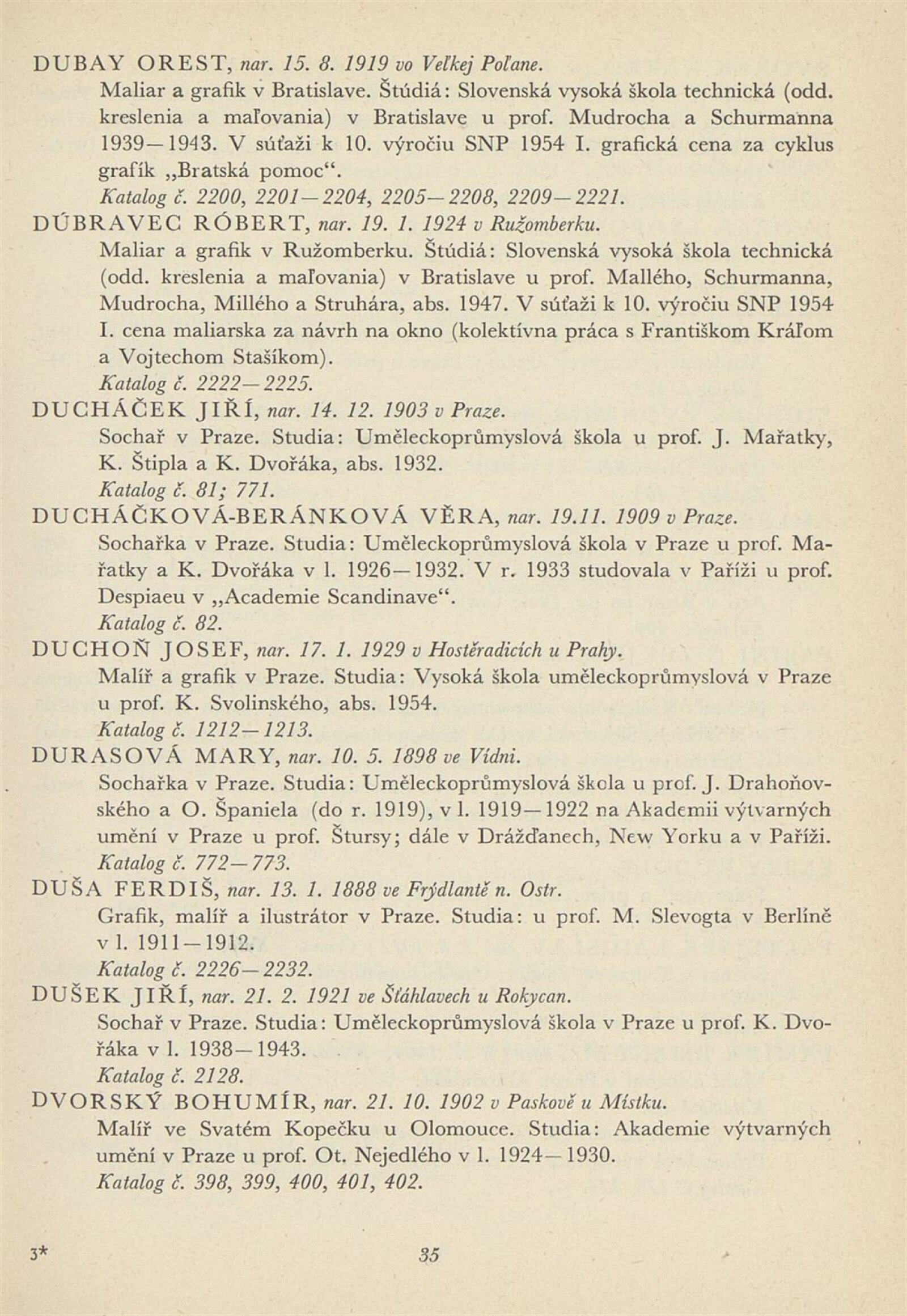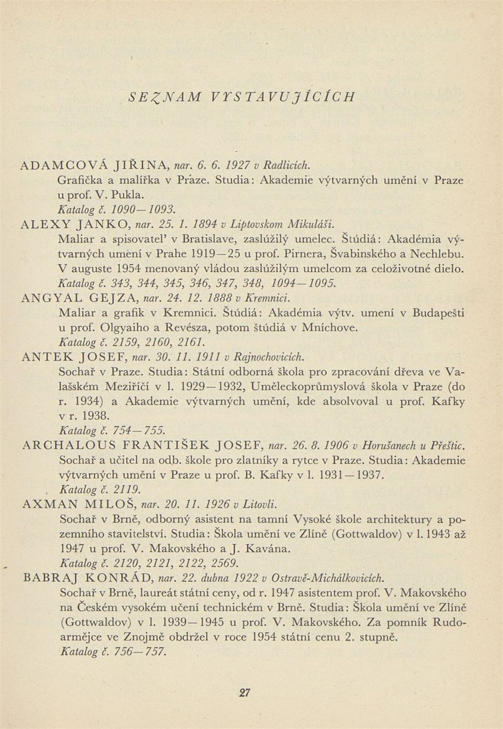Janko Alexy, Július Balogh, Václav Bartovský, Jan Bauch, Miloš Alexander Bazovský, Štefan Bednár, Vincenc Beneš, Martin Benka, Jozef Bendík, Jan Blažek, Oldřich Blažíček, Ľudo Bránsky, Miroslav Brotánek, Josef Brož, Július Bukovinský, Dezider Castiglione, Oldřich Cihelka, Ladislav Čemický, František Čihák, Bohuš Čížek, Andrej Doboš, Josef Drha, Bohumír Dvorský, Zvonimír Eichler, František Emler, Josef Fabini, Emil Filla, Alois Fišárek, Ľudovít Fulla, František Gross, Jaroslav Gruss, Ladislav Guderna, Ján Hála, Josef Hapka, Ferdinand Hložník, Vincent Hložník, Bedrich Hoffstädter, Karel Hofman, Karel Holan, Václav Holub, Miloslav Holý, Jiří Horník, Vladimír Hroch, Jiří Hruška, Jaroslav Hudec, Viliam Chmel, Josef Jambor, Ludmila Janovská, František Jelínek, Božena Jelínková-Jirásková, Stanislav Ježek, František Jiroudek, Josef Kadeřábek, Alojz Klimo, Jozef Kollár, Peter Konečný, Žofie Kopecká, Július Koreszka, Věra Košťálová-Steckerová, Jaroslav Kotas, Josef Kousal, Václav Koutský, Vladimír Kovář, Stanislav Krátký, Vilém Kratochvíl, Ludvík Kuba, Otakar Kubín, Oldřich Lasák, Eugen Lehotský, Josef Liesler, Cyprián Majerník, Jozef Majkut, Jaroslav Malínský, Gustáv Mallý, Jiří Mandel, Peter Matejka, Bohumil Matějíček, Mária Medvecká, Jan Mehl, Julie Mezerová, Dezider Milly, Alois Moravec, Ján Mudroch, Josef Multrus, Lumír Nedvídek, Vratislav Nechleba, Otakar Nejedlý, Július Nemčík, Václav Vojtěch Novák, Vilém Nowak, Milan Obrátil, Oldřich Oplt, Jaroslav Otčenášek, Arnošt Paderlík, Josef Peca, Jan B. Plaček, Jaroslav Pokorný, Štefan Polkoráb, Václav Rabas, Vlastimil Rada, František Ronovský, Martin Salcman, Václav Sedláček, Vojtěch Sedláček, Jaromír Schoř, Max Schurmann, Martin Sladký, Jan Slavíček, Jan Smetana, Karel Souček, Edita Spannerová, Vladimír Stříbrný, František Studený, Anna Suchardová-Podzemná, Vladimír Sychra, Alexander Szabó, Lev Šimák, Lumír Šindelář, Ľudovít Štrompach, Max Švabinský, Vojtěch Tittelbach, Jiří Toroň, Adolf Träger, Václav Turek, Martin Tvrdoň, Vladimír Vestenický, Marie Vořechová-Vejvodová, Vilma Vrbová-Kotrbová, Richard Wiesner, Jarmila Zábranská, Adolf Zábranský, František Zikmund, Jan Zrzavý, Rudolf Žebrok, Ján Želibský, Vincenc Živný