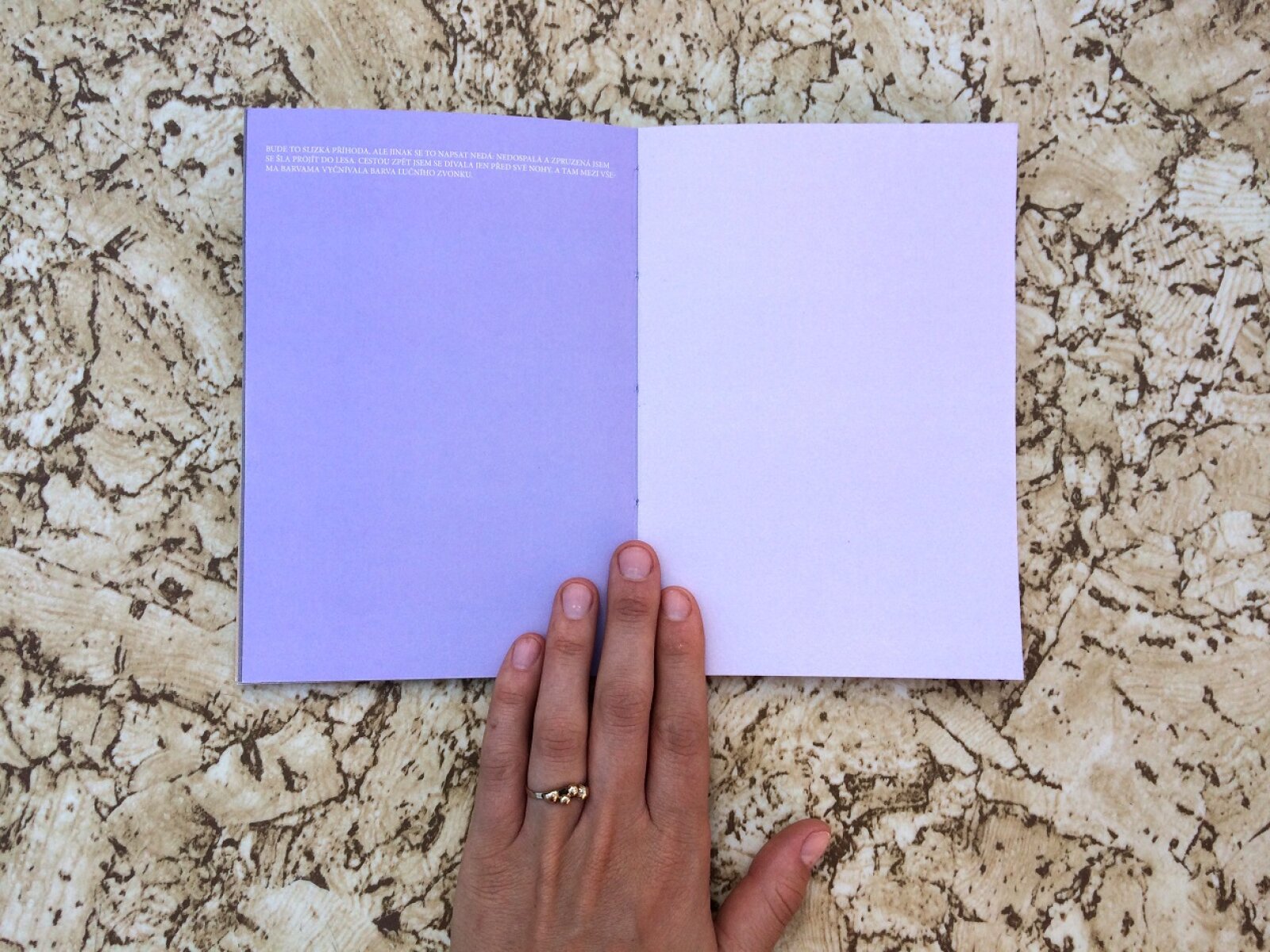 The motif of absence is further developed in the book To Weigh in One’s Palm the Weight of a Lash, where the white page becomes a testimony to its place of occurrence. The white sheet of paper, symbolically perceived as blank, becomes an abstraction that changes according to different environments. It is subject to the chromaticity of incident light, to our vision and conceptual language. Over 60 sheets of paper deal with the dual nature of the appearance of paper in different environments. The description method is subjective – using one’s vision, a written record of such impression, and objective digital measurement.
