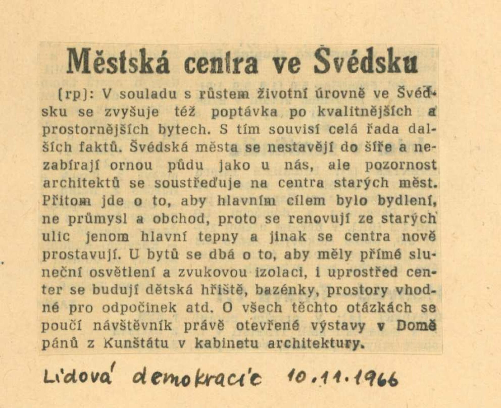 fotografie z výstavy, potvrzení o uspořádání výstavy (svaz architektů ČSSR), recenze v tisku