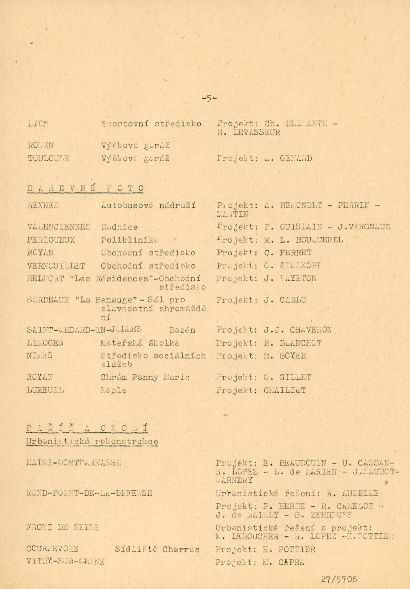 pozvánka, pozvánka na přednášku (H. Jacques Le Meme), katalog, strojopis textu ke katalogu, návrh instalace výstavy (schéma), seznam prací, fotografie děl a výstavy, korespondence (Ministerstvo výstavby, Ministerstvo stavebnictví, kulturní atašé francouzské ambasády v Praze, provozní korespondence), potvrzení o předání výstavy, zprávy a recenze v tisku