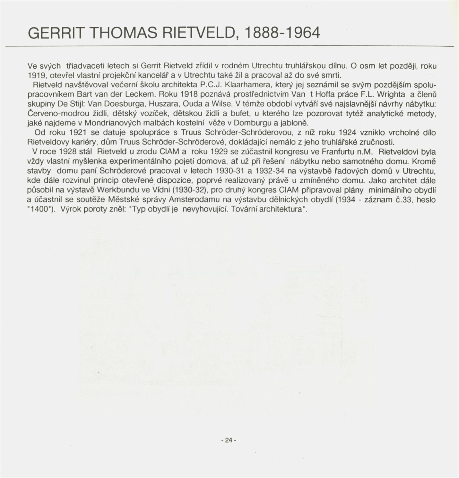 Nové hnutí v Nizozemí 1924–1936: Kabinet architektury, Galerie Stará radnice 9. – 23. 4. 1992 / Text Jan Molema. - Brno: Obec architektů, - 54 s., obr GSR 123; MZK