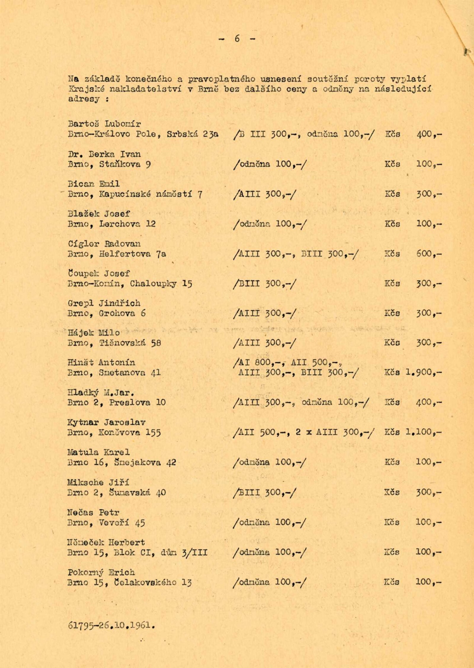 Antonín Hinšt, Jaroslav Kytnar, Vladimír Tausch, Emil Bican, Radovan Cígler, Jindřich Grepl, Milo Hájek, Jaroslav Hladký, Josef Tichý, Zdeněk Resner, Vladimír Skoupil, Lubomír Bartoš, Josef Čoupek, Jiří Miksche, Josef Rossi, Zdeněk Souček, Lubomír Bartoš, Klaudius Bechný, Ivan Berka, Josef Blažek, Božena Fojtová, Jaroslav Heinrich, Zdeněk Hloužek, Karel Kulatý, Mirko Lonč, Karel Matula, Jan Mráček, Petr Nečas, Herbert Němeček, Ivan Okleštěk, Erich Pokorný, Zdeněk Procházka, Jaroslav Ryšánek, Soňa Skoupilová, Stanislav Skoupý, Miloslav Slaměník, Vlastimil Slavíček, Zdeněk Souček, Josef Střelec, Karel Šimíček, Vítězslav Špatný, Alois Šťastný, Vladimír Vrbík, Vojta Metoděj