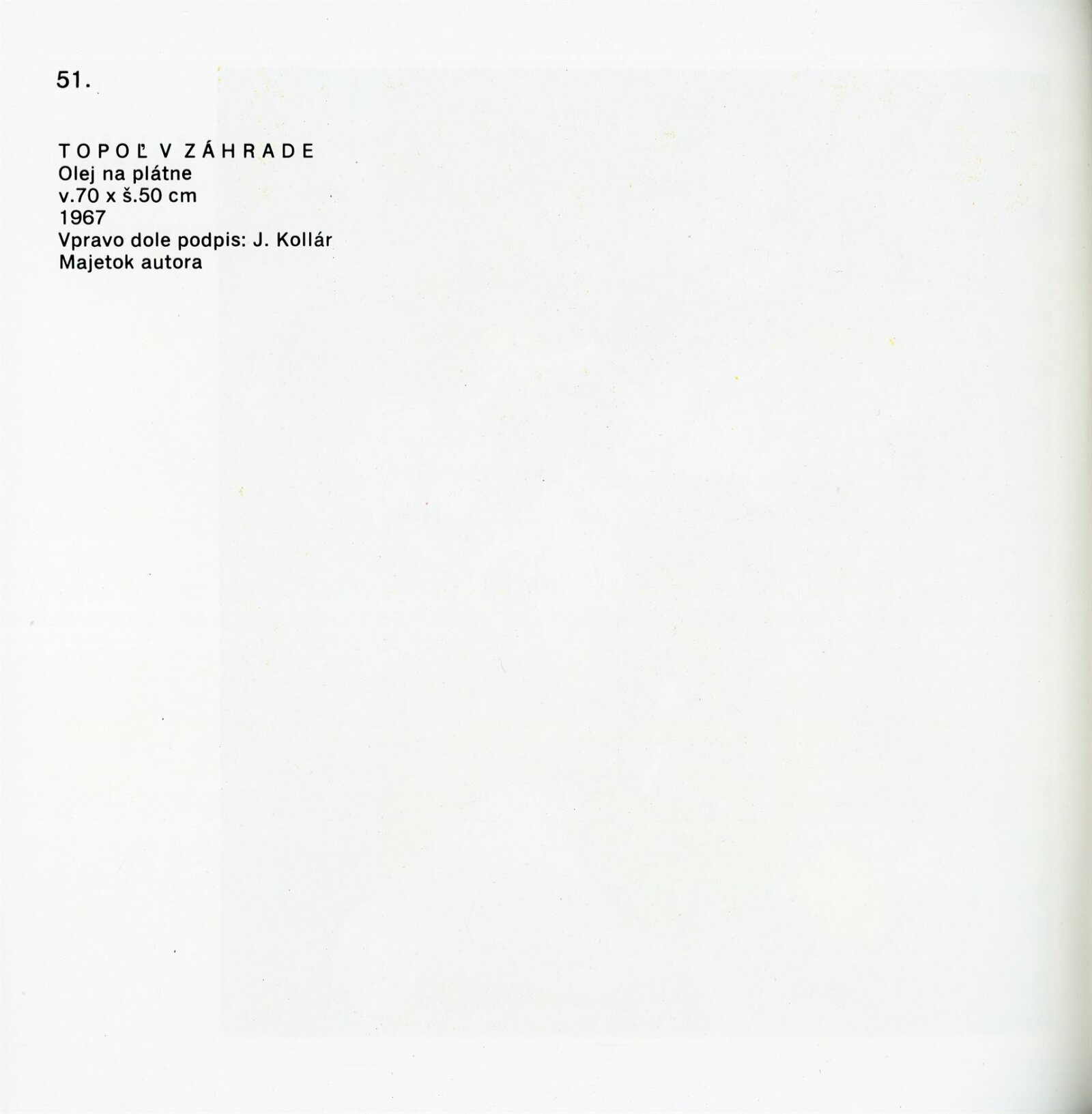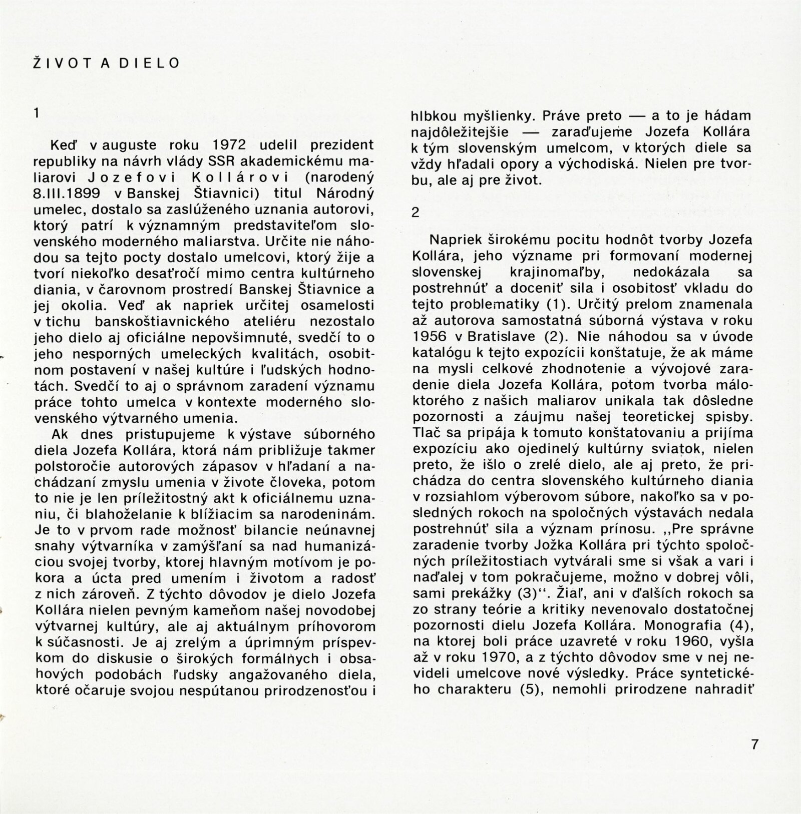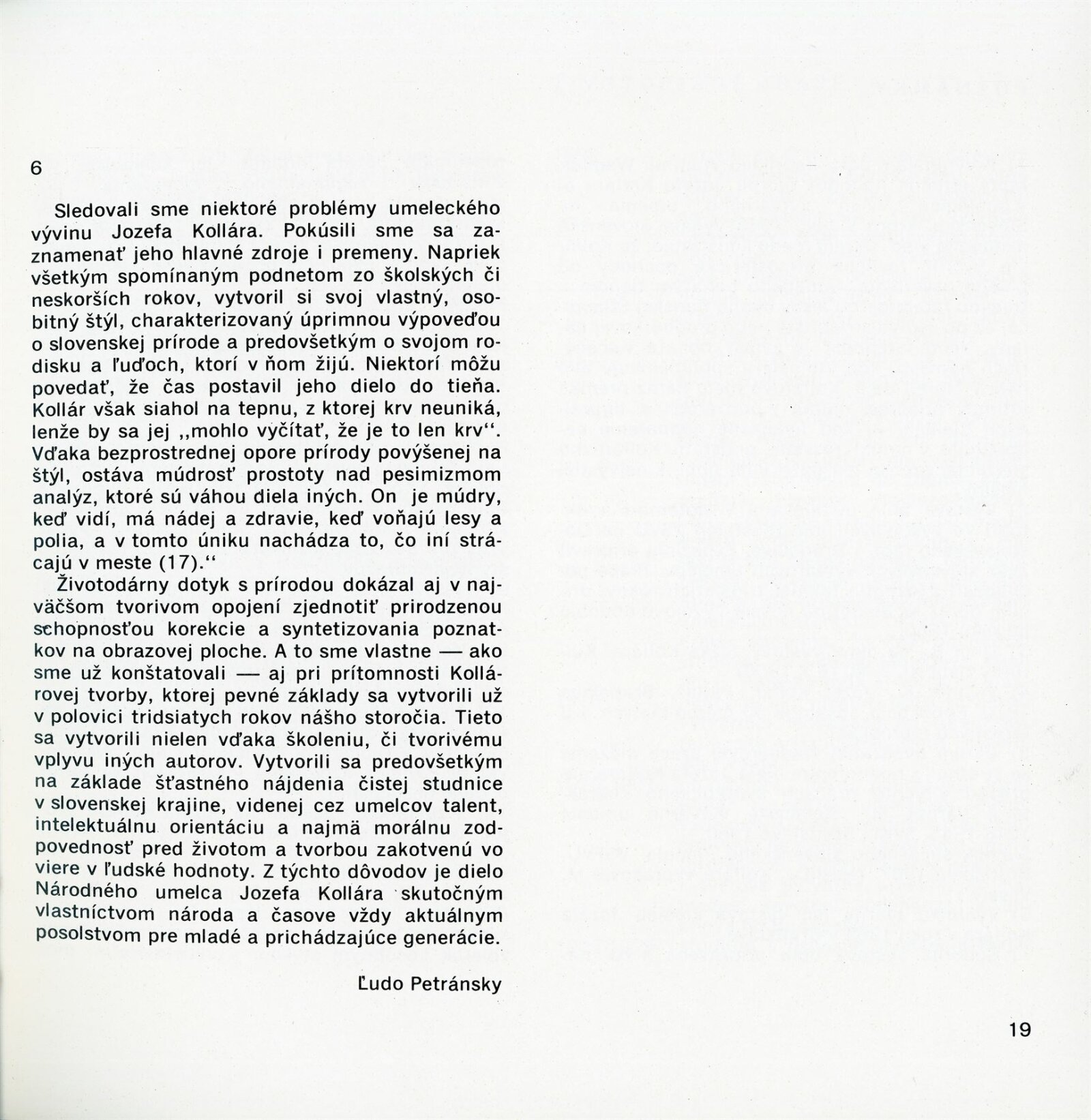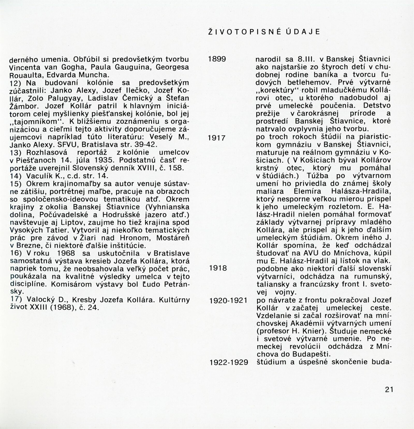 Obrazy národního umělce Jozefa Kollára: Dům umění / Dům pánů z Kunštátu, 22. 4. – 3. 6. 1973 / Převzatý katalog. Jozef Kollár. Súborné dielo: Oblastná galéria Banská Bystrica, únor–březen 1973 / Text Ľudo Petránsky. – Banská Bystrica: Oblastná galéria, 1973. – 32 s., 6 l., obr., 118 s. obr. příl., životní data, výstavy, bibliografie, DPK 537