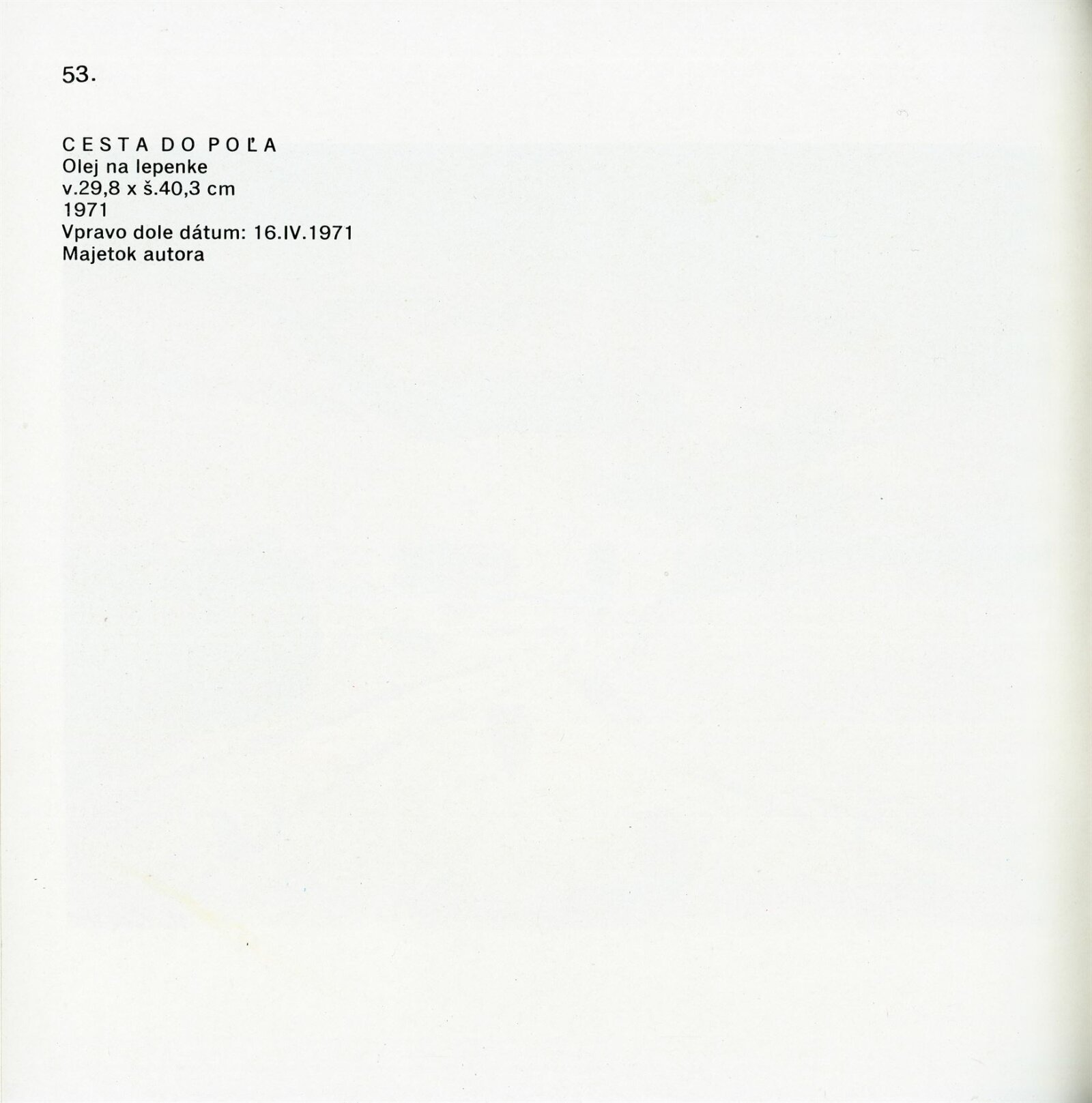pozvánka, katalog převzaté výstavy (OG Banská Bystrica), seznam obrazů, tisková zpráva, provozní korespondence (s Oblastní galerií Banská Bystrica), revers, žádost o povolení výstavy, recenze v tisku
