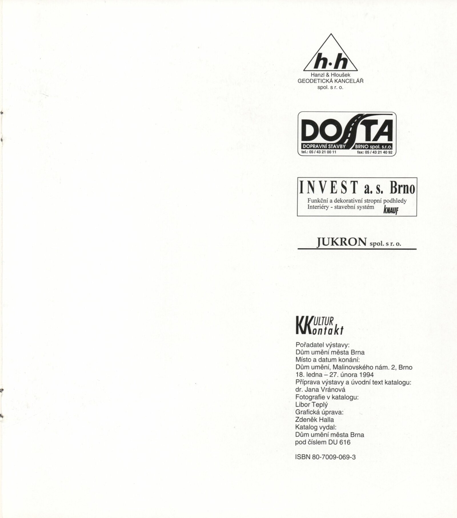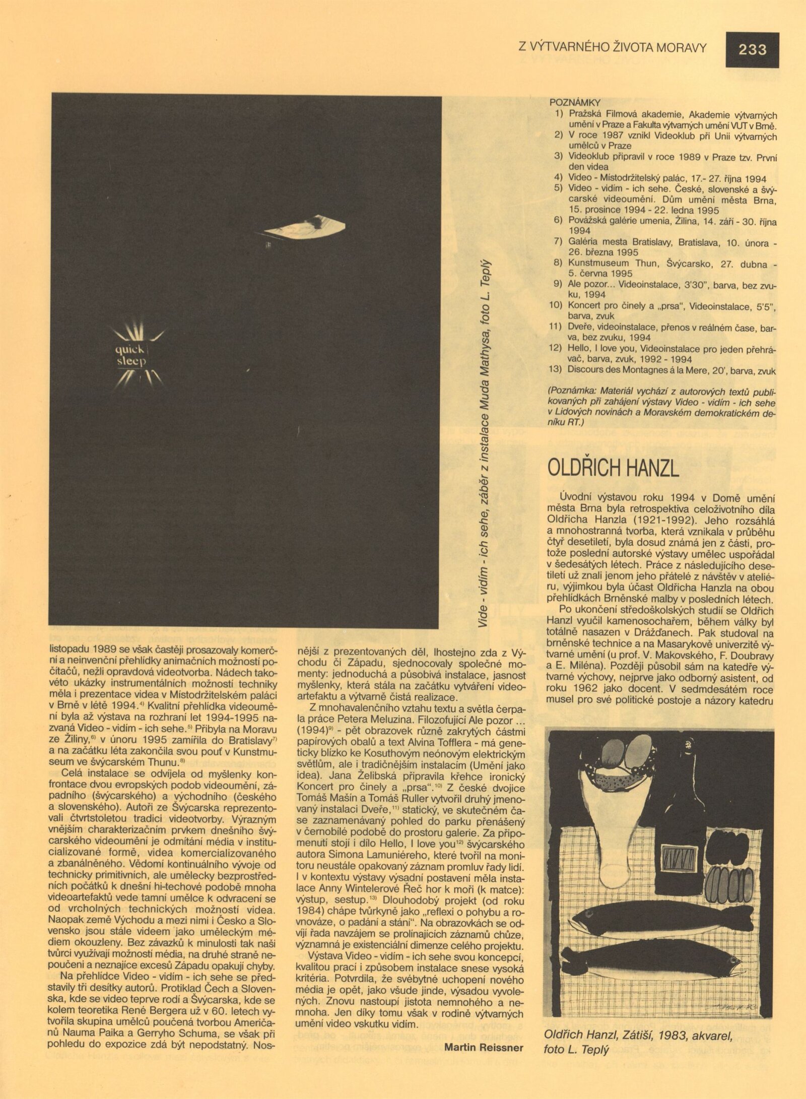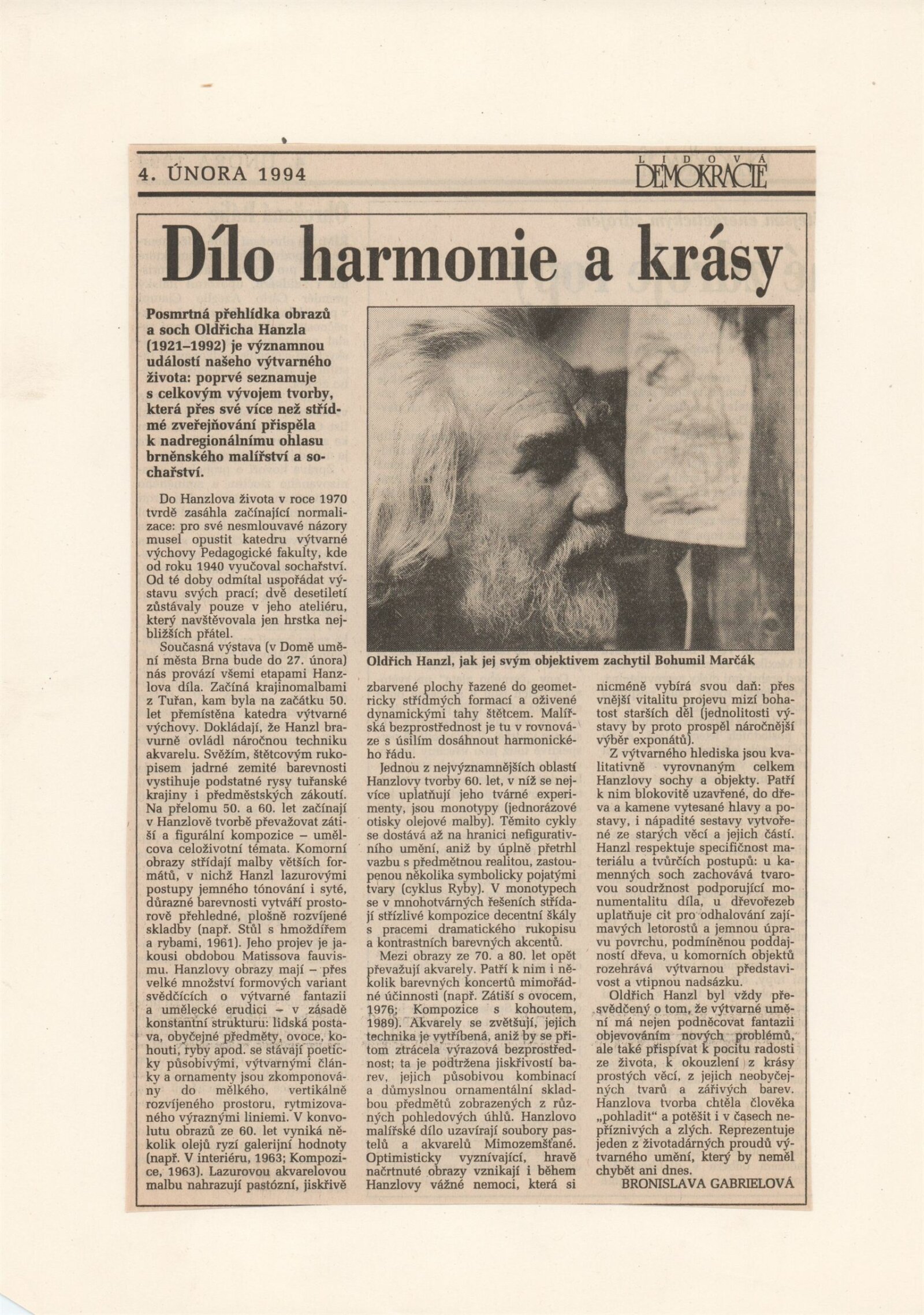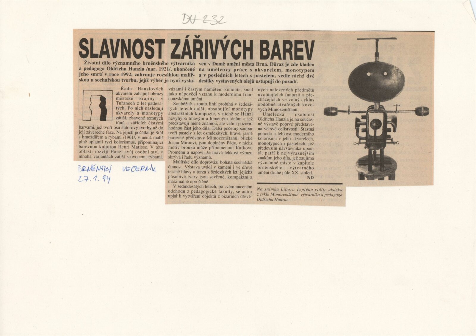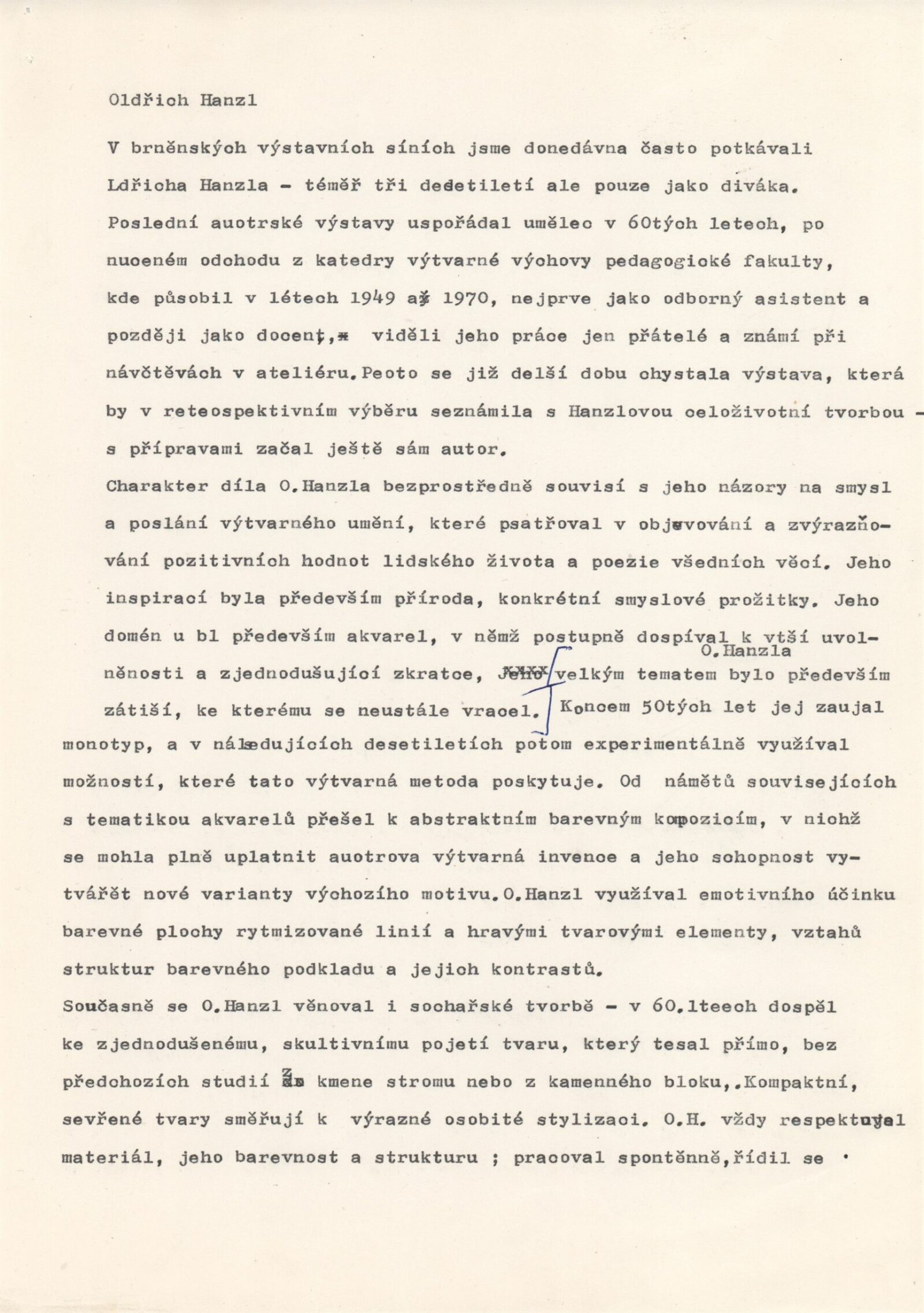 Oldřich Hanzl. Výběr z díla: Dům umění města Brna 18. 1. – 27. 2. 1994 / Text Jana Vránová. - Brno: DUmB, - [12] s., obr. Životopis, výstavy, zastoupení ve sbírkách, ceny, bibliografie DU 961; MZK