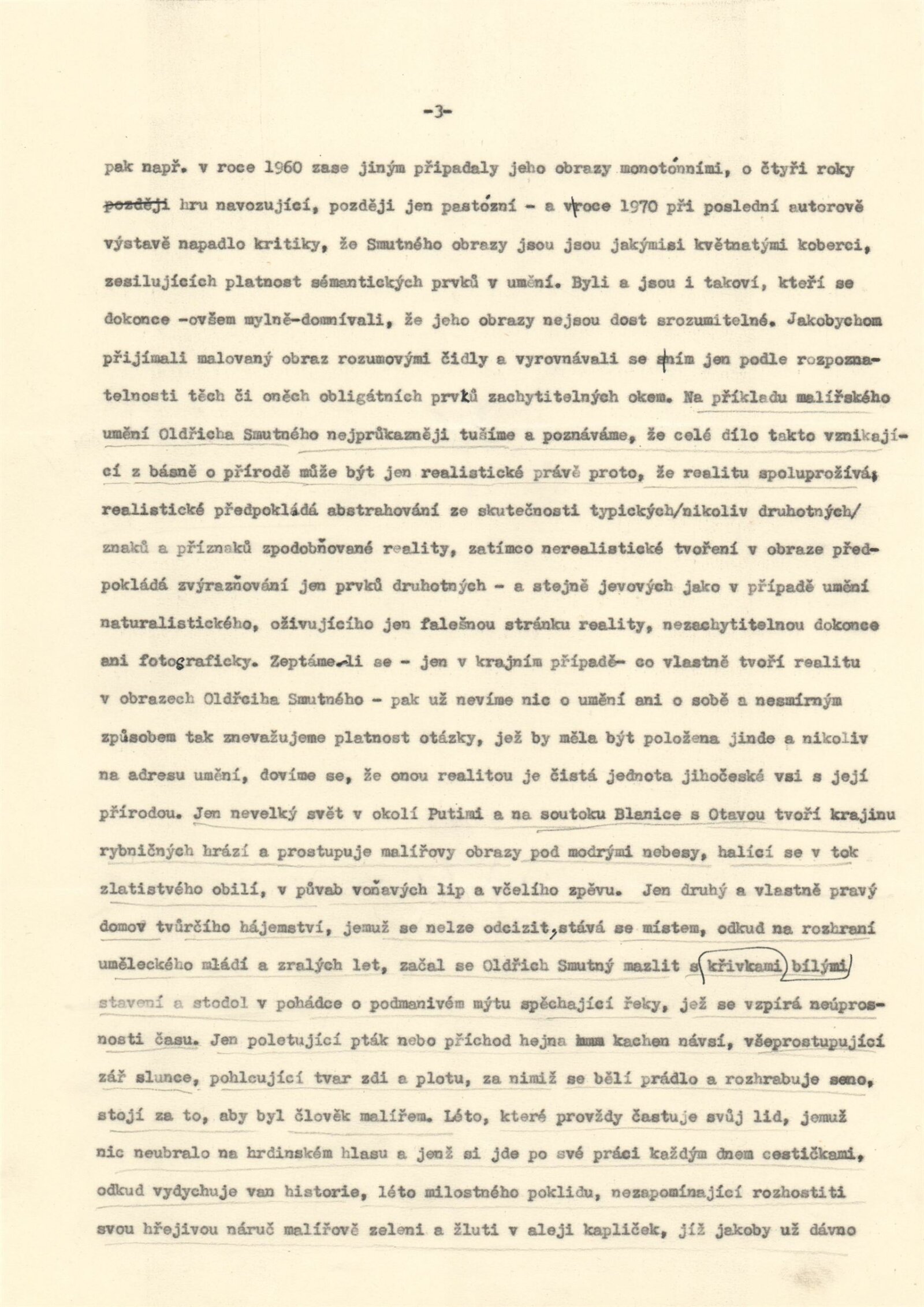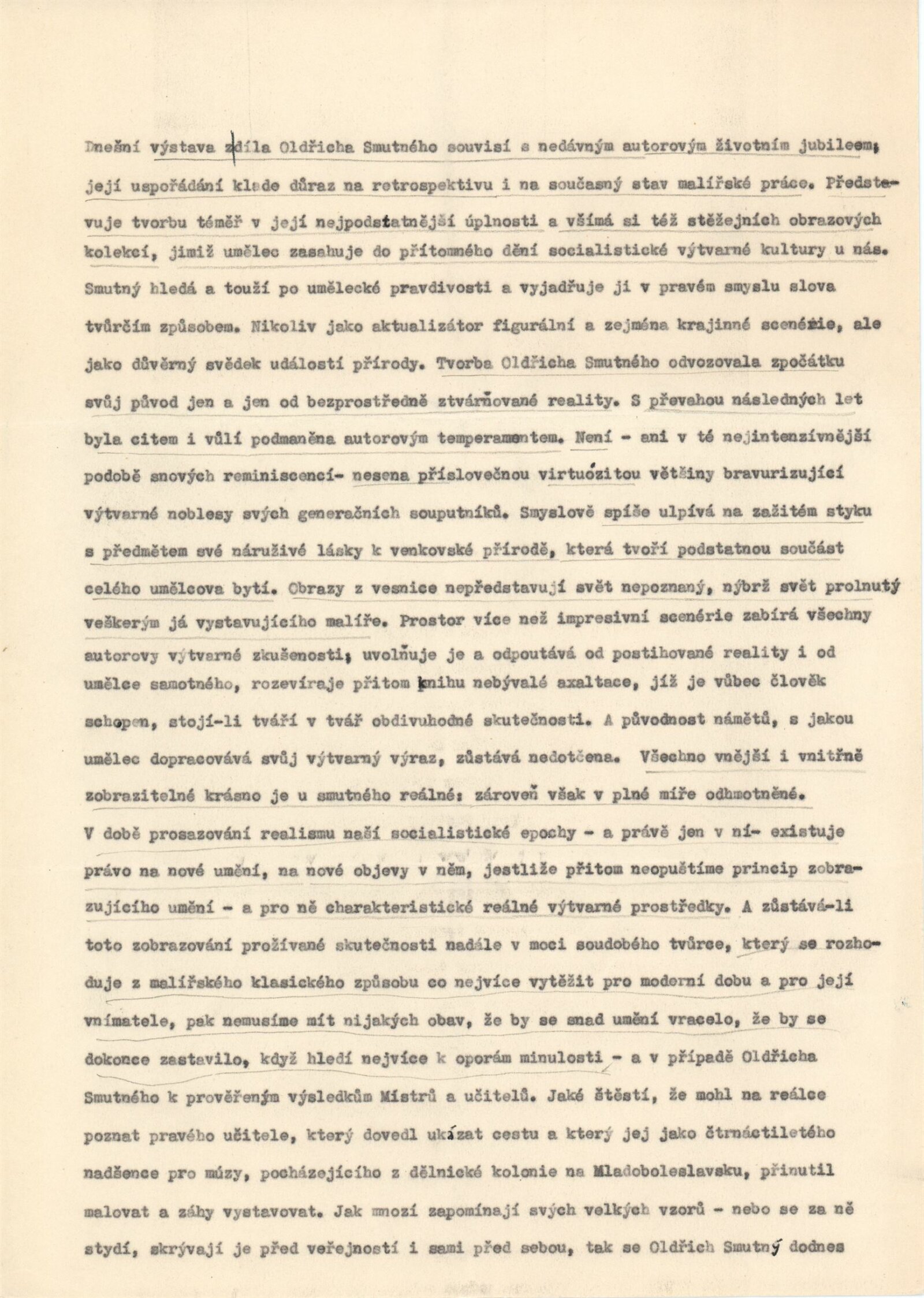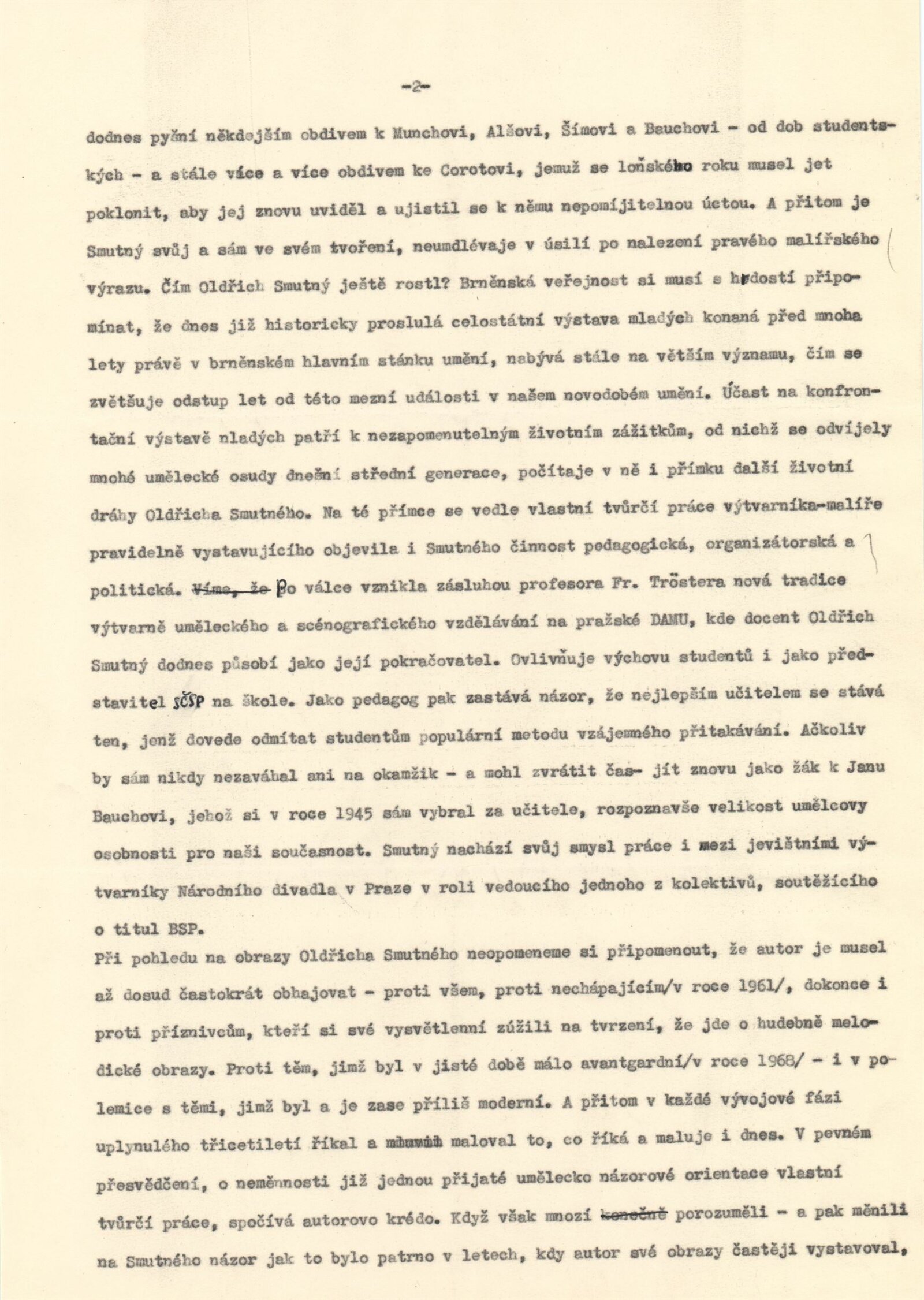 Oldřich Smutný. Vývoj díla: Dům umění / Dům pánů z Kunštátu, 25. 4. – 23. 5. 1976 / Texty: Miroslav Kudrna a autor. – Brno: DUmB, 1976. – 39 s., obr., portrét, životní data, DPK 629. – MZK; MG; MMB