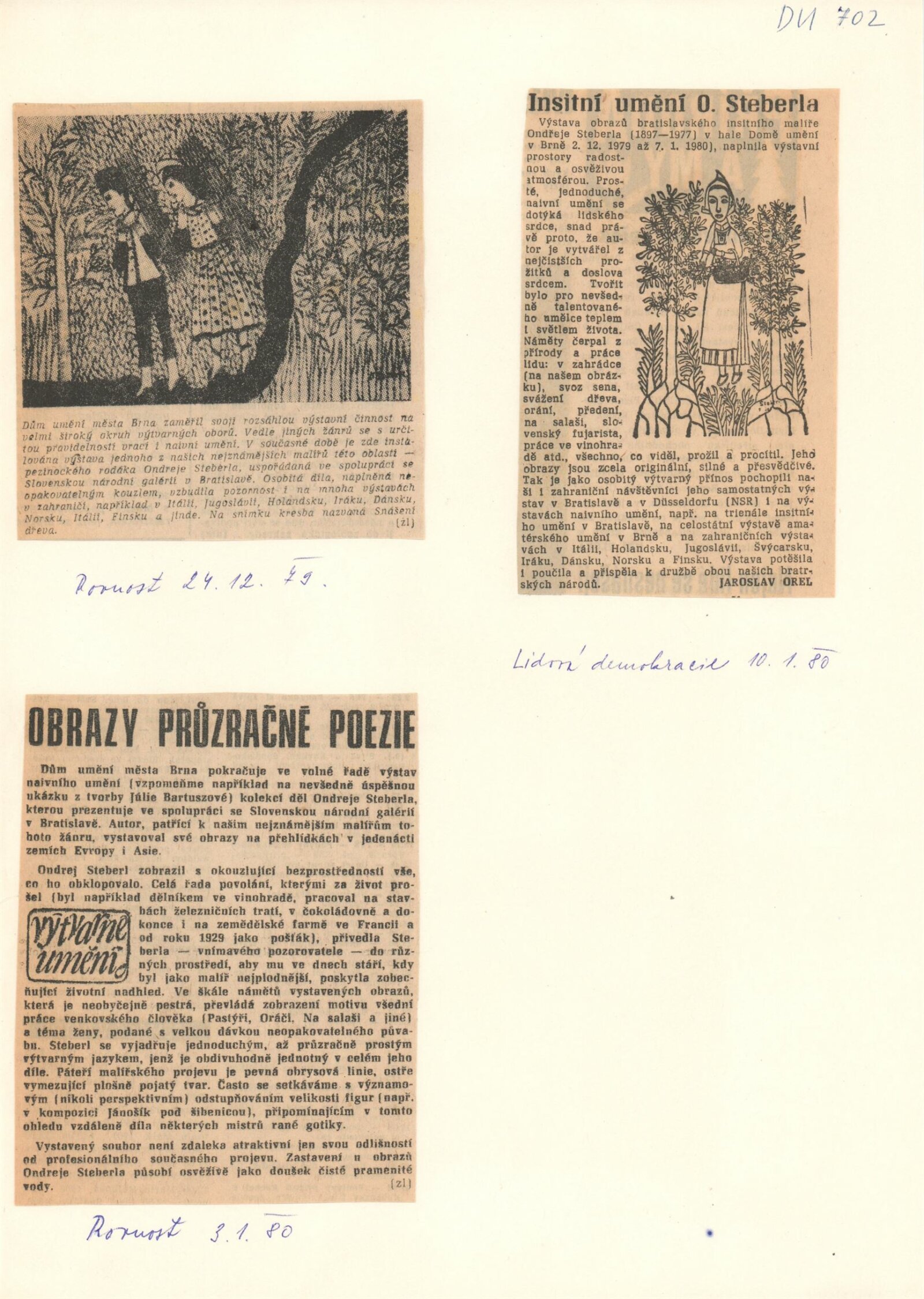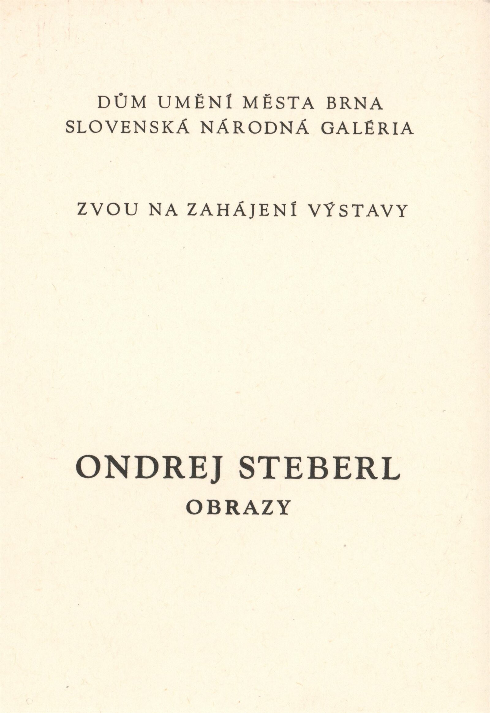 Ondrej Steberl. Obrazy: hala Domu umění 2. 12. 1979 – 7. 1. 1980 / Text Štefan Tkáč. - Brno: DUmB, - 9 s., obr. Seznam výstav. DU 702; MG; MMB