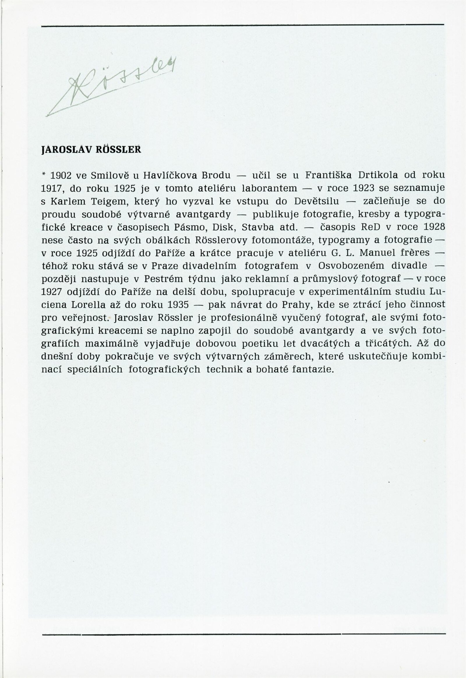 pozvánka, leták, katalog, smlouva o výpůjčce, hospodářská smlouva, provozní korespondence (Anna Fárová), zpráva o výstavě, žádost o zapůjčení a povolení výstavy, recenze v tisku, katalog Fotografická avantgarda (Alšova jihočeská galerie 1963)