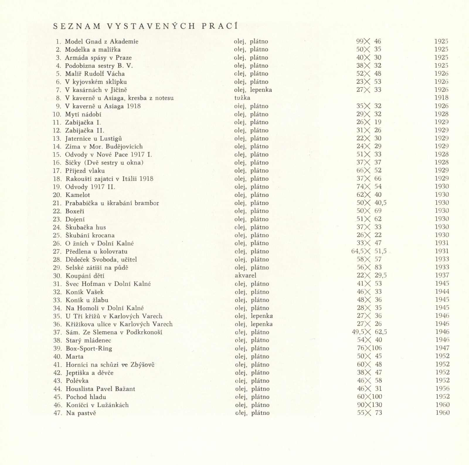 pozvánka, katalog, fotografie děl, fotografie výstavy a z vernisáže, seznam vystavených děl, úvodní slovo, strojopis textu pro katalog + překlad (AJ, NJ, RJ), osobní korespondence (Jiří Krejčí / Nina Dvořáková / Albert Kutal), provozní korespondence, žádost o uspořádání výstavy, vyjádření SČVU, koncepce výstavy, prezenční listina z tiskové konference (19. 3. 1976), smlouva k výstavě, žádost o povolení výstavy, recenze v tisku