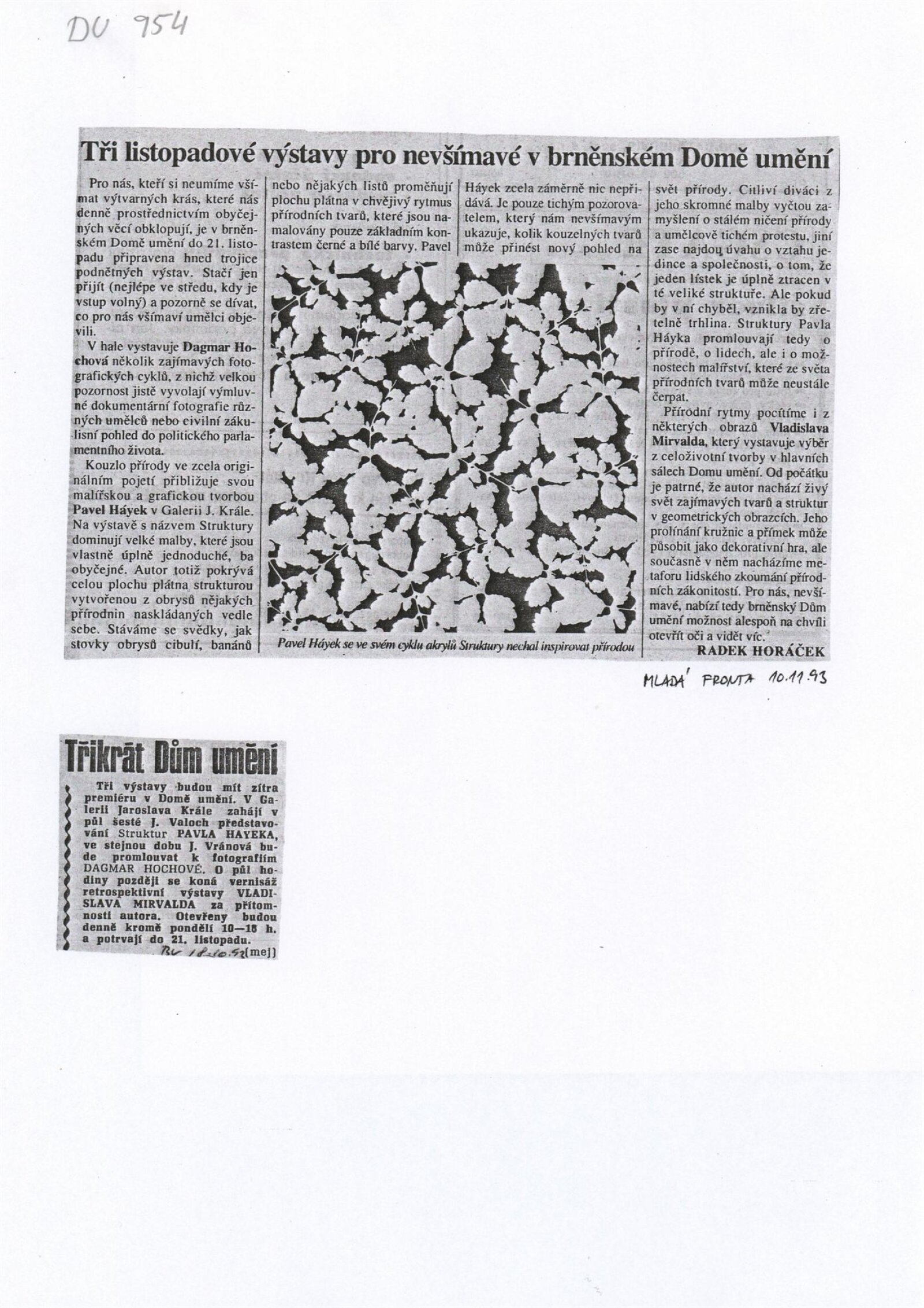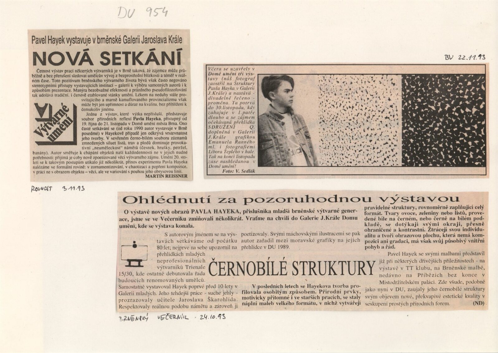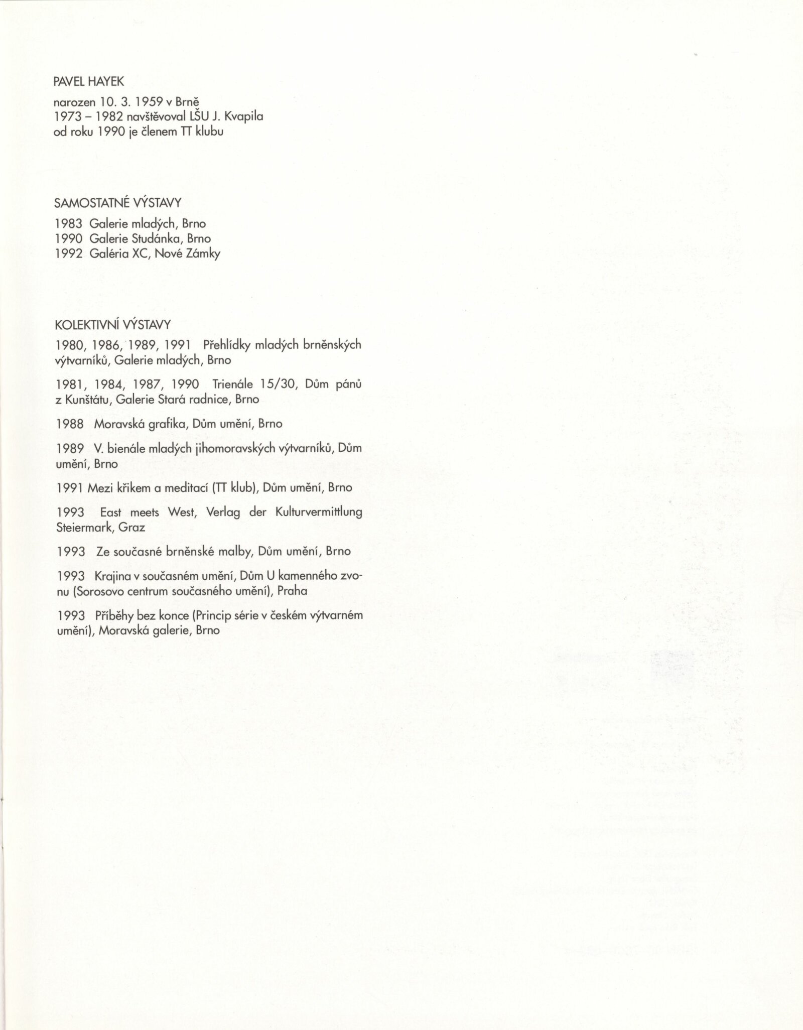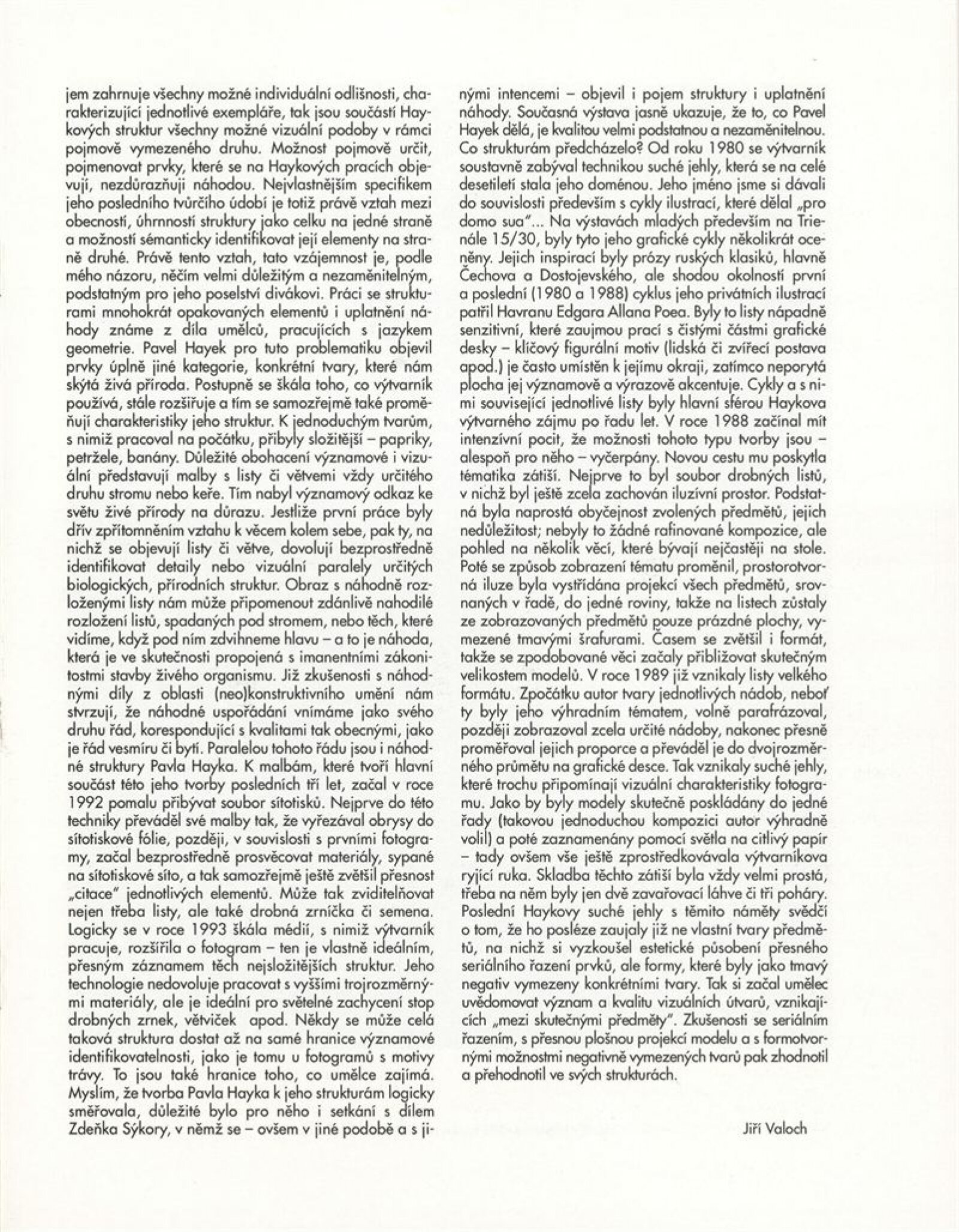 Pavel Hayek. Struktury: Galerie Jaroslava Krále, 180. výstava 19. 10. – 21. 11. 1993 / Text Jiří Valoch. - Brno: UVU, - [14] s., obr. Životní data, výstavy DU 954
