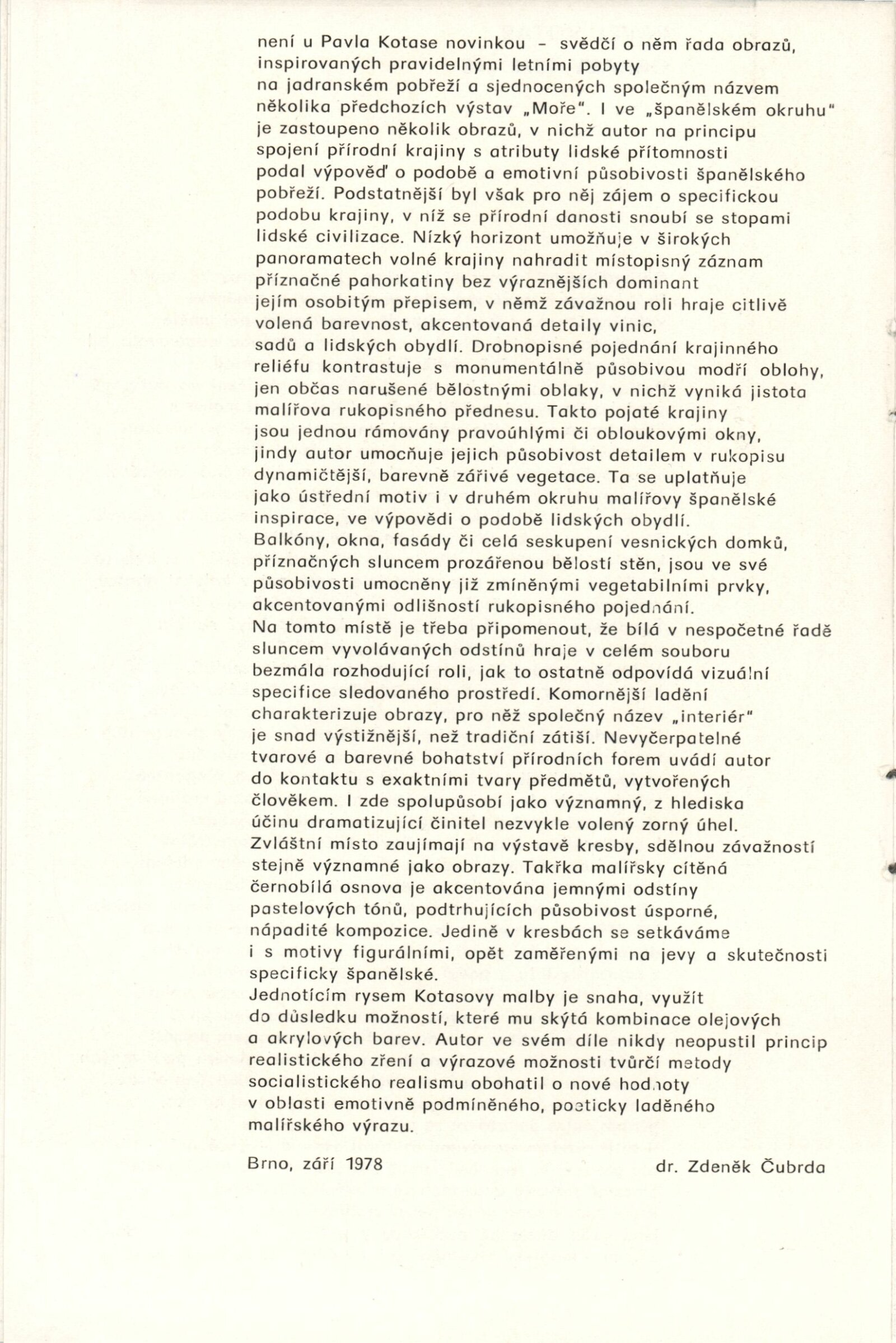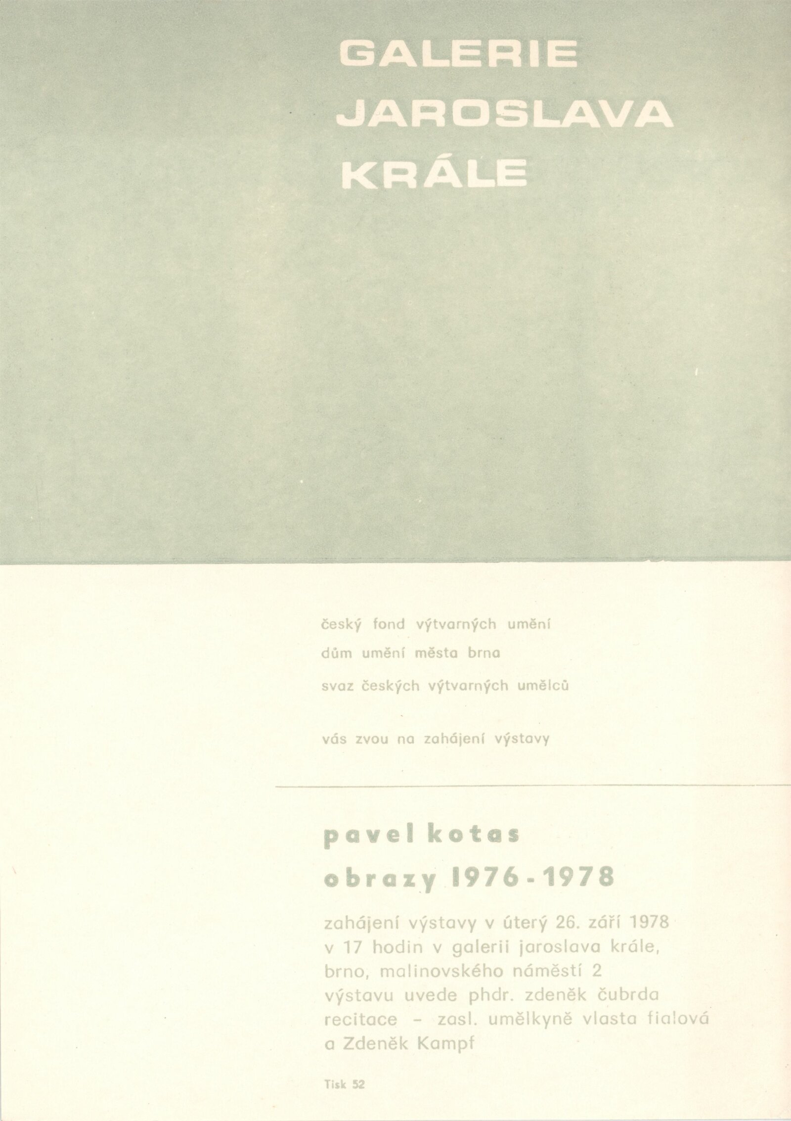 Pavel Kotas. Obrazy 1976–78: 89. výstava v Galerii Jaroslava Krále 26. 9. – 22. 10. 1978 / Text Zdeněk Čubrda. - Brno: ČFVU, - 10 s., obr. + Seznam vystavených prací 2 s. Portrét, životní data, výstavy, ceny. DU 680