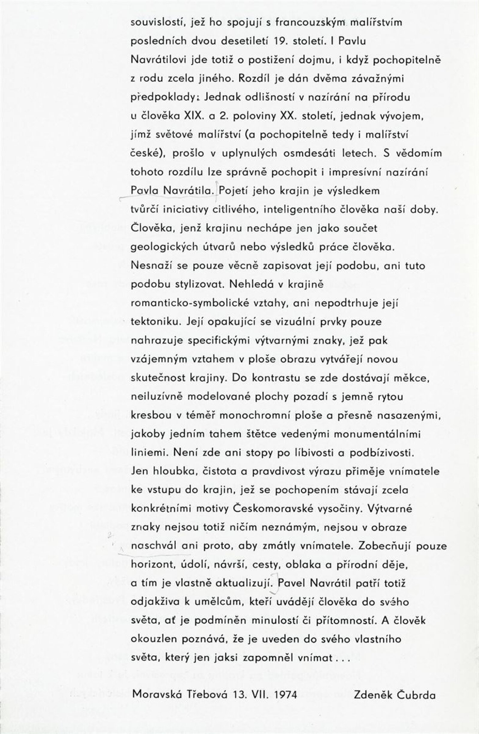 Zdeněk Macháček: Křížovice, Pavel Navrátil: Krajiny: Dům umění, 60. výstava v Galerii Jaroslava Krále, 3. 9. – 22. 9. 1974 / Text: Zdeněk Čubrda. – Brno: ČFVU, 1974. – 13 s., obr., portrét, životní data, výstavy, DU 611. – MZK; MMB / Pavel Navrátil. Krajiny: Dům umění, 60. výstava v Galerii Jaroslava Krále, 3. 9. – 22. 9. 1974 / Text: Zdeněk Čubrda. – Brno: ČFVU, 1974. – 14 s., obr., portrét, životní data, výstavy, DU 611. – MZK