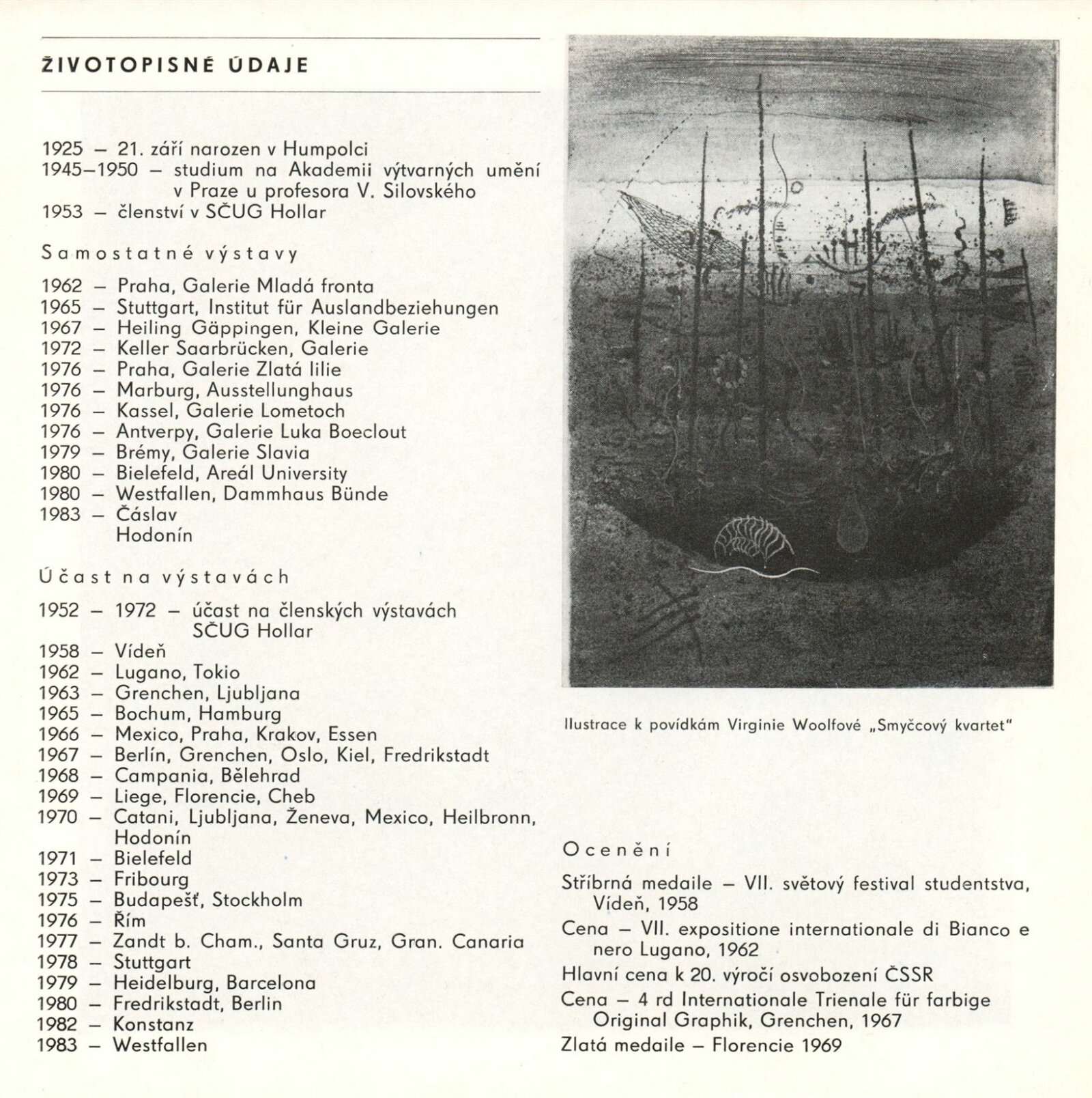 pozvánka, katalog, strojopis, fotografie ke katalogu, seznam vystavených děl, provozní korespondence, žádost o povolení výstavy, recenze v tisku, mapa adresy a poznámky na útržku papíru