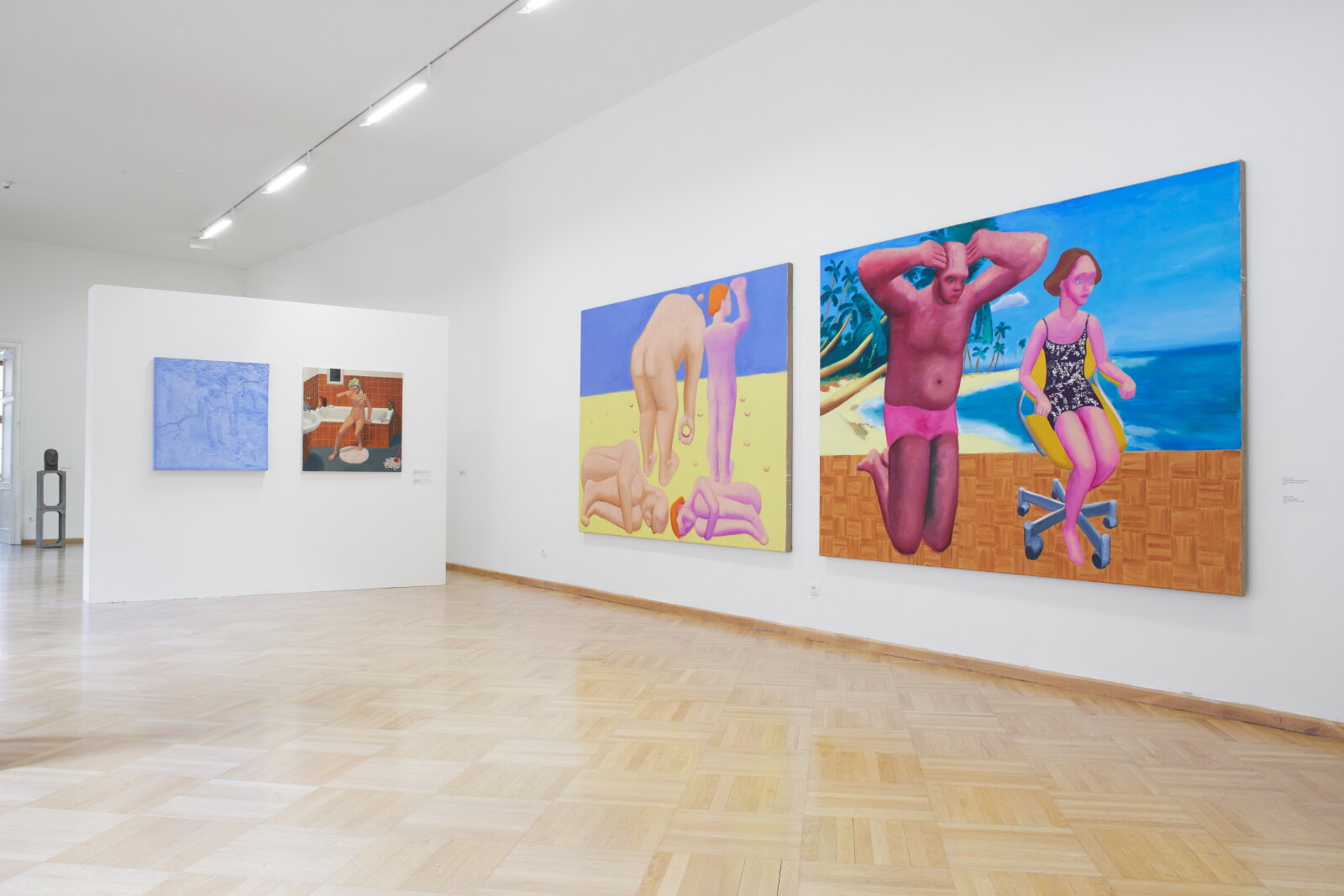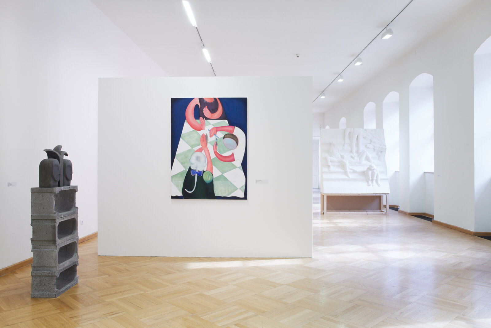 The exhibition Personal Mythologies presents the work of contemporary artists of the younger and middle generation, who combine the use of a distinctive imaginative language and work with a purely painterly or sculptural medium, whose craft and haptic qualities give spatial facticity to magical and personal phenomena. The central motif of these works is often the human figure, the human being as both subject and object, set in a fantastical story full of unexpected and irrational events and influences. Figuration and narrative refer to various historical styles, from antiquity to Romanticism, Surrealism, Magical realism and Naive art. Its practice follows postmodern strategies of appropriation and symbolic actualization of historical experience with a pervasive emotionality that is far removed from intellectualized and conceptual artistic expression.