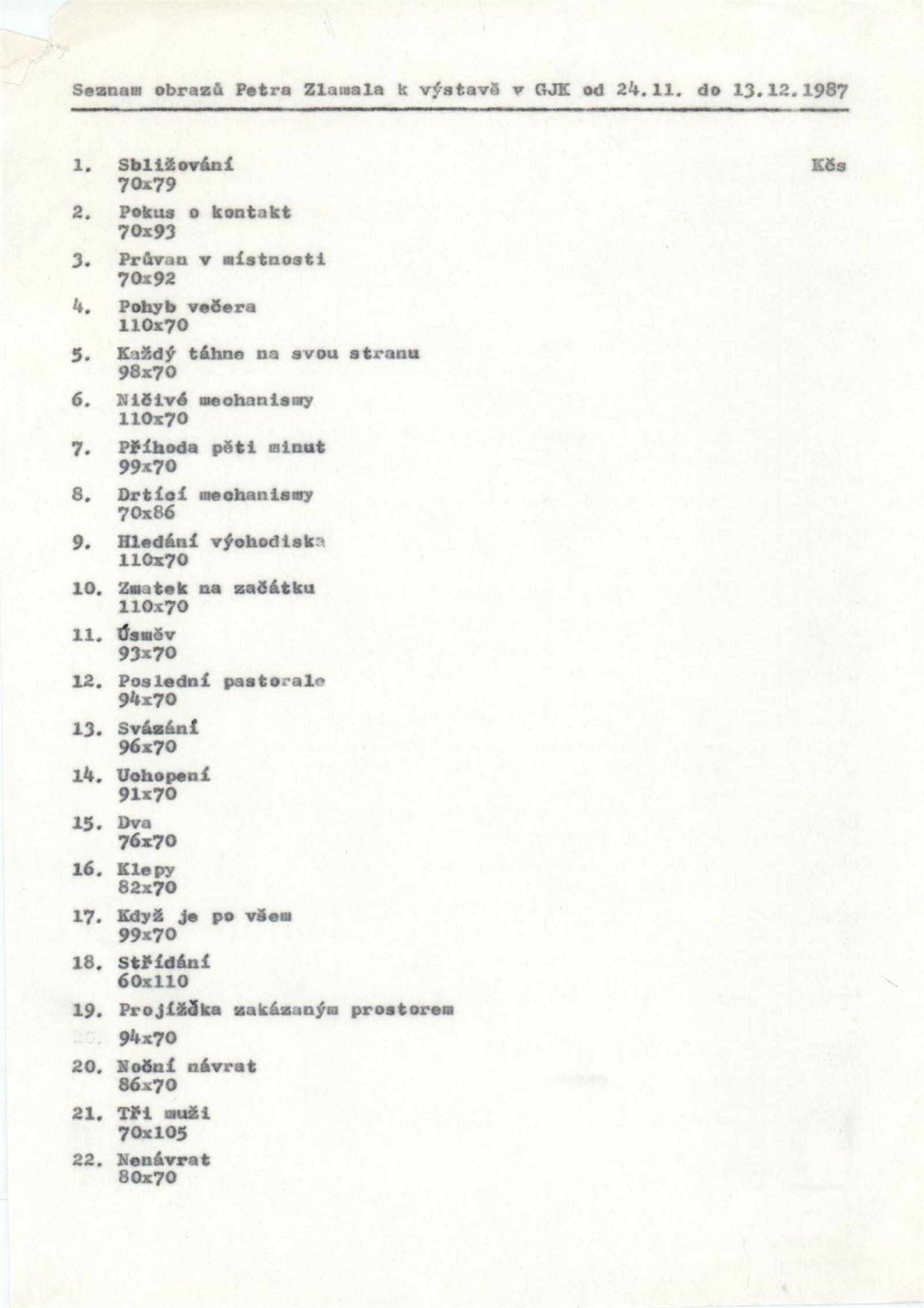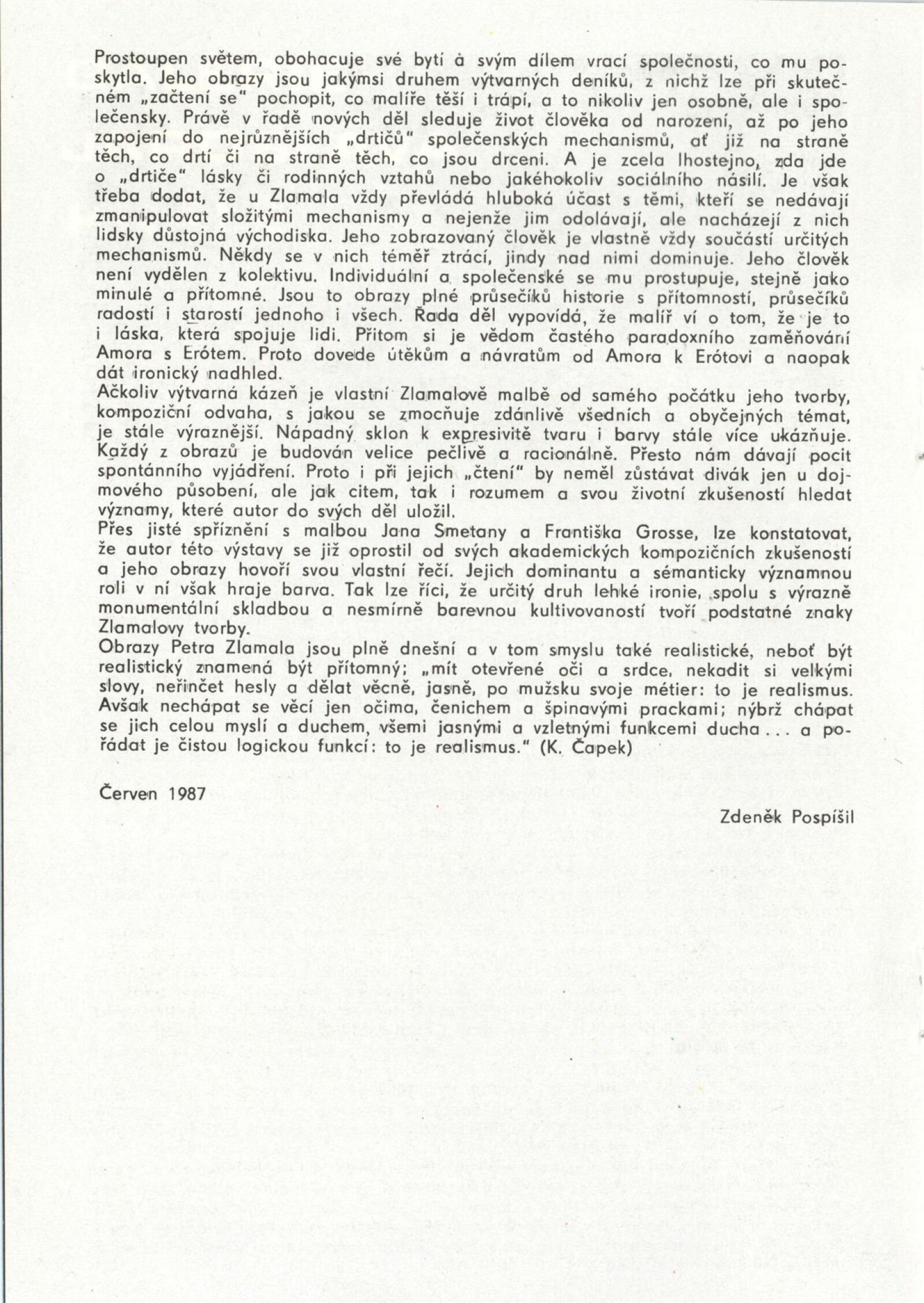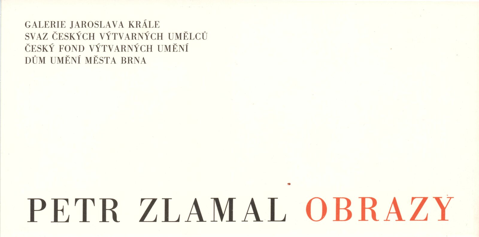 Petr Zlamal. Obrazy: Dům umění, 142. výstava v Galerii Jaroslava Krále, 24. 11. – 13. 12. 1987 / Text: Zdeněk Pospíšil. – Brno: SČVU, 1987. – [12] s., obr., portrét, životní data, realizace, DU 844