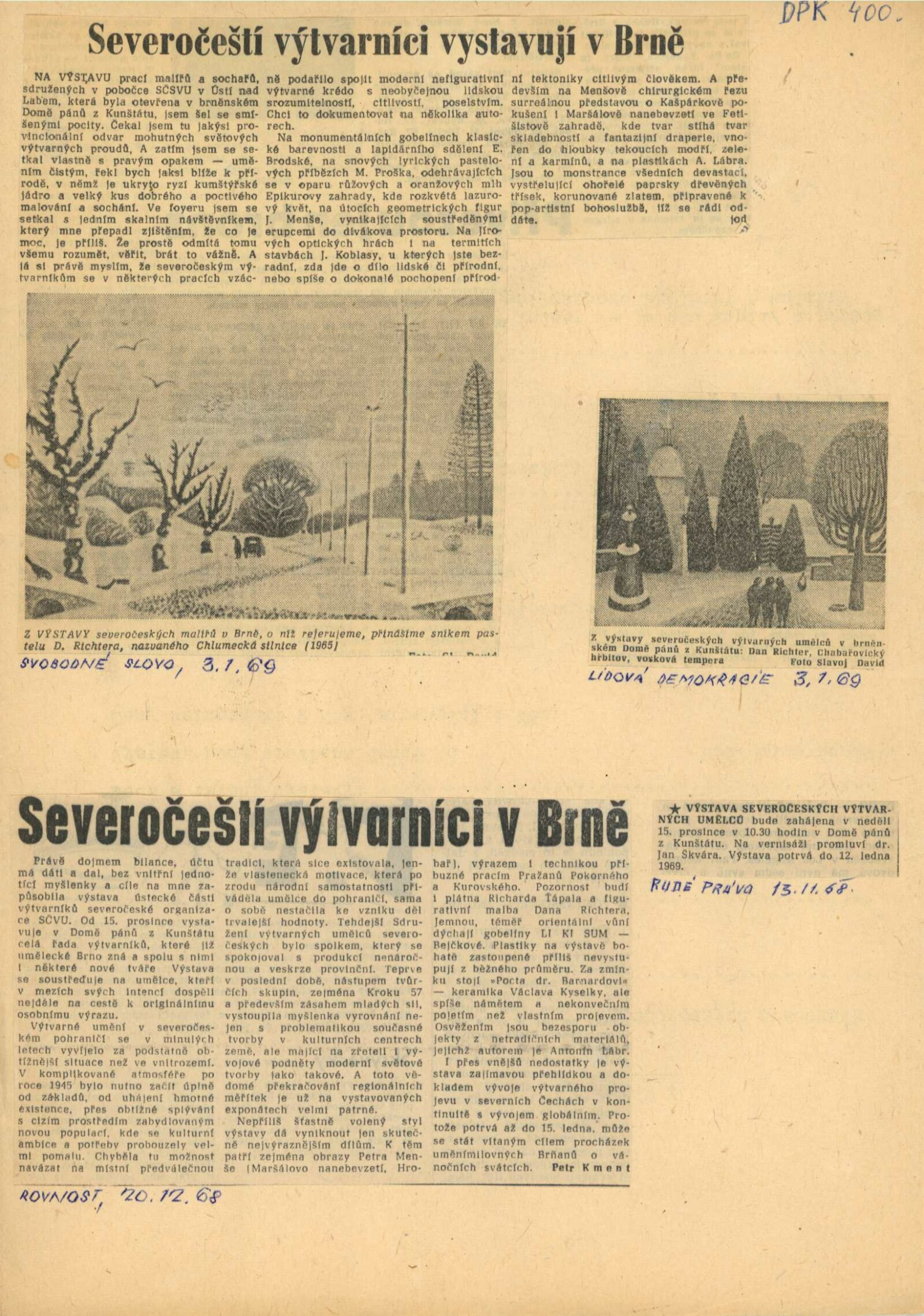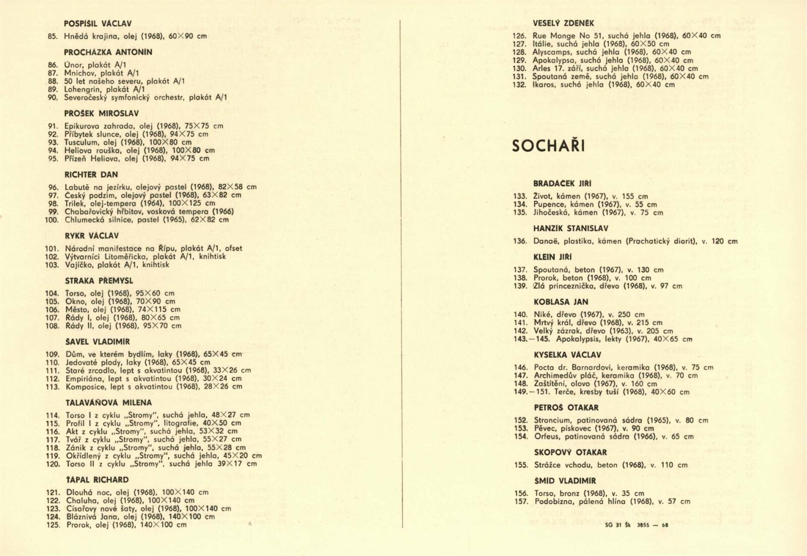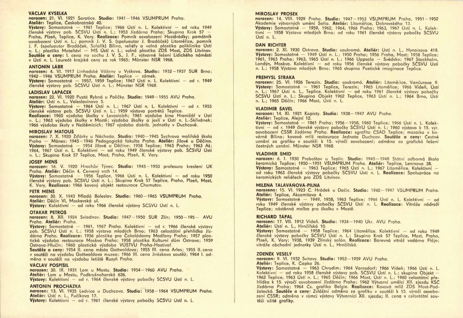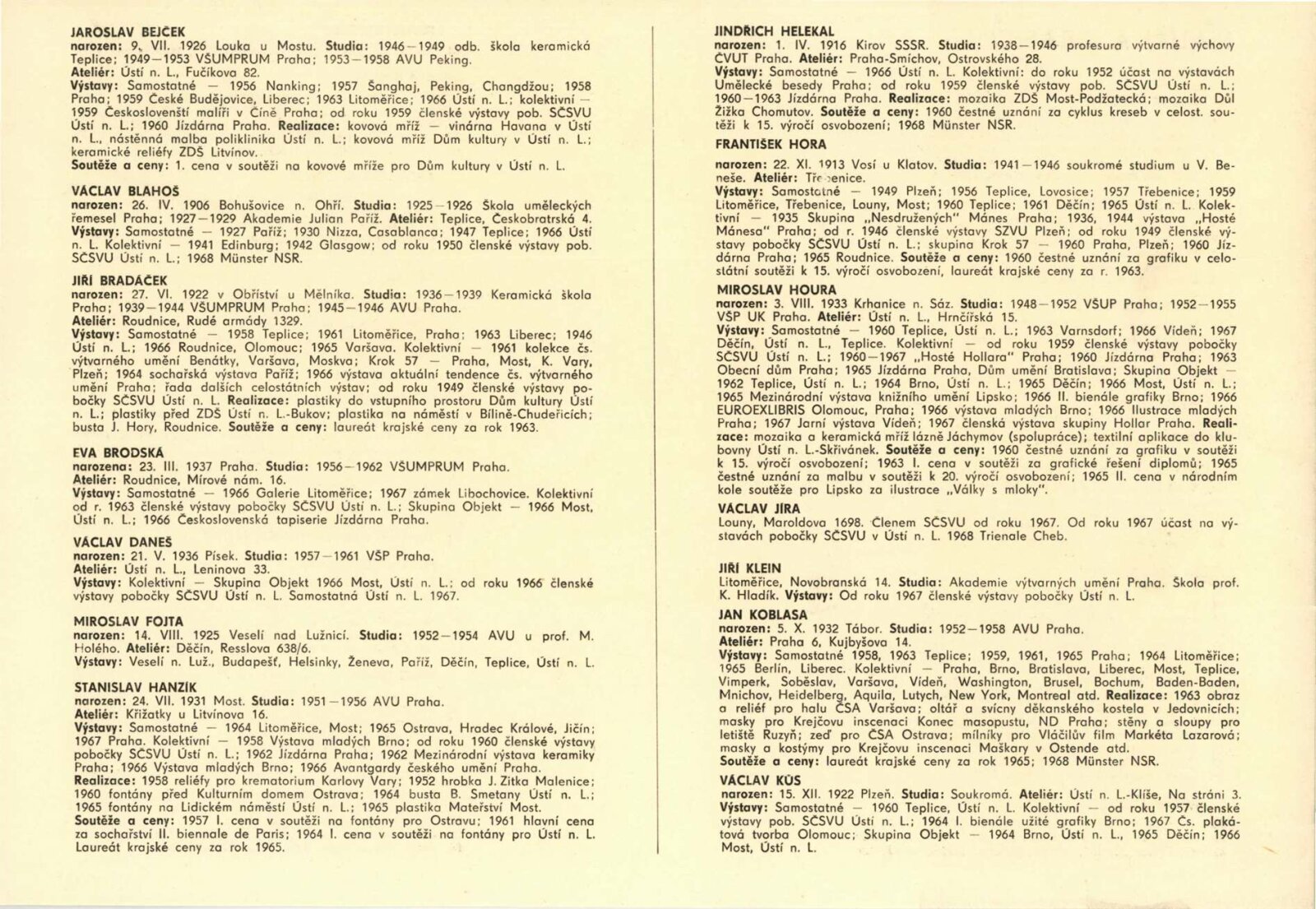 Pobočka Ústí nad Labem Svazu československých výtvarných umělců 1968: Dům umění města Brna / Dům pánů z Kunštátu, 1. patro, 15. 12. 1968 – 15. 1. 1969 / Text: Jan Škvára. – Ústí nad Labem: SČSVU, 1968. – 20 s., obr., životopisy vystavujících, DPK 400. – MG