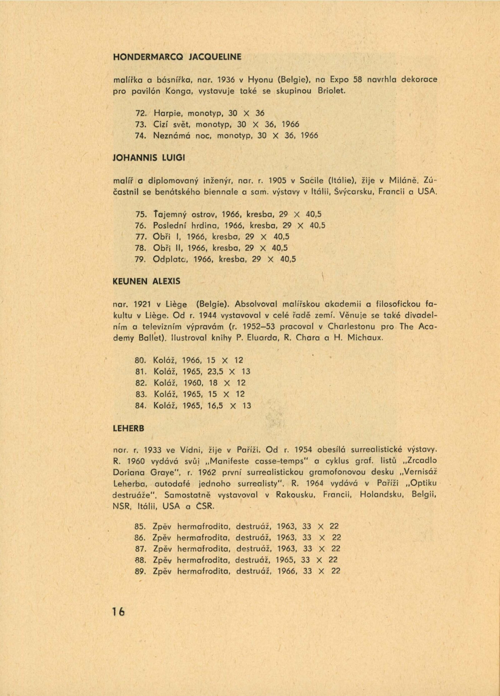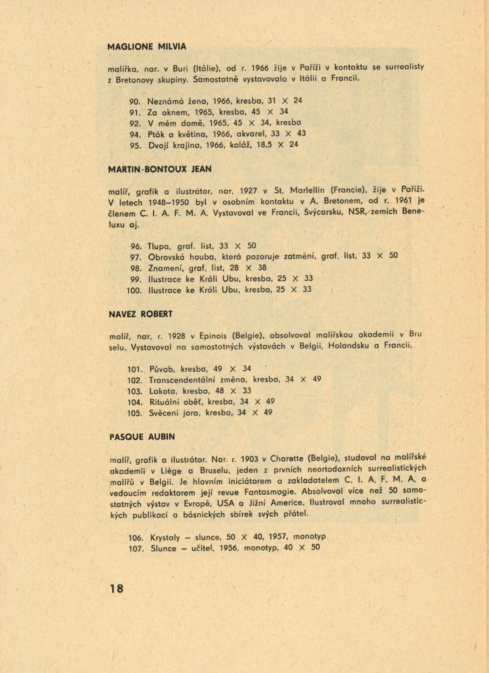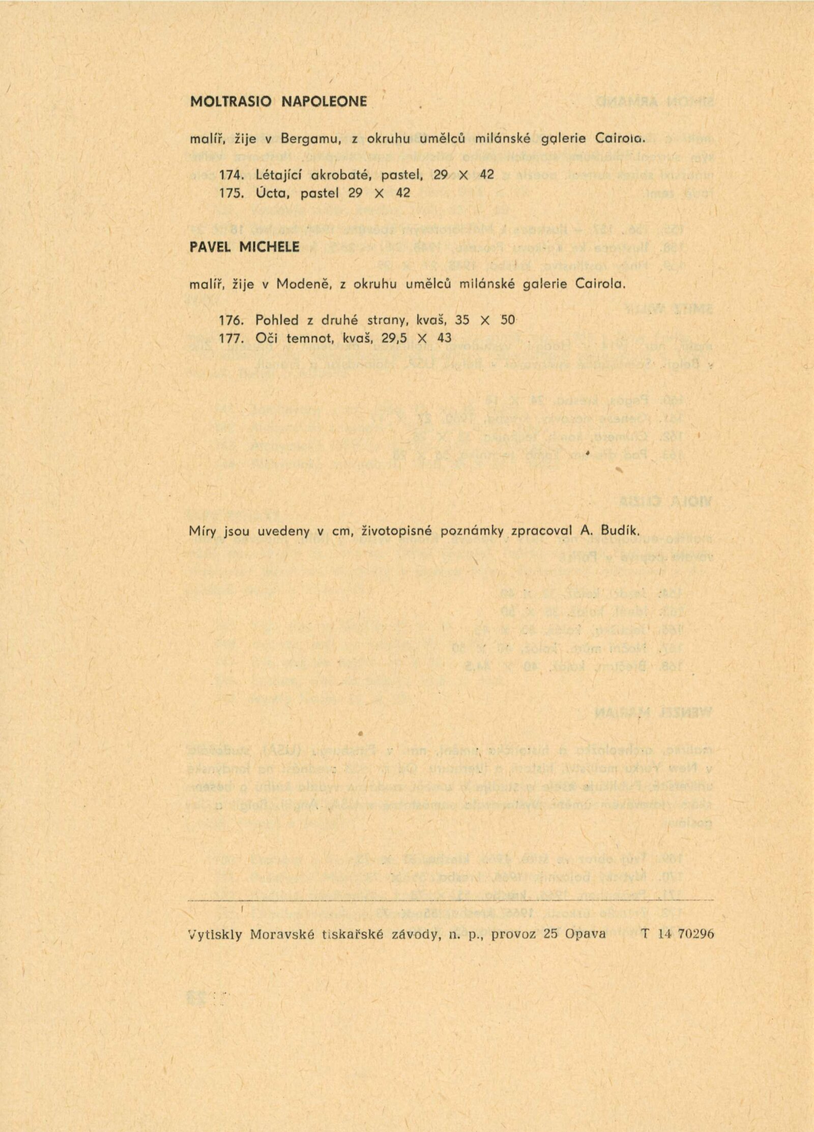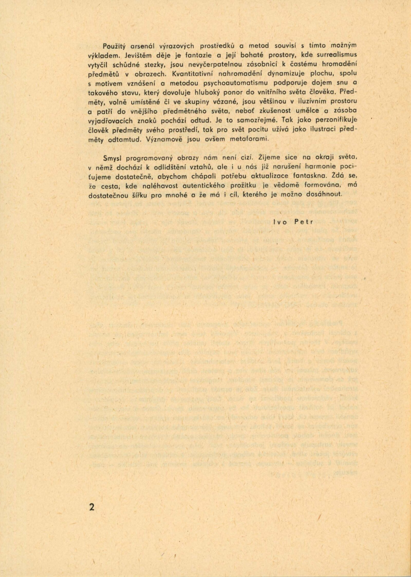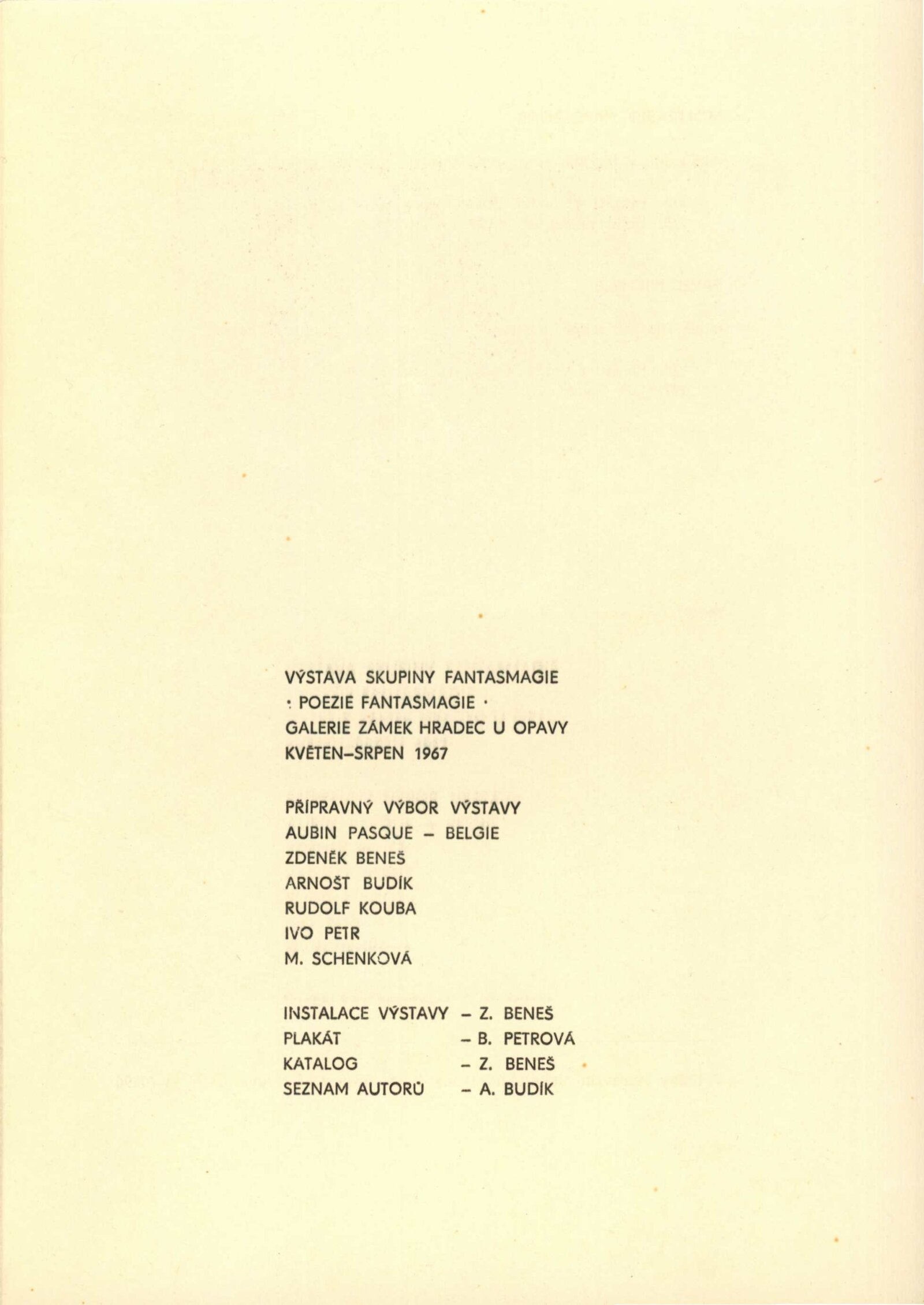 Poesie fantasmagie: Domu umění, hala, 10. 3. – 4. 5 1968/ Převzatý katalog s obálkou pro brněnskou výstavu. Poesie fantasmagie. Výstava skupiny Fantasmagie: Galerie zámek Hradec u Opav, květen–srpen 1967/ Texty: Ivo Petr, Arnošt Budík, básně Arnošt Budík, Jiří Havlíček, Václav Pajurek. – Hradec u Opavy: Galerie zámek, 1967. – 23 s., obr., DU 499. – MG