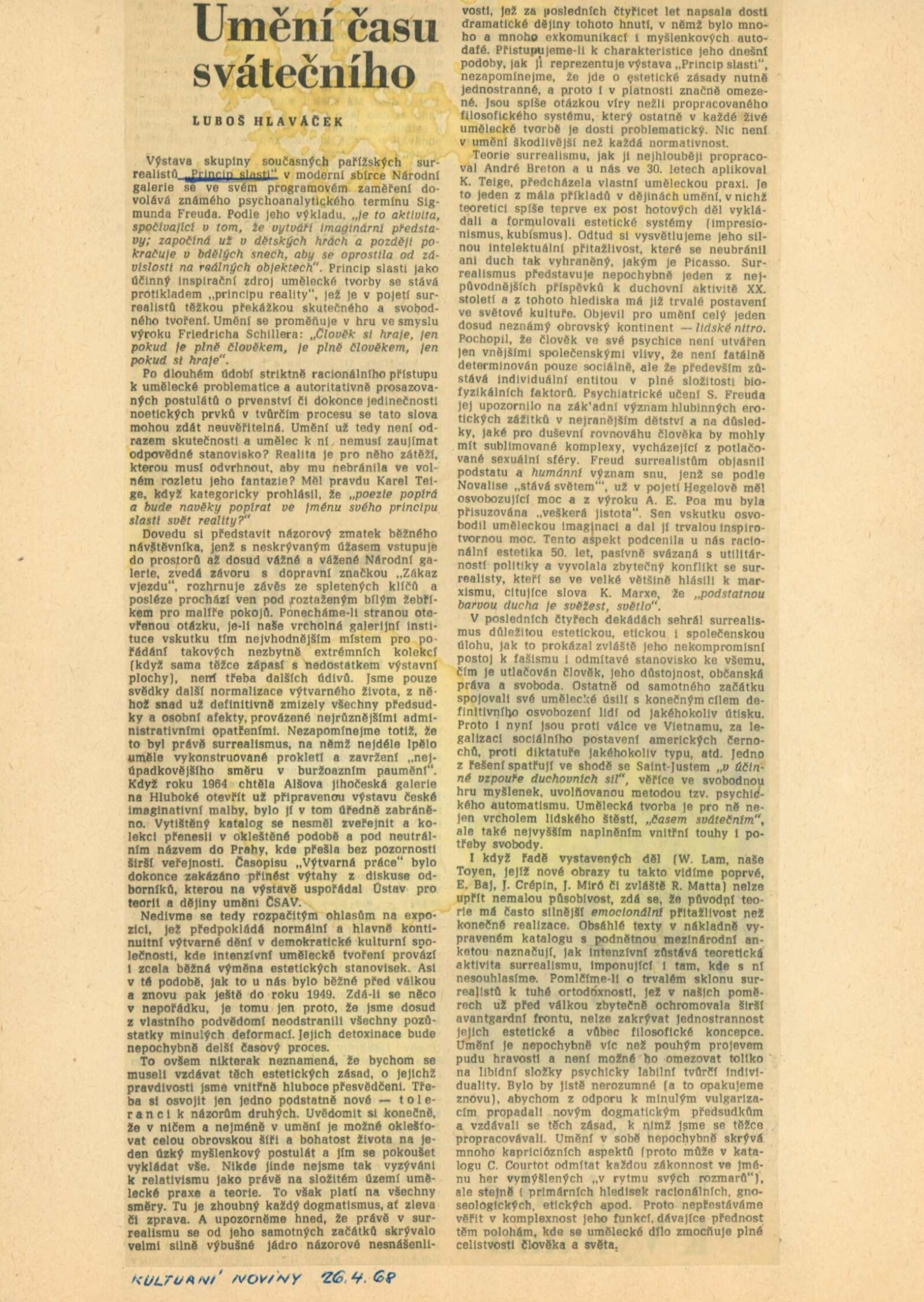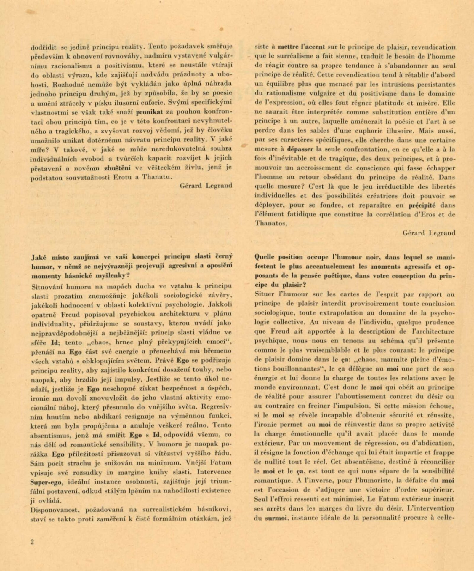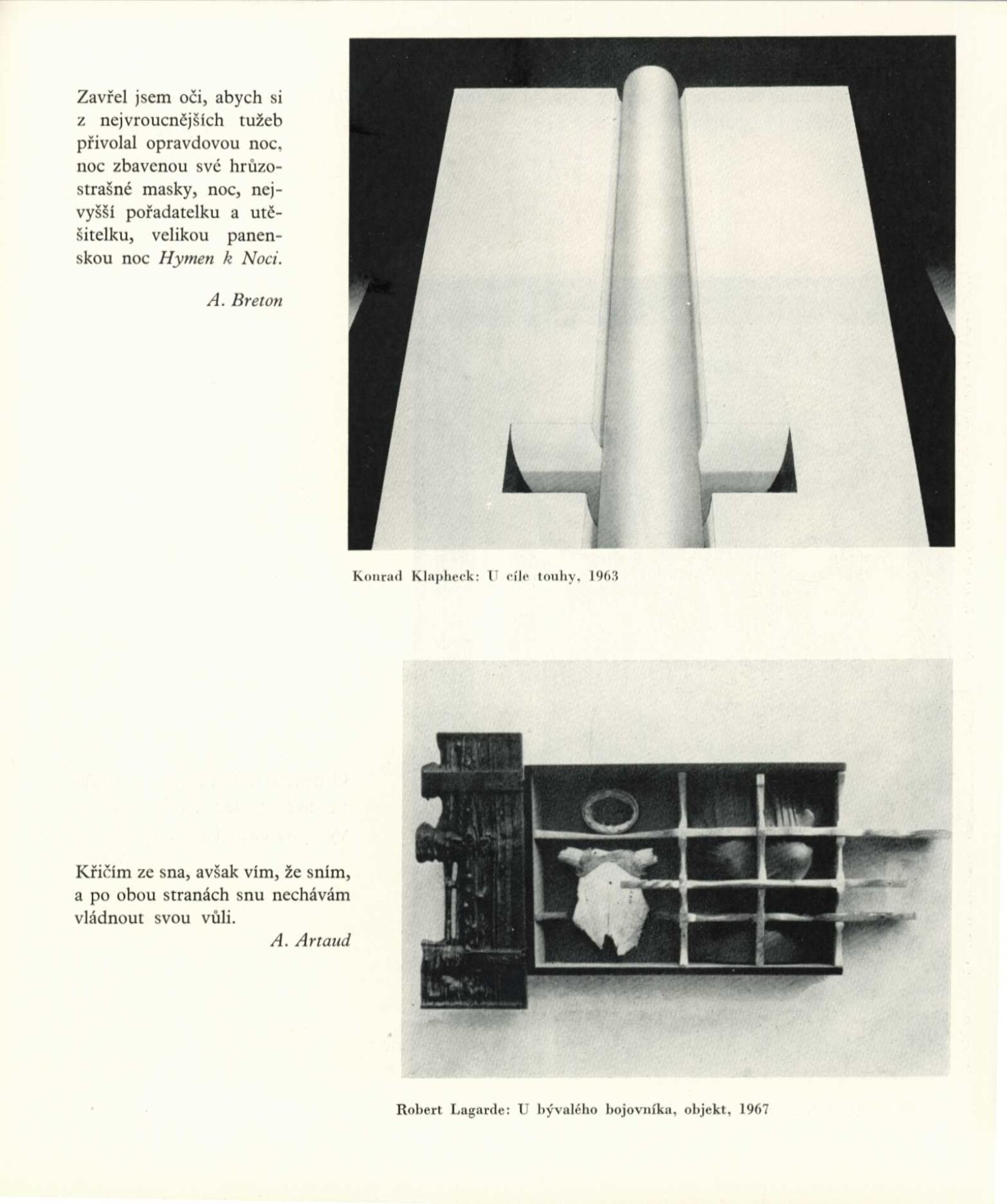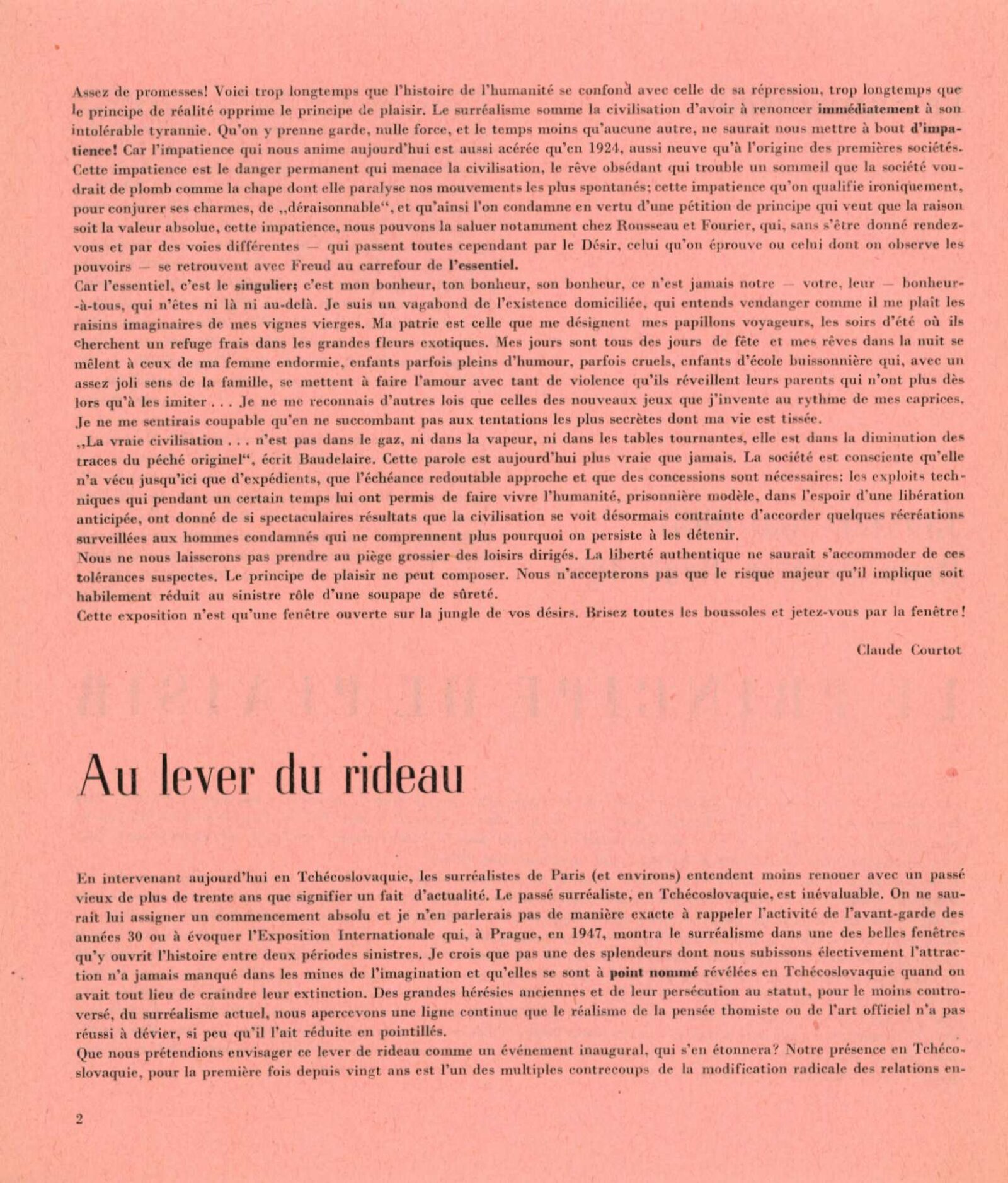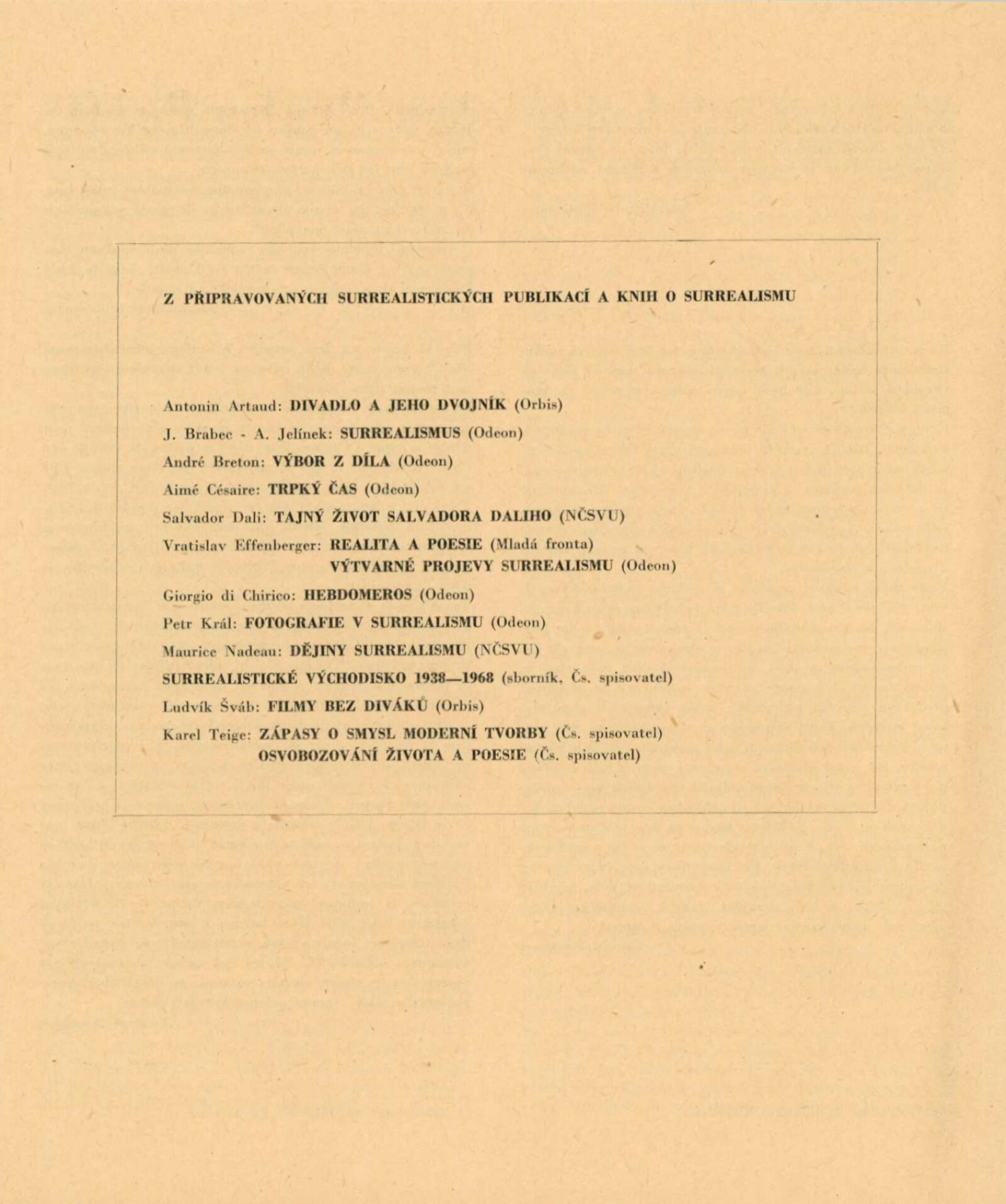 Princip slasti. Výstava pařížské surrealistické skupiny: Dům umění města Brna / Dům pánů z Kunštátu, 18. 2. – 17. 3. 1968 / Společný katalog. Princip slasti. Surrealismus: Brno, Praha, Bratislava únor–květen 1968 / Texty: Claude Courtot, Vincenc Bounoure, Philippe Audoin, José Pierre. – B. m. n. – 23 s., 26 s. obr. příl., surrealistický telefon Praha – Paříž 11 s., francouzské texty 11 s., DPK 371. – MZK; MG