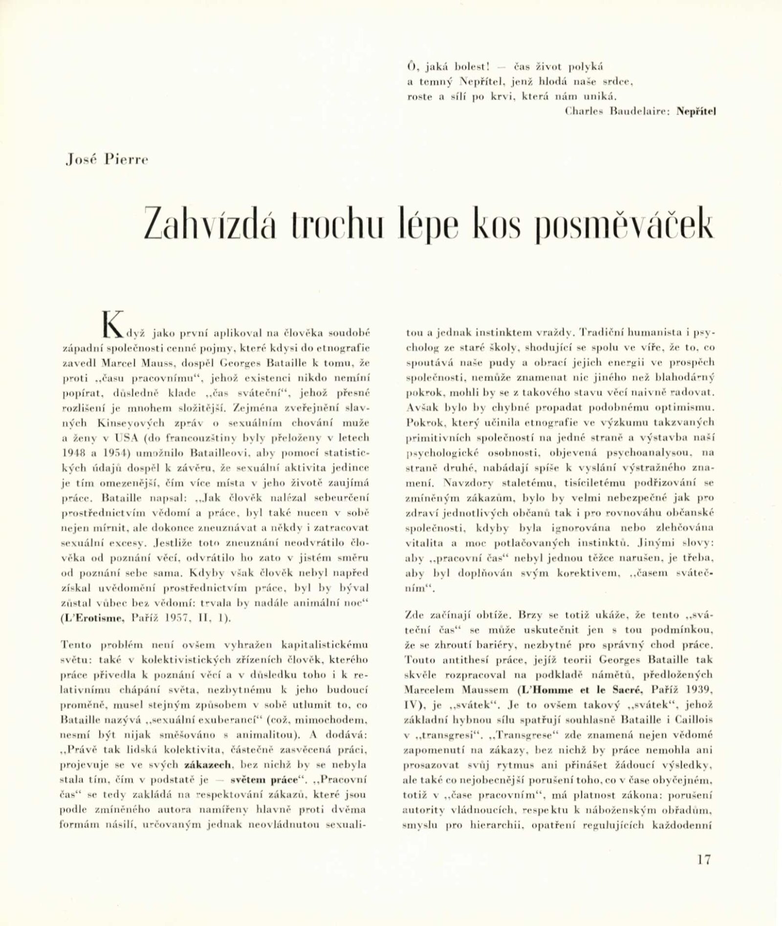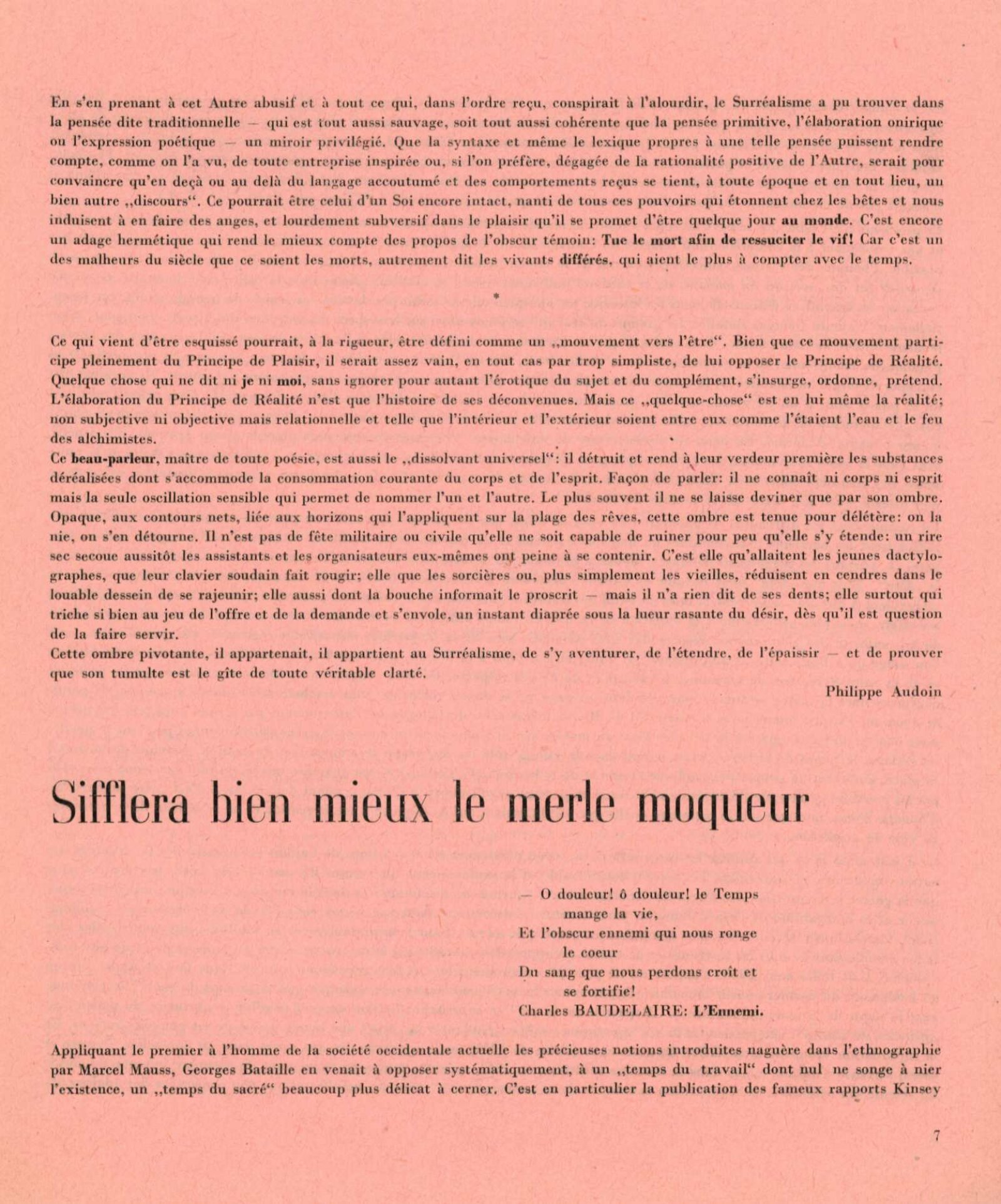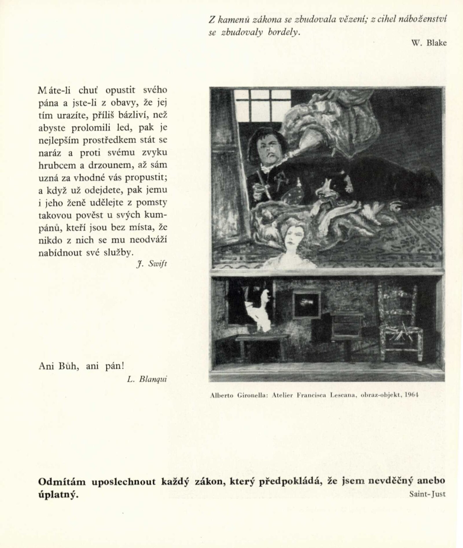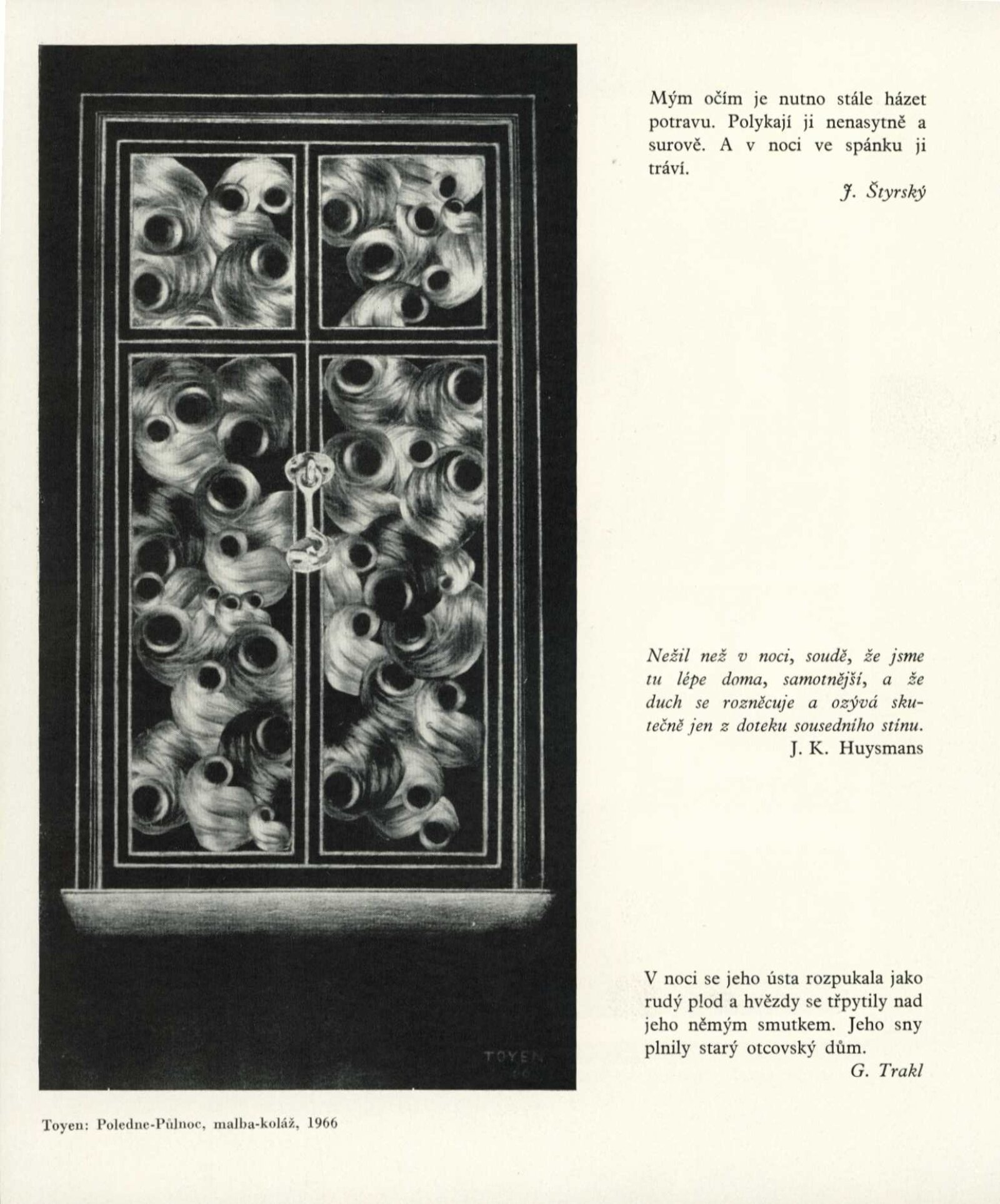 Princip slasti. Výstava pařížské surrealistické skupiny: Dům umění města Brna / Dům pánů z Kunštátu, 18. 2. – 17. 3. 1968 / Společný katalog. Princip slasti. Surrealismus: Brno, Praha, Bratislava únor–květen 1968 / Texty: Claude Courtot, Vincenc Bounoure, Philippe Audoin, José Pierre. – B. m. n. – 23 s., 26 s. obr. příl., surrealistický telefon Praha – Paříž 11 s., francouzské texty 11 s., DPK 371. – MZK; MG
